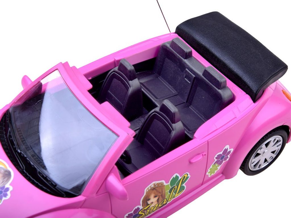 Růžový kabriolet Aldine Car s dálkovým ovládáním 27MGz umožnuje jízdu dopředu a dozadu, zatáčí doprava a doleva. Je vybaveno svítícími předními světly. Součástí balení je dálkový ovladač se 2 páčkami pro změnu směru jízdy a jízdu vpřed a vzad. Ovladač i autíčko jsou napájeny bateriemi, které nejsou součástí balení. Autíčko je vyrobeno z plastu a má certifikaci CE.