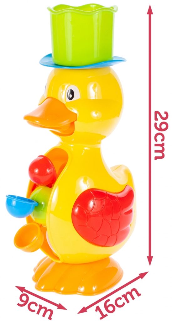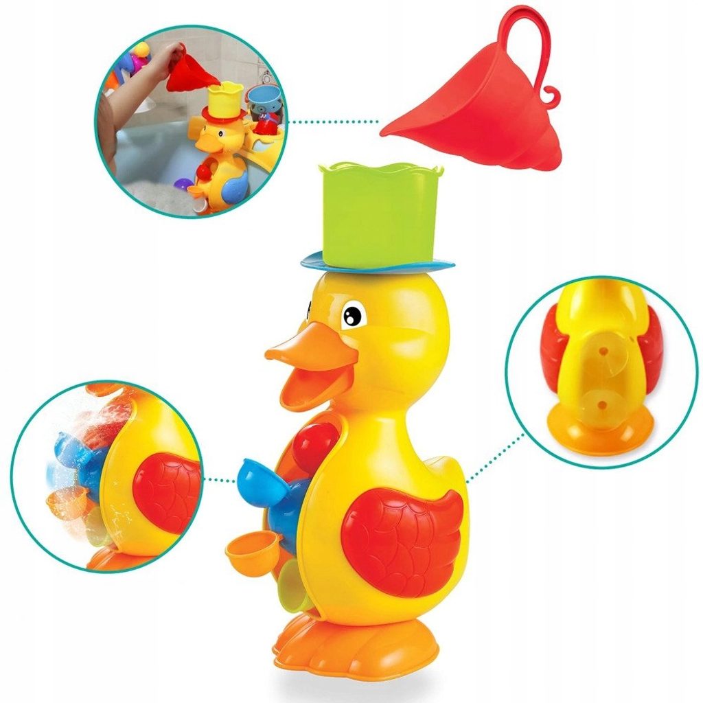 Dětská hračka Water Duck je perfektní hračkou do vany. Je vybavena přísavkou pro snadné uchycení. Po nalití vody začne voda protékat hračkou, roztočí kolovrátek uprostřed hračky za současného zvuku tekoucí vody. Součástí je také nádobka s uchem, která slouží k nalití vody. Hračka je vyrobená z plastu a určena pro děti od 18 měsíců věku.