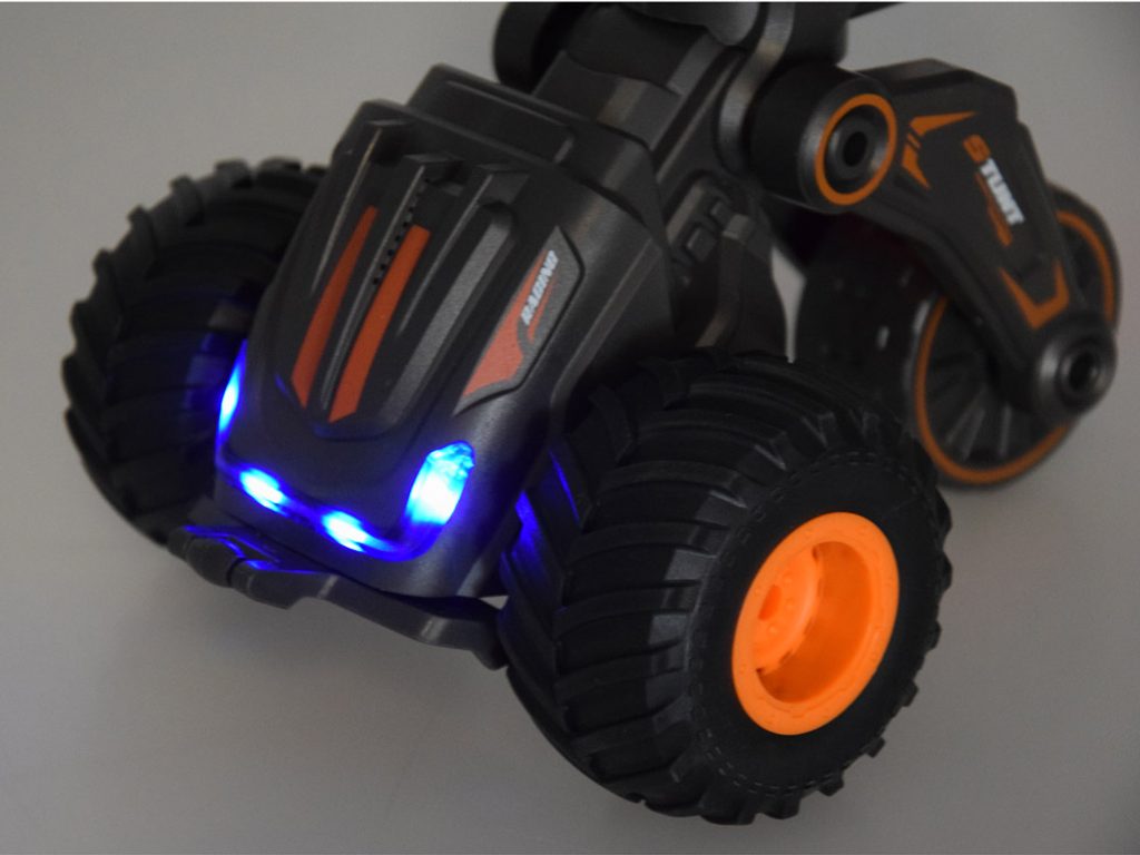 Jezdí vpřed s hudbou, osvětlením a foukáním mýdlových bublin, ale tyto funkce lze vypnout a bavit se samotnou jízdou