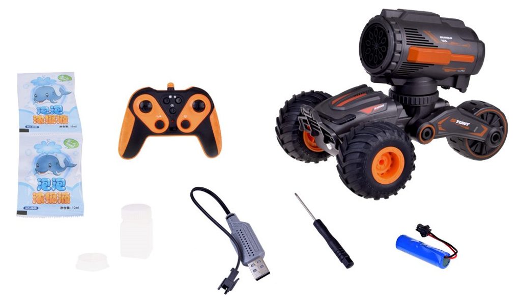 Objevte naše úžasné kaskadérské vozidlo, které nejen že dělá fantastickou akrobacii, ale také fouká mýdlové bubliny a posouvá zábavu na novou úroveň! Tato jedinečná kombinace poskytuje spoustu zábavy pro děti i dospělé. Každý okamžik s tímto autem je plný magie a zábavné atmosféry. Jste připraveni na bláznivé dobrodružství? Zúčastněte se vzrušujícího světa akce a bublinového šílenství!:
