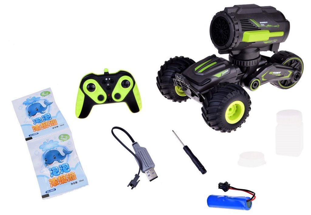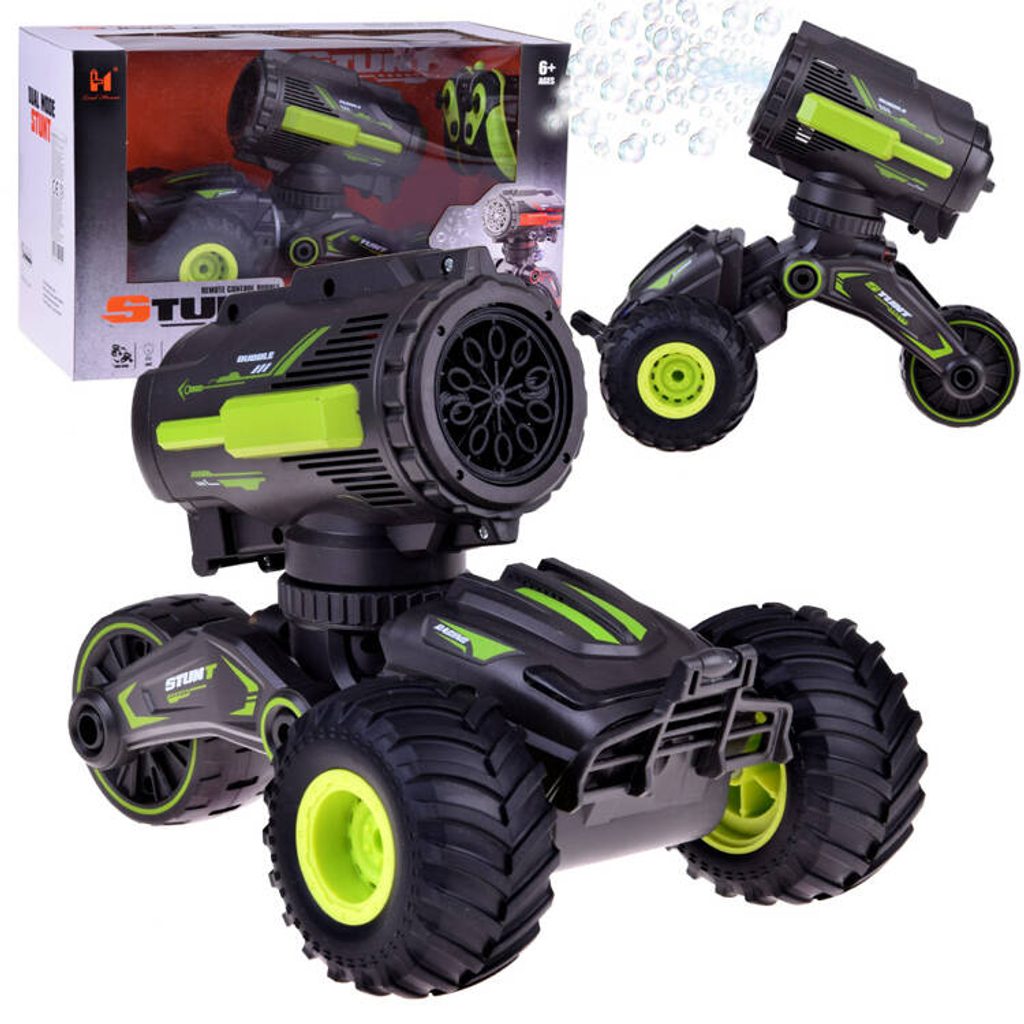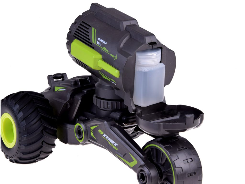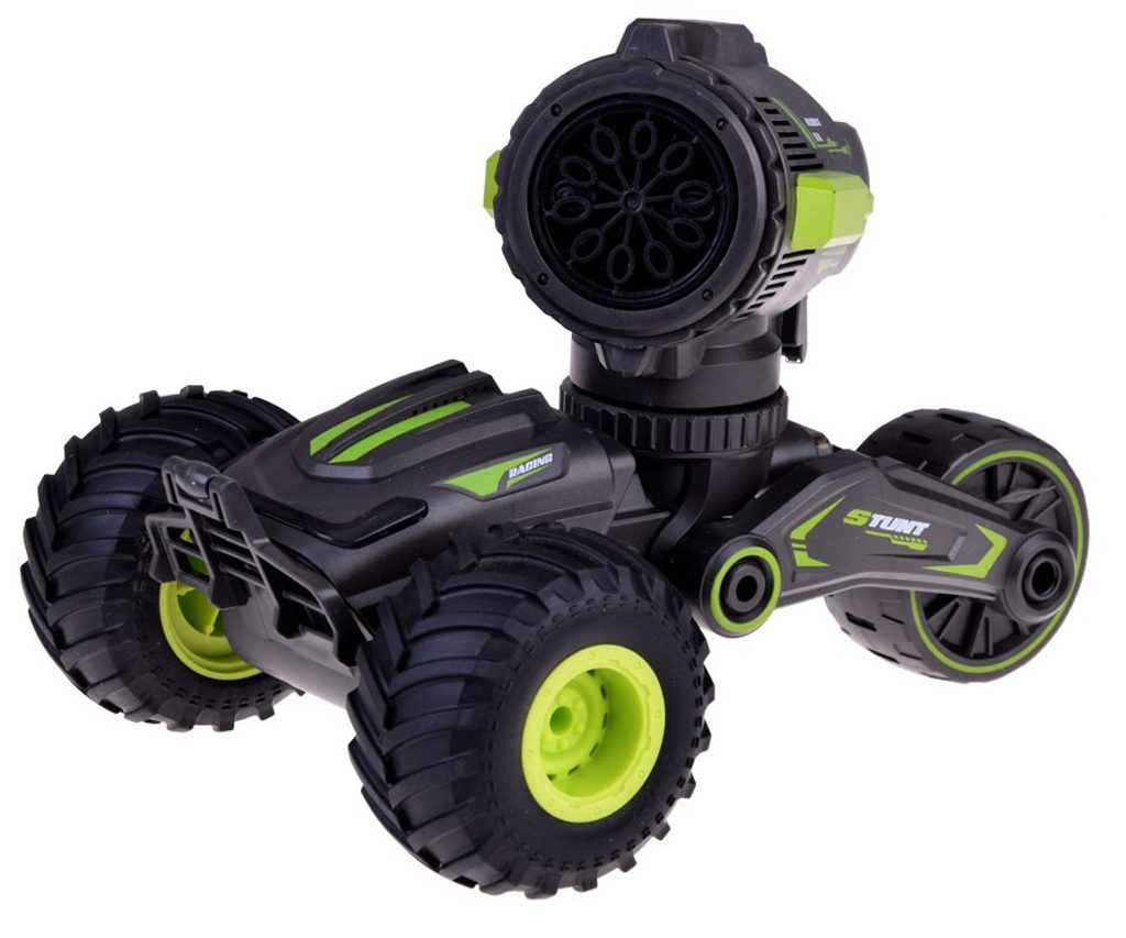 Kaskadérské autíčko na dálkové ovládání s bublifukem Stunt Car - černozelené