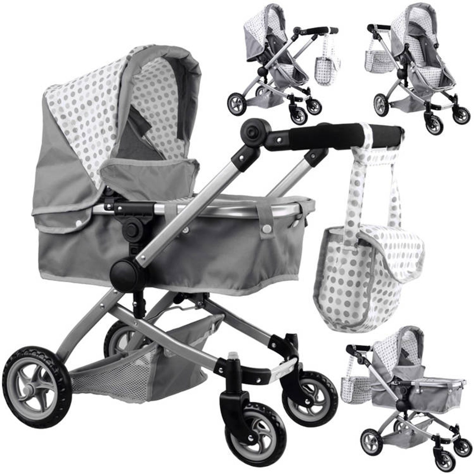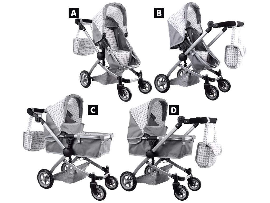 Kočárek pro panenky 4v1 kombinovaný Alice 4543 šedý