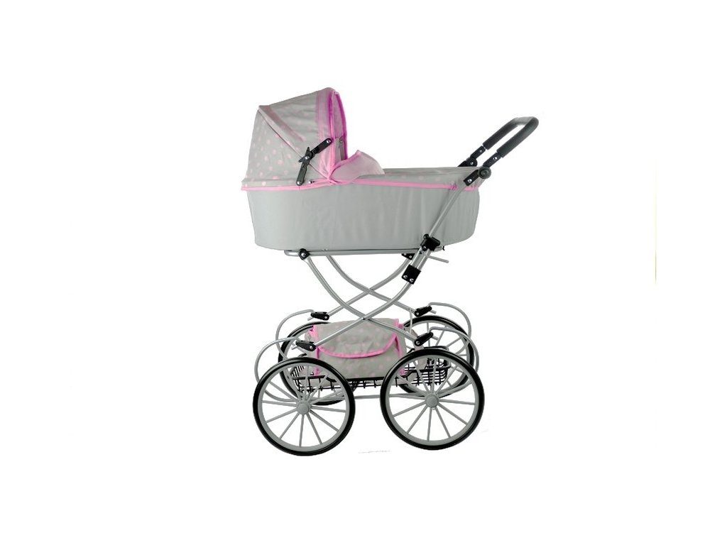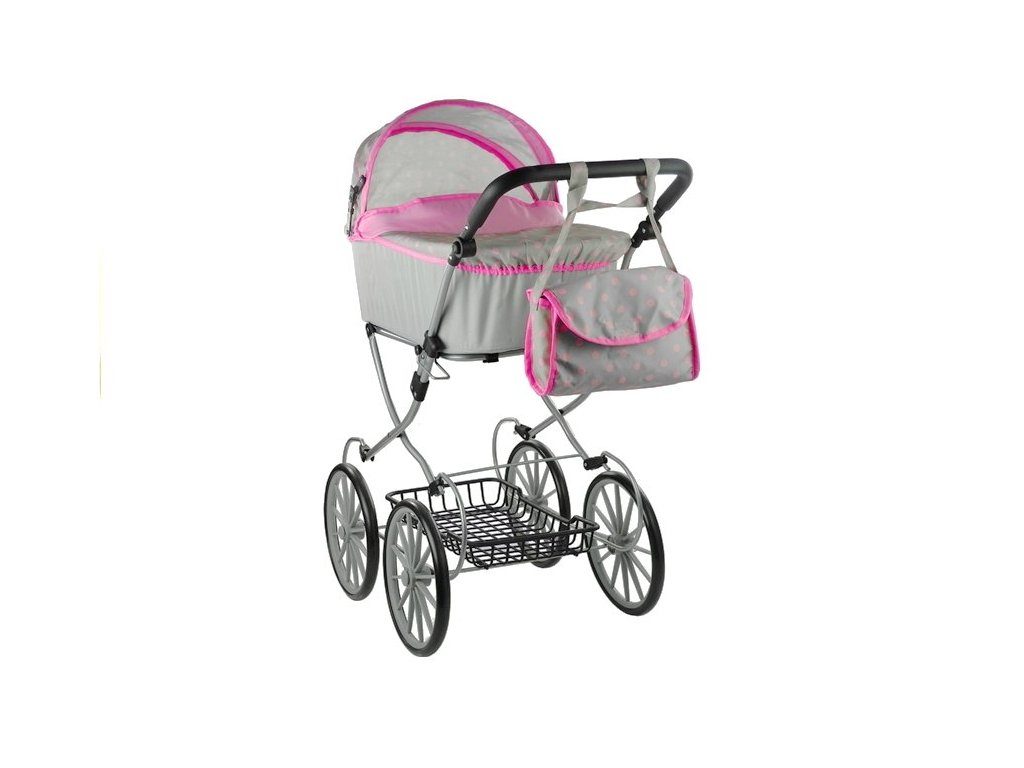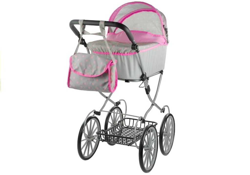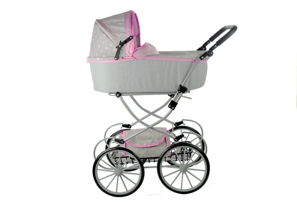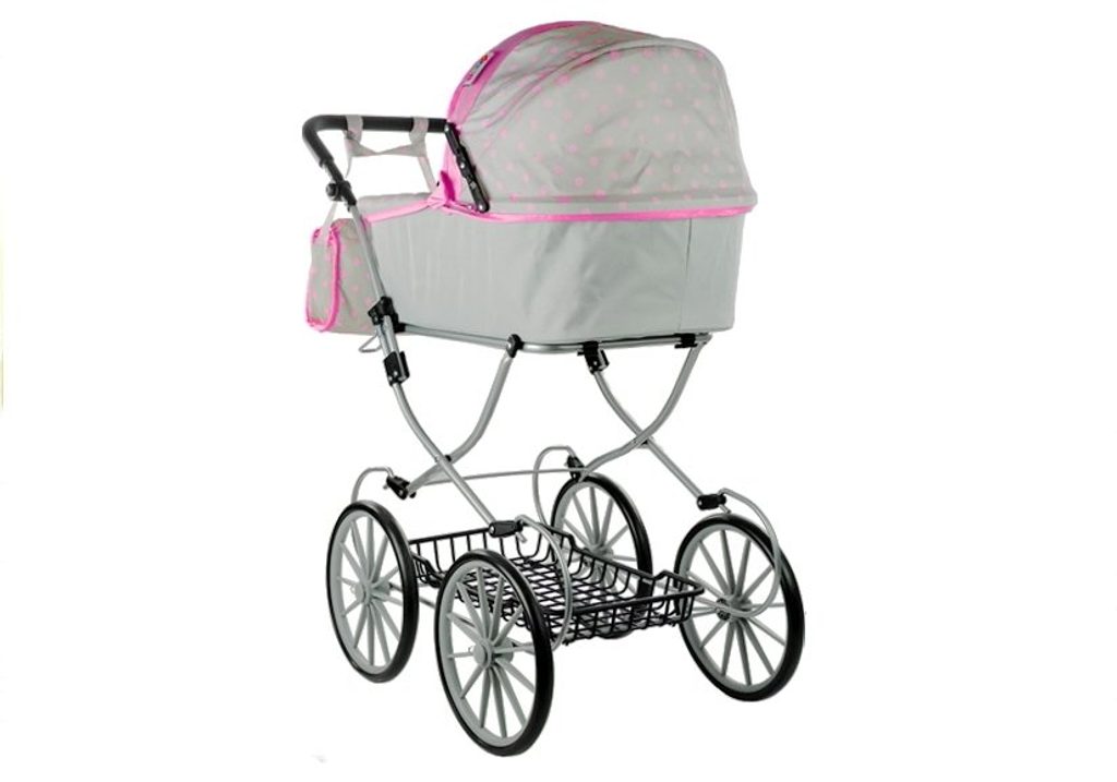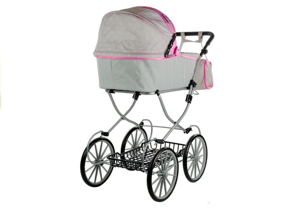 Kočárek Alice v retro stylu pro holčičky od 5 do 9 let. Kočárek má velmi lehkou stabilní konstrukci vyrobenou z hliníkových trubek spojených plastovými díly. Rukojeť kočárku má nastavitelnou výšku takže ji jednoduše pomocí dvou bočních tlačítek můžete přizpůsobit věku dítěte. Uvnitř kočárku je korbička pro panenky s výškou až 59 cm. Před automatickým složením chrání dítě blokace. Ve spodní části je umístěn praktický košík a na drobnosti slouží praktická závěsná taška na suchý zip.