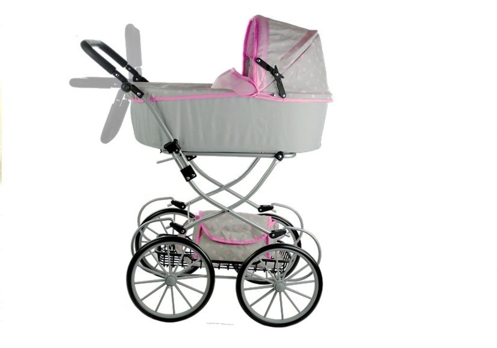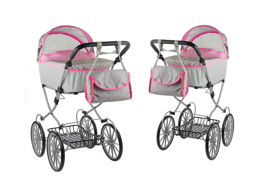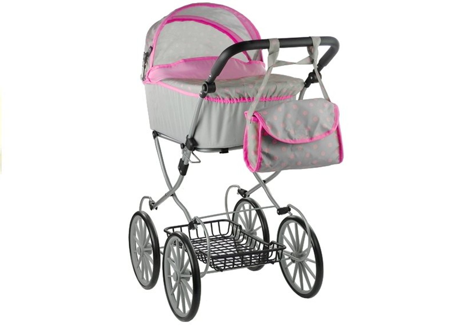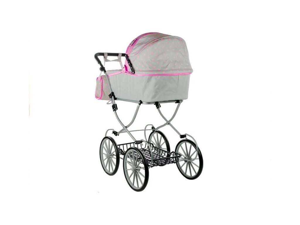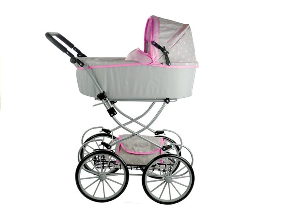 Kočárek Alice v retro stylu pro holčičky od 5 do 9 let. Kočárek má velmi lehkou stabilní konstrukci vyrobenou z hliníkových trubek spojených plastovými díly. Rukojeť kočárku má nastavitelnou výšku takže ji jednoduše pomocí dvou bočních tlačítek můžete přizpůsobit věku dítěte. Uvnitř kočárku je korbička pro panenky s výškou až 59 cm. Před automatickým složením chrání dítě blokace. Ve spodní části je umístěn praktický košík a na drobnosti slouží praktická závěsná taška na suchý zip.