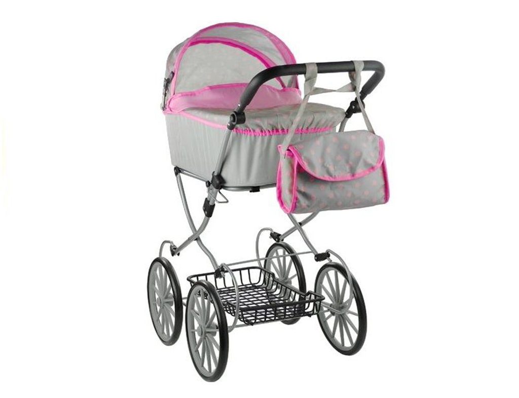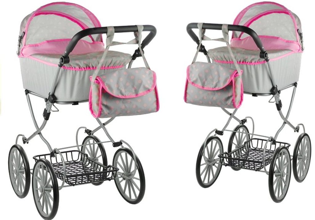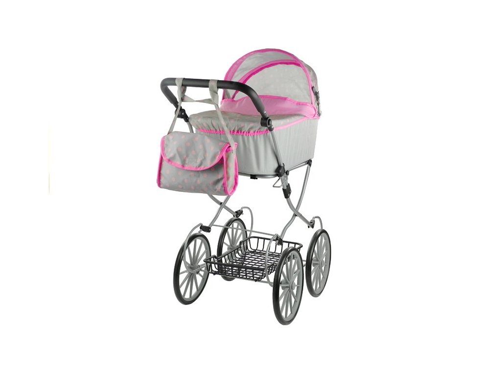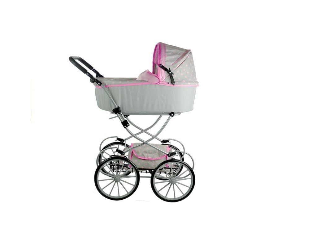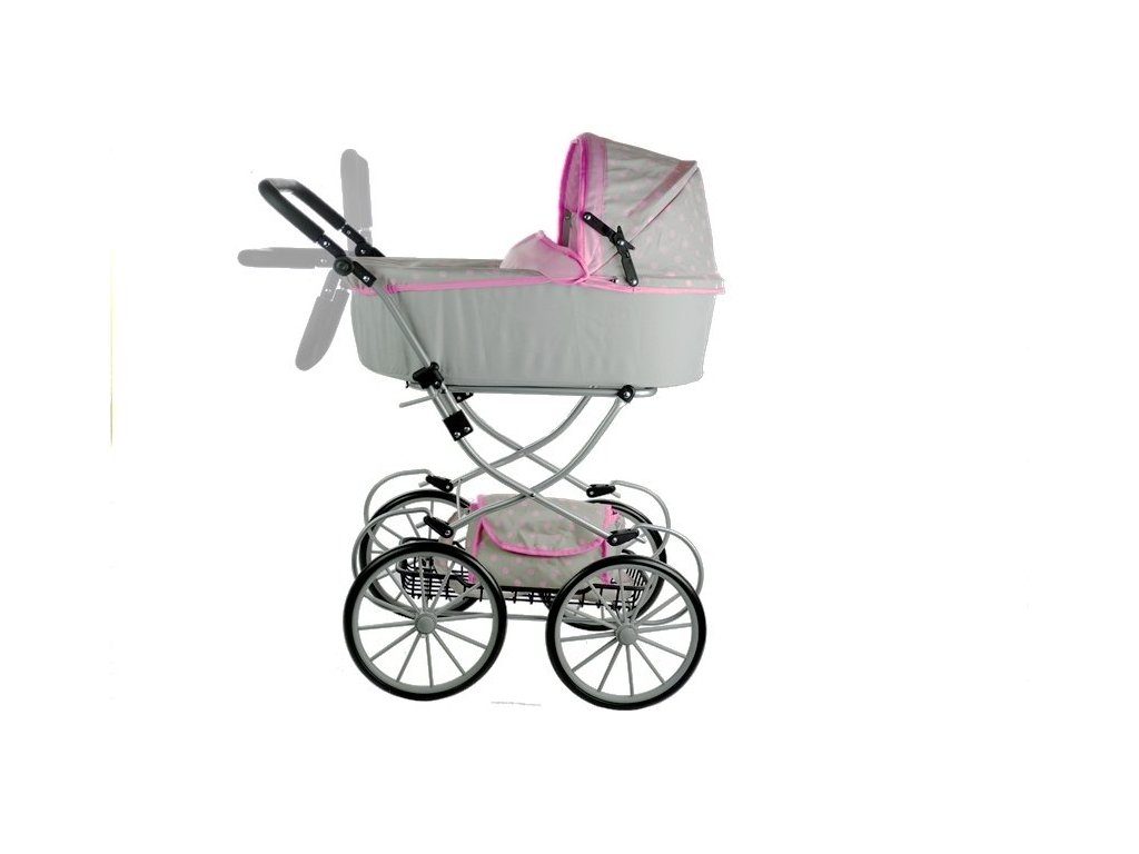 Kočárek Alice v retro stylu pro holčičky od 5 do 9 let. Kočárek má velmi lehkou stabilní konstrukci vyrobenou z hliníkových trubek spojených plastovými díly. Rukojeť kočárku má nastavitelnou výšku takže ji jednoduše pomocí dvou bočních tlačítek můžete přizpůsobit věku dítěte. Uvnitř kočárku je korbička pro panenky s výškou až 59 cm. Před automatickým složením chrání dítě blokace. Ve spodní části je umístěn praktický košík a na drobnosti slouží praktická závěsná taška na suchý zip.