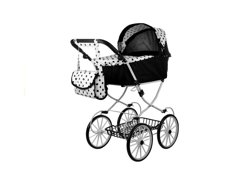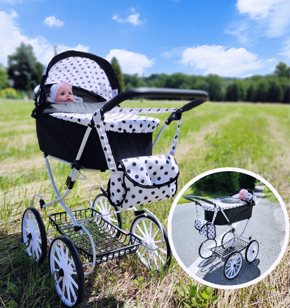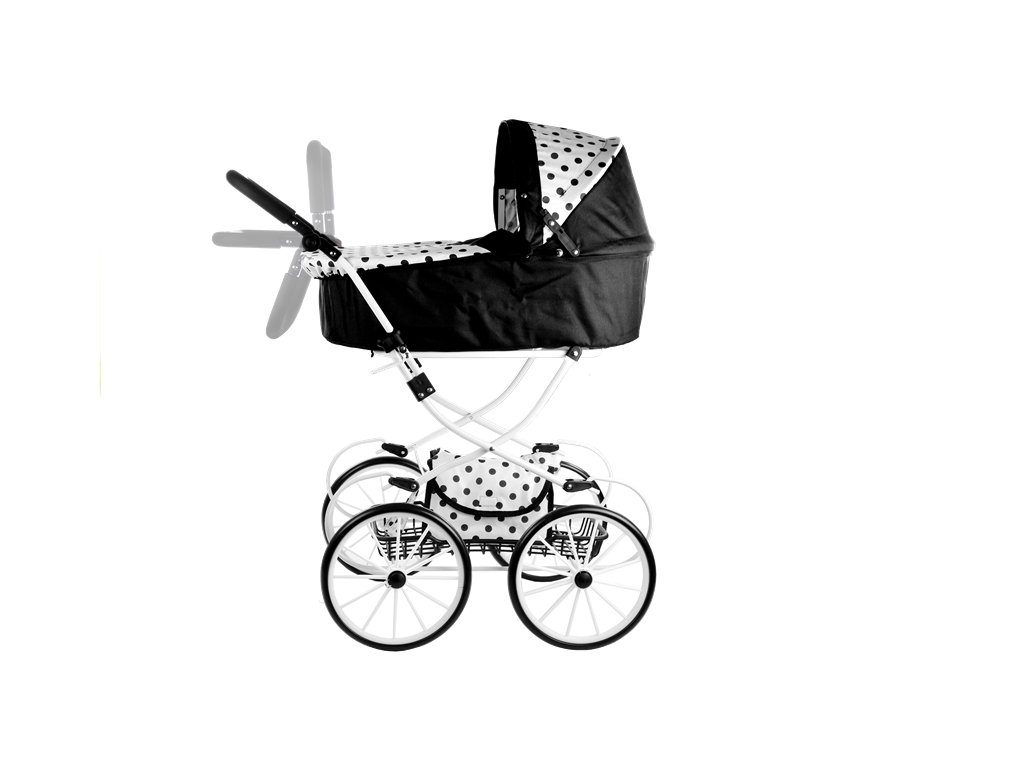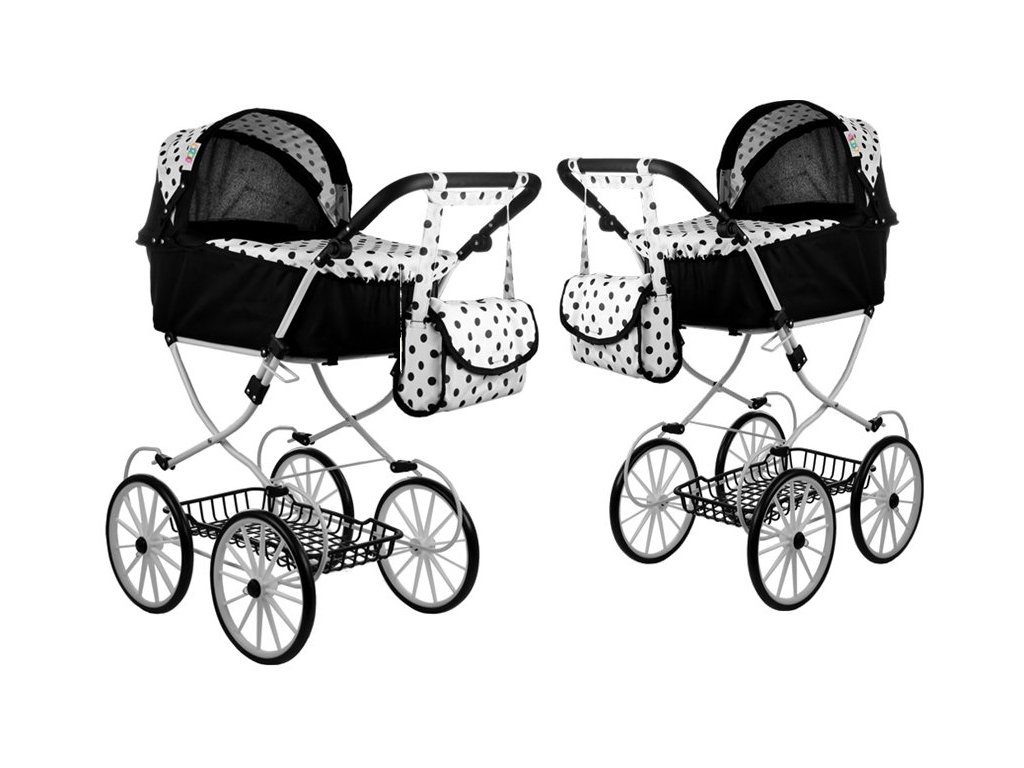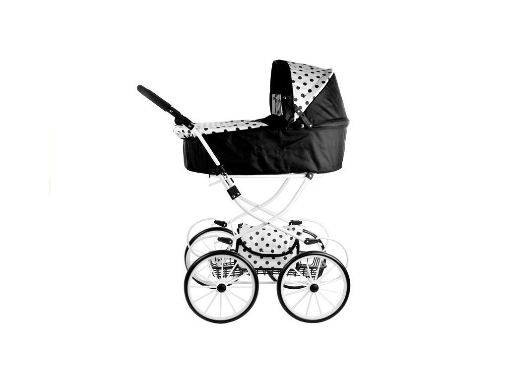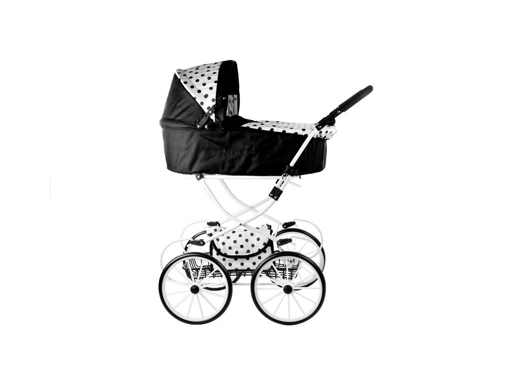 Kočárek pro panenky Alice retro černo-bílý
