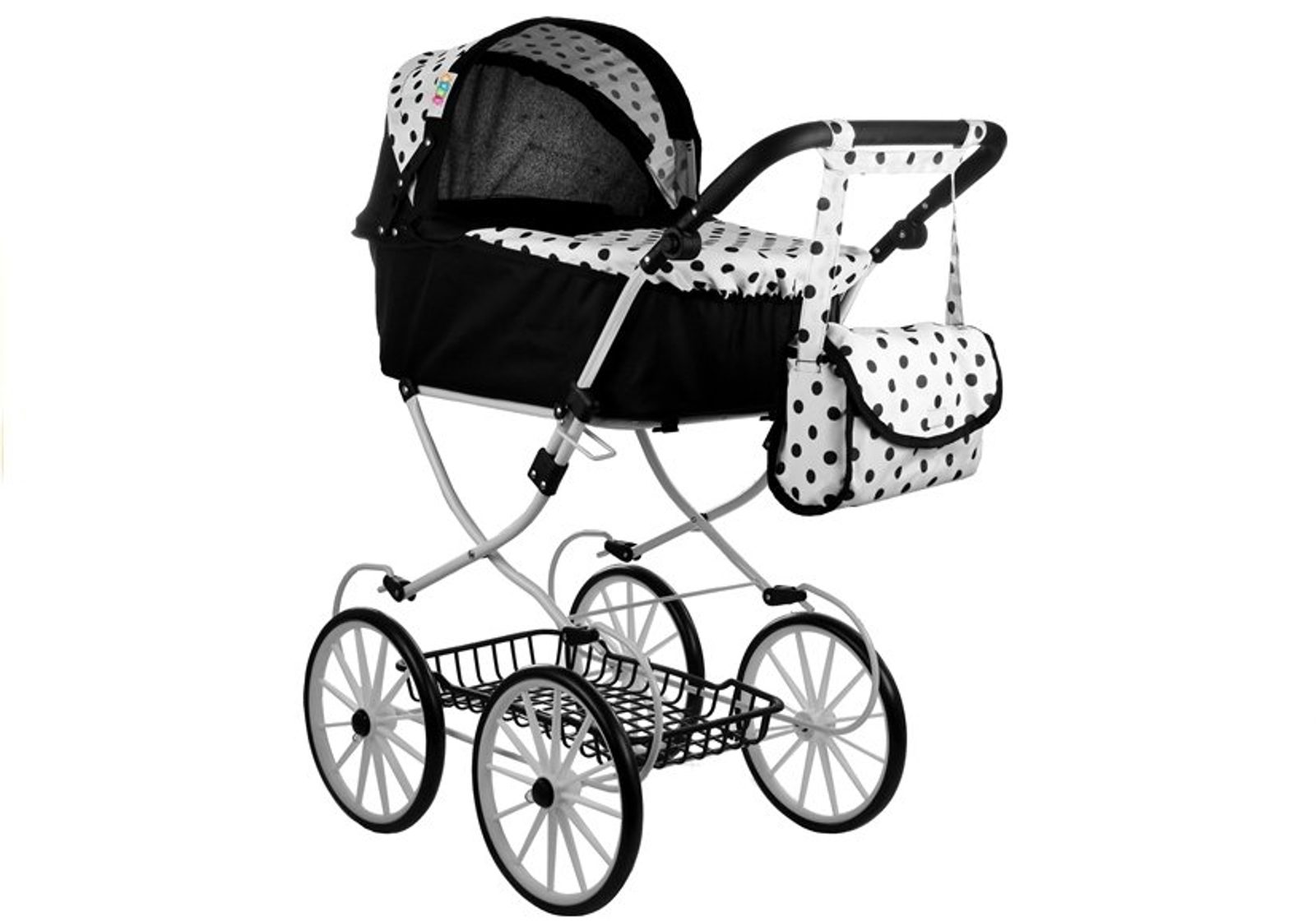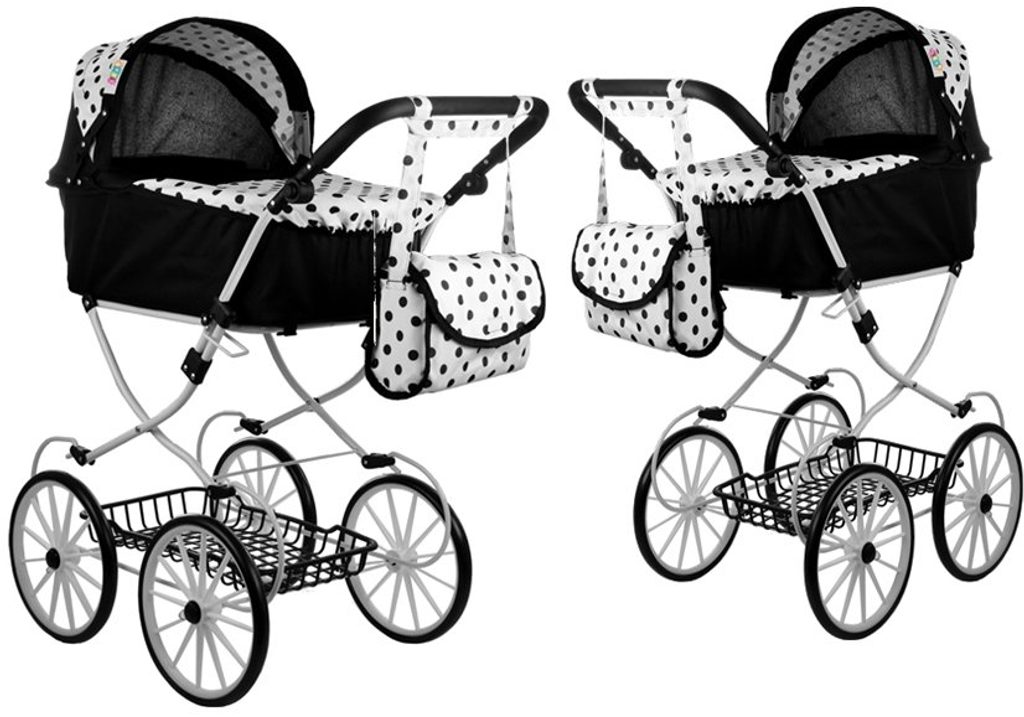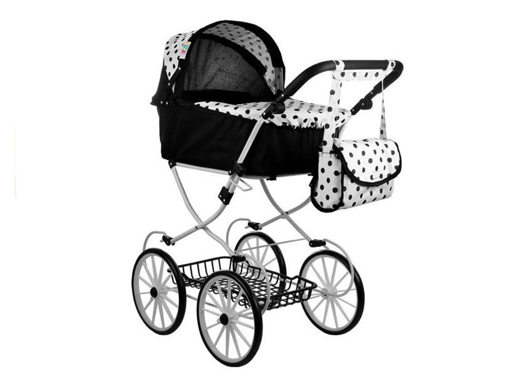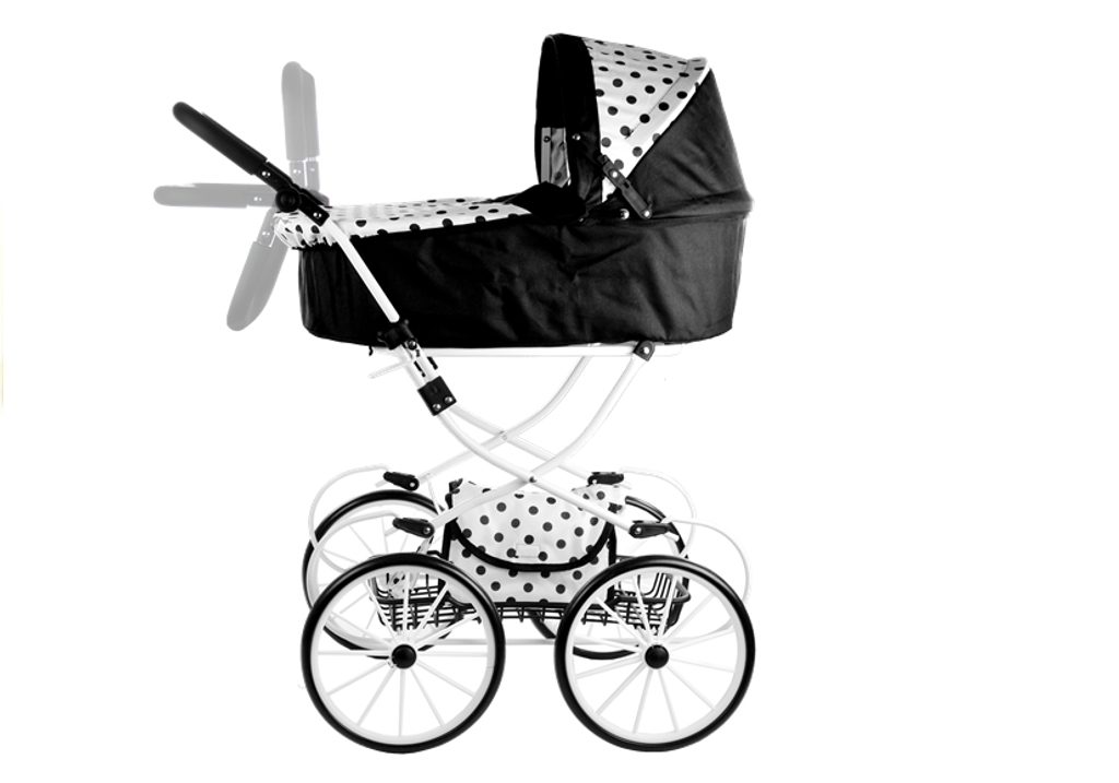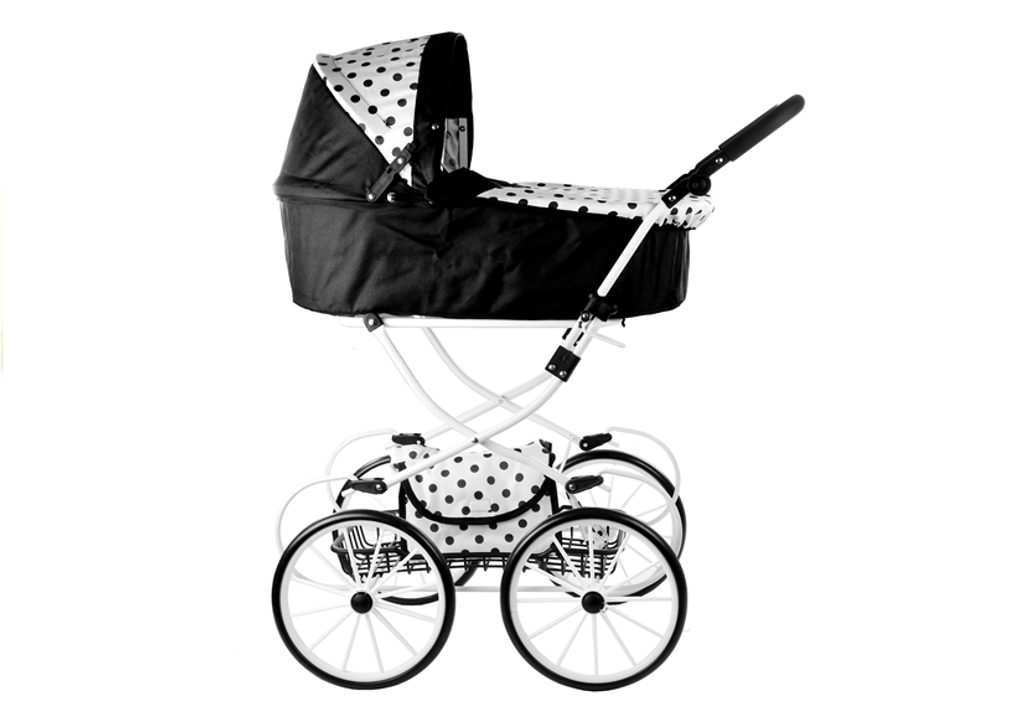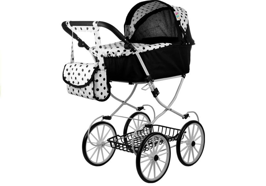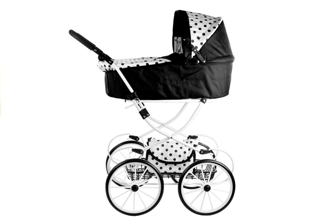 Kočárek pro panenky Alice retro černo-bílý