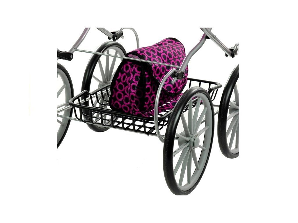 Kočárek Alice v retro stylu pro holčičky od 5 do 9 let. Kočárek má velmi lehkou stabilní konstrukci vyrobenou z hliníkových trubek spojených plastovými díly. Rukojeť kočárku má nastavitelnou výšku takže ji jednoduše pomocí dvou bočních tlačítek můžete přizpůsobit věku dítěte. Uvnitř kočárku je korbička pro panenky s výškou až 59 cm. Před automatickým složením chrání dítě blokace. Ve spodní části je umístěn praktický košík a na drobnosti slouží praktická závěsná taška na suchý zip.