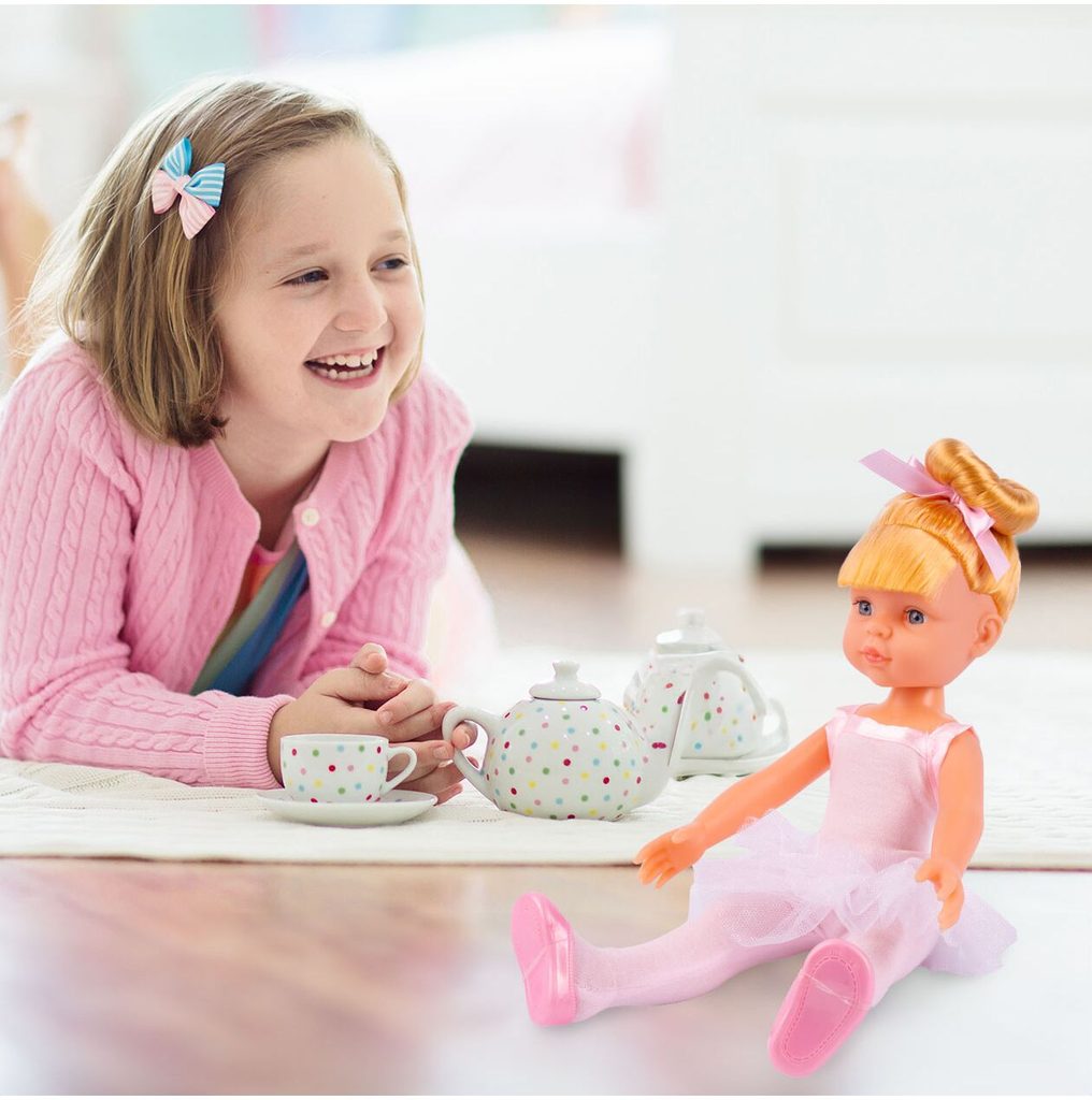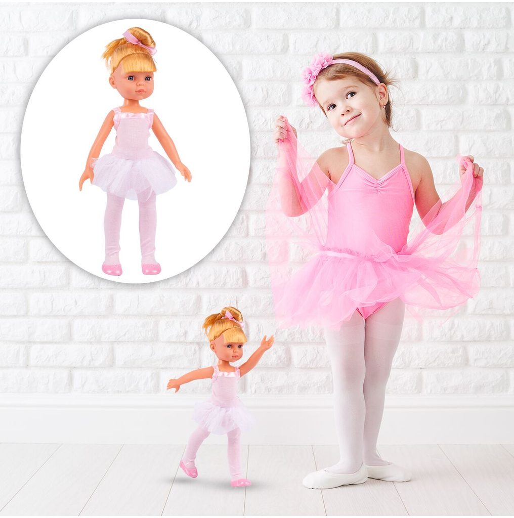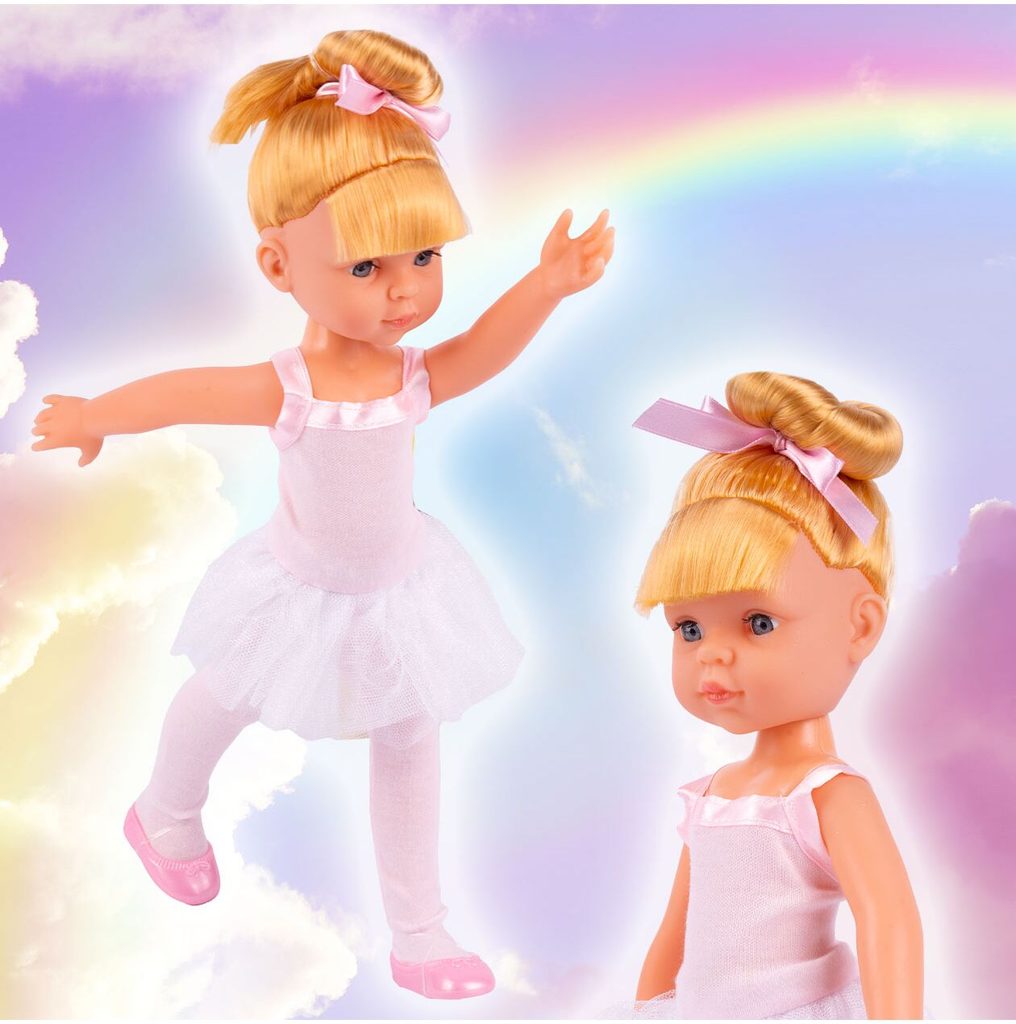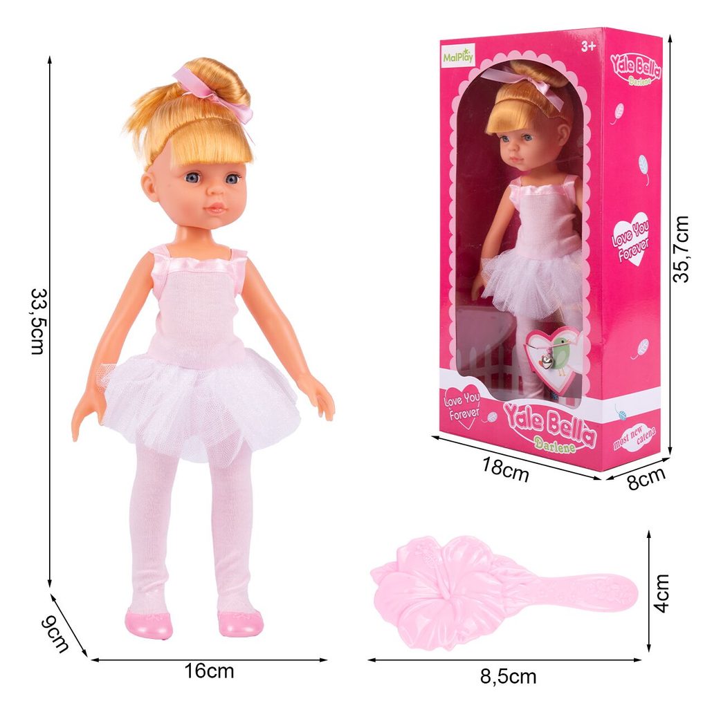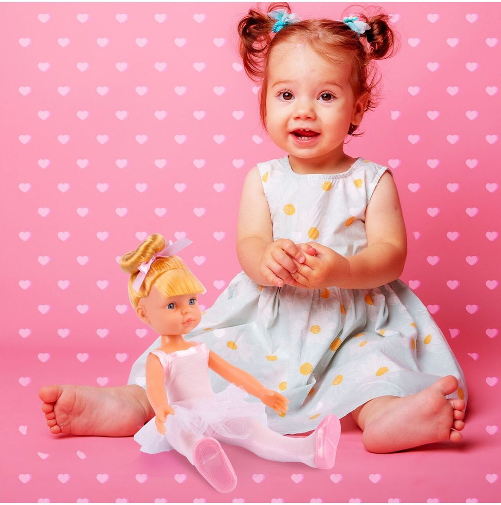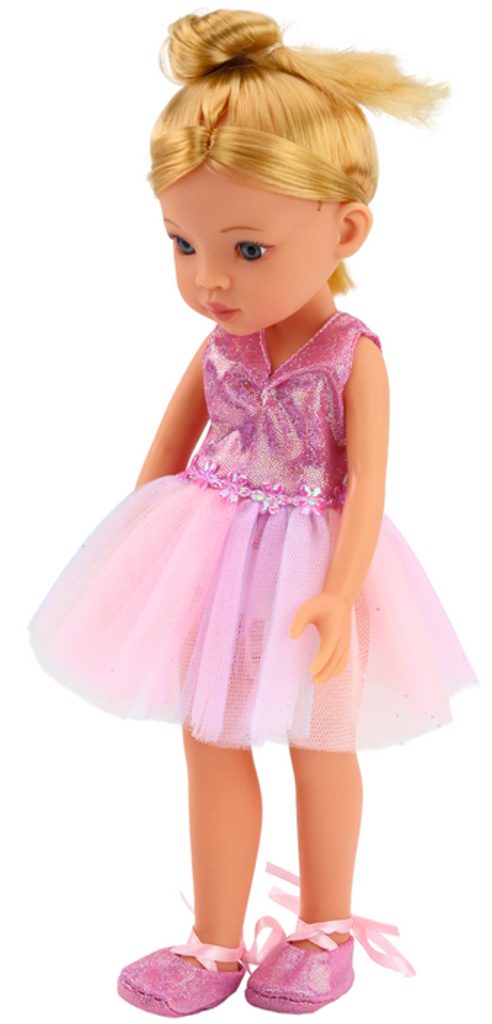 Elegantní a jedinečná panenka balerína, která se stane oblíbenou parťačkou každé dívky, která sní o tanci a baletu. Panenka je impozantních 33 cm vysoká, díky čemuž je ideální pro hraní a prezentaci v kolekci. Panenka má dlouhé blonďaté vlásky stylově svázané do drdolu, jak se na pravou baletku sluší. Má na sobě růžové lesklé šaty s rozšířenou sukní, která se na světle krásně třpytí. Panenka má na sobě růžové lesklé boty, které se zavazují kolem kotníku a dokonale ladí s jejím baletním oblečením. Má pečlivě namalované oči a rty, což jí dodává na šarmu a vypadá jako skutečná baletka. Díky detailům, jako je drdol, lesklé šaty a make-up, panenka vypadá velmi realisticky a stylově. Panenka je vyrobena z vysoce kvalitních materiálů, což zajišťuje odolnost a bezpečnost při hře. Ideální pro rozvoj dětské představivosti a kreativity hraním různých baletních scén a vytvářením vlastních příběhů. Panenka balerína je skvělým doplňkem do sbírky hraček každé holčičky.