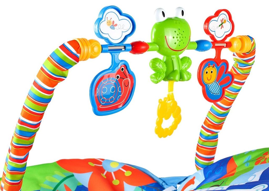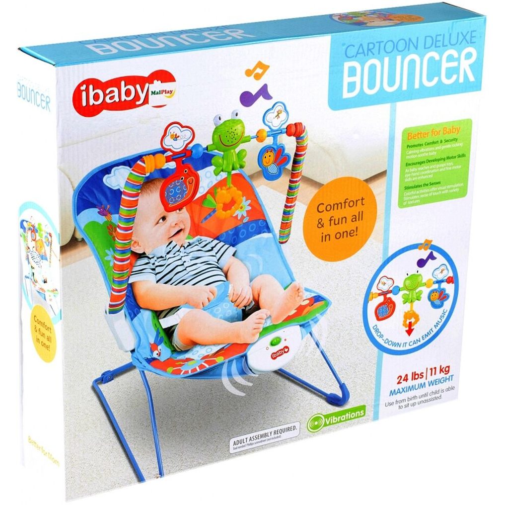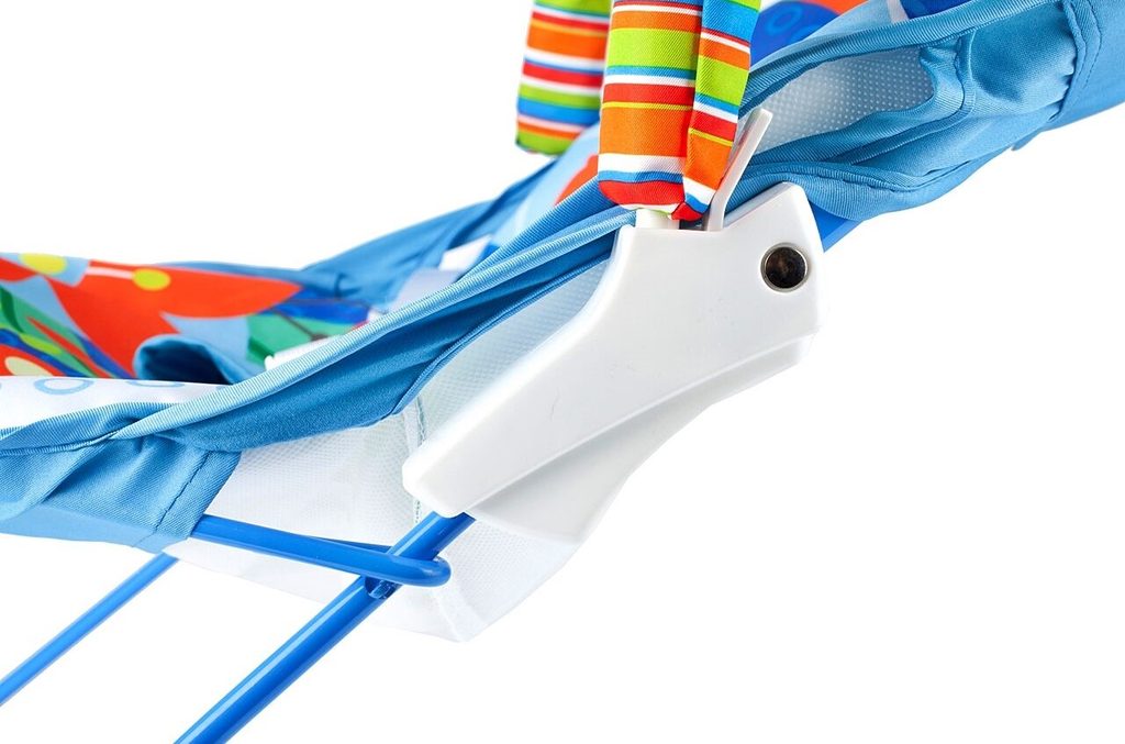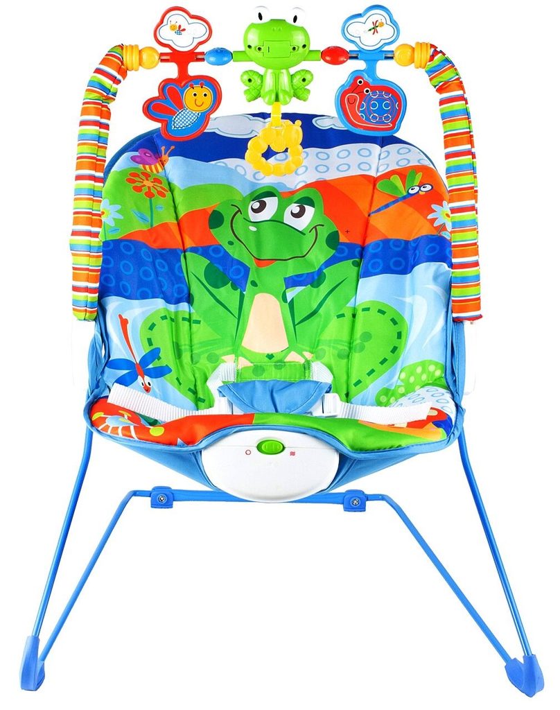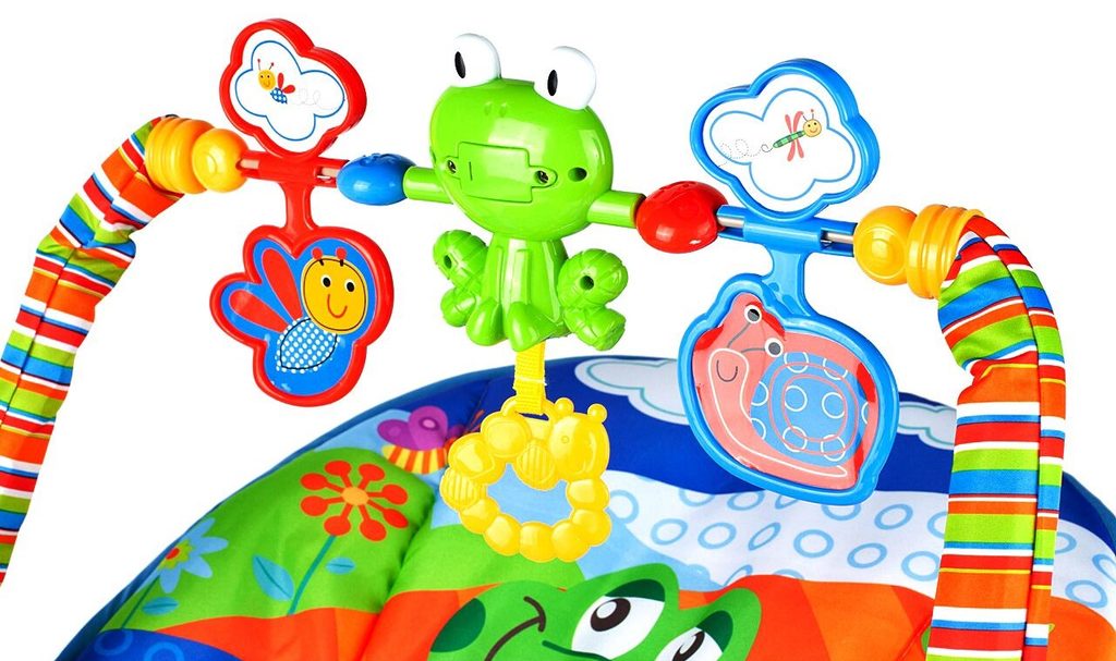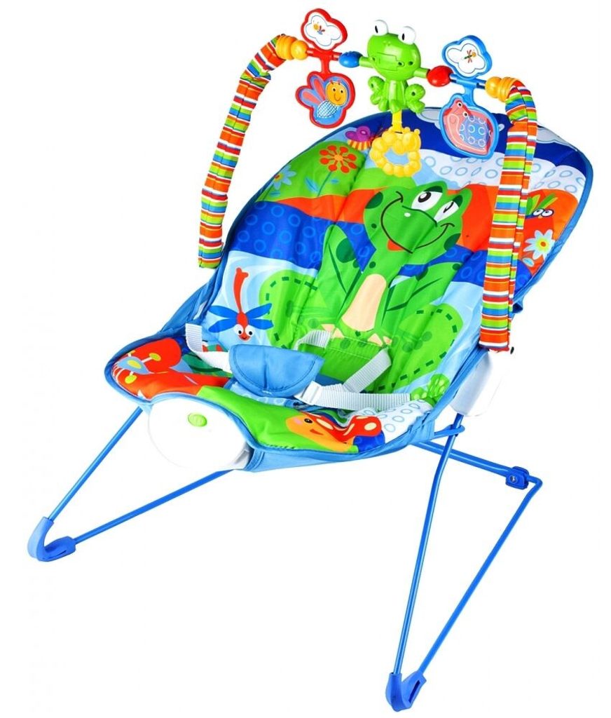 Kojenecké lehátko 2v1 Baby Bouncer. Dítě v něm může bezpečně odpočívat, spát a hrát si od prvních měsíců života. Potah je z měkkého a na dotek příjemného materiálu který lze prát v pračce. Díky elektronickému modulu lehátko vibruje a zklidňuje Vaše dítě. Nastavitelné bezpečnostní pásy zaručují pohodlí a udržují dítě ve správné poloze. Pohon je velmi tichý proto nebude dítě vyrušovat ve spánku. Hrazdička se zavěšenými hračkami obsahuje také žabičku s 12 melodiemi.