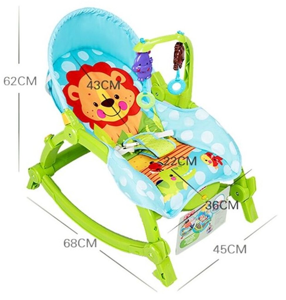 Kojenecké lehátko 3v1 Lion Rocker. Dítě v něm může bezpečně odpočívat, spát a hrát si od prvních měsíců života. Potah je z měkkého a na dotek příjemného materiálu který lze prát v pračce. Díky elektronickému modulu lehátko vibruje a zklidňuje Vaše dítě. Nastavitelné bezpečnostní pásy zaručují pohodlí a udržují dítě ve správné poloze. Pohon je velmi tichý proto nebude dítě vyrušovat ve spánku. Hrazdička se zavěšenými hračkami: hrošíkem, ptáčkem a opičkou. Lehátko je vybaveno nastavitelnými bezpečnostními pásy a systémem blokace houpání.