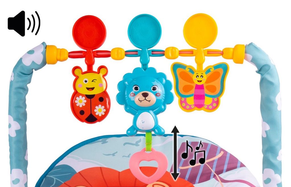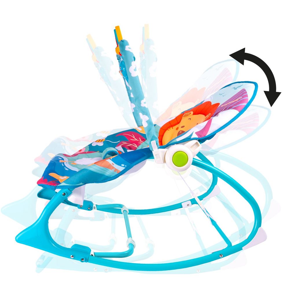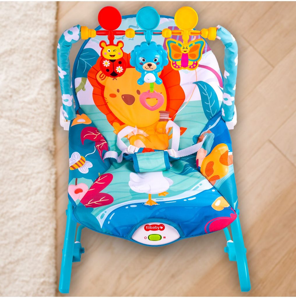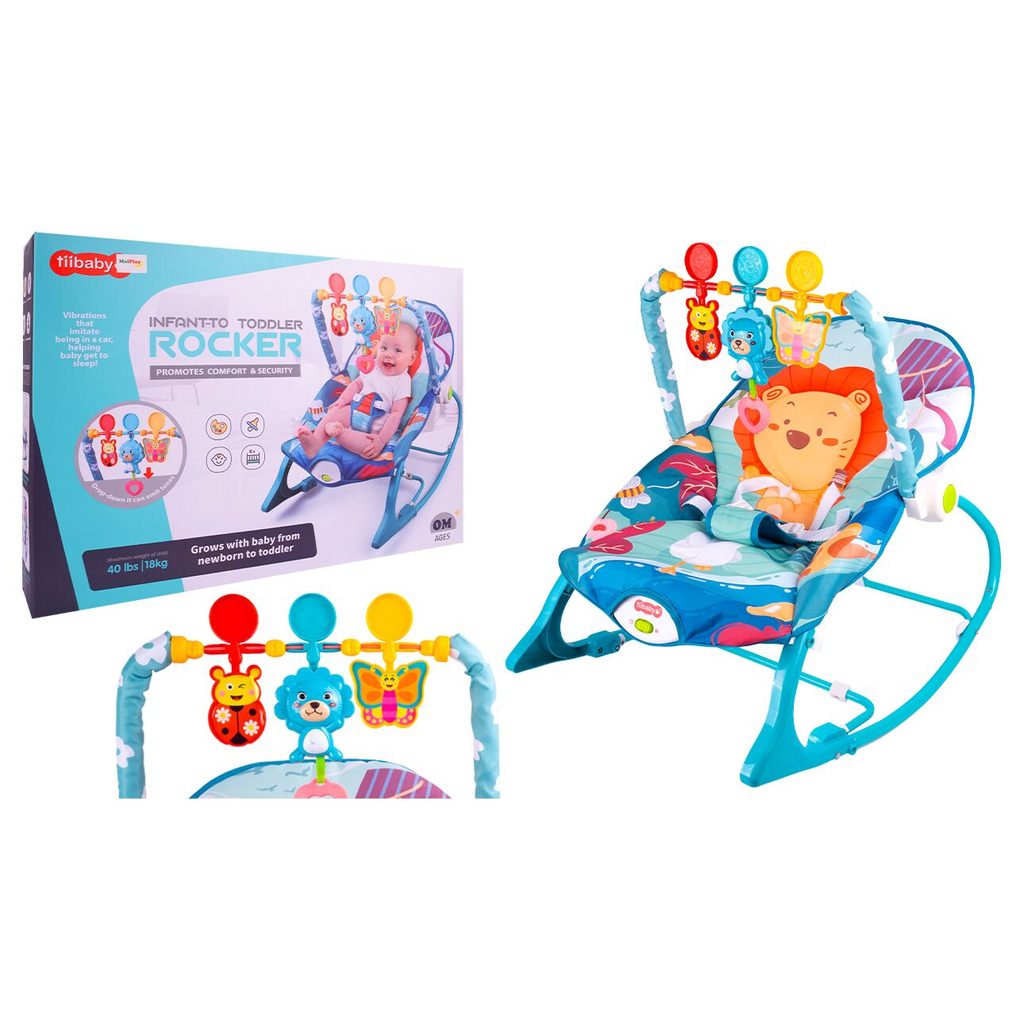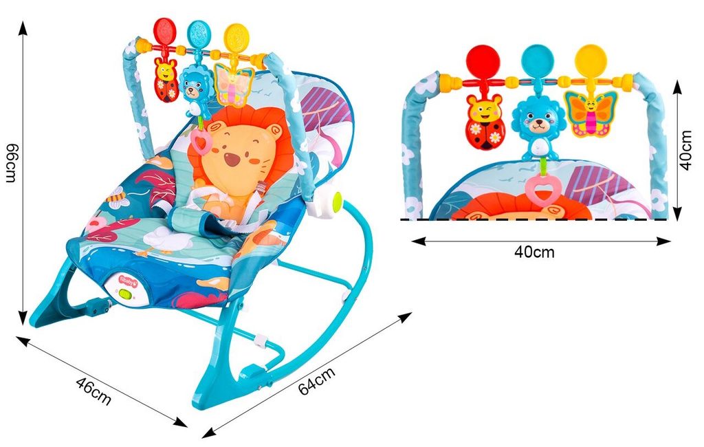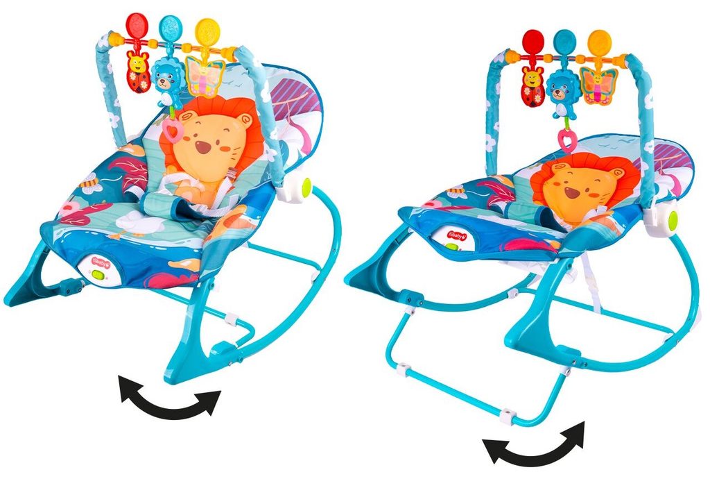 Kojenecké lehátko 3v1 Lvíček. Dítě v něm může bezpečně odpočívat, spát a hrát si od prvních měsíců života. Potah je z měkkého a na dotek příjemného materiálu který lze prát v pračce. Díky elektronickému modulu lehátko vibruje a zklidňuje Vaše dítě. Nastavitelné bezpečnostní pásy zaručují pohodlí a udržují dítě ve správné poloze. Pohon je velmi tichý proto nebude dítě vyrušovat ve spánku. Hrazdička se zavěšenými hračkami a lvíčkem, který vydává melodie. Lehátko je vybaveno nastavitelnými bezpečnostními pásy a systémem blokace houpání.