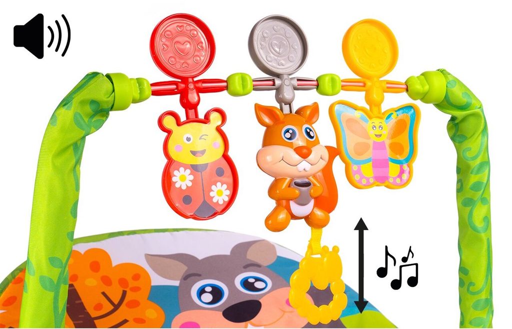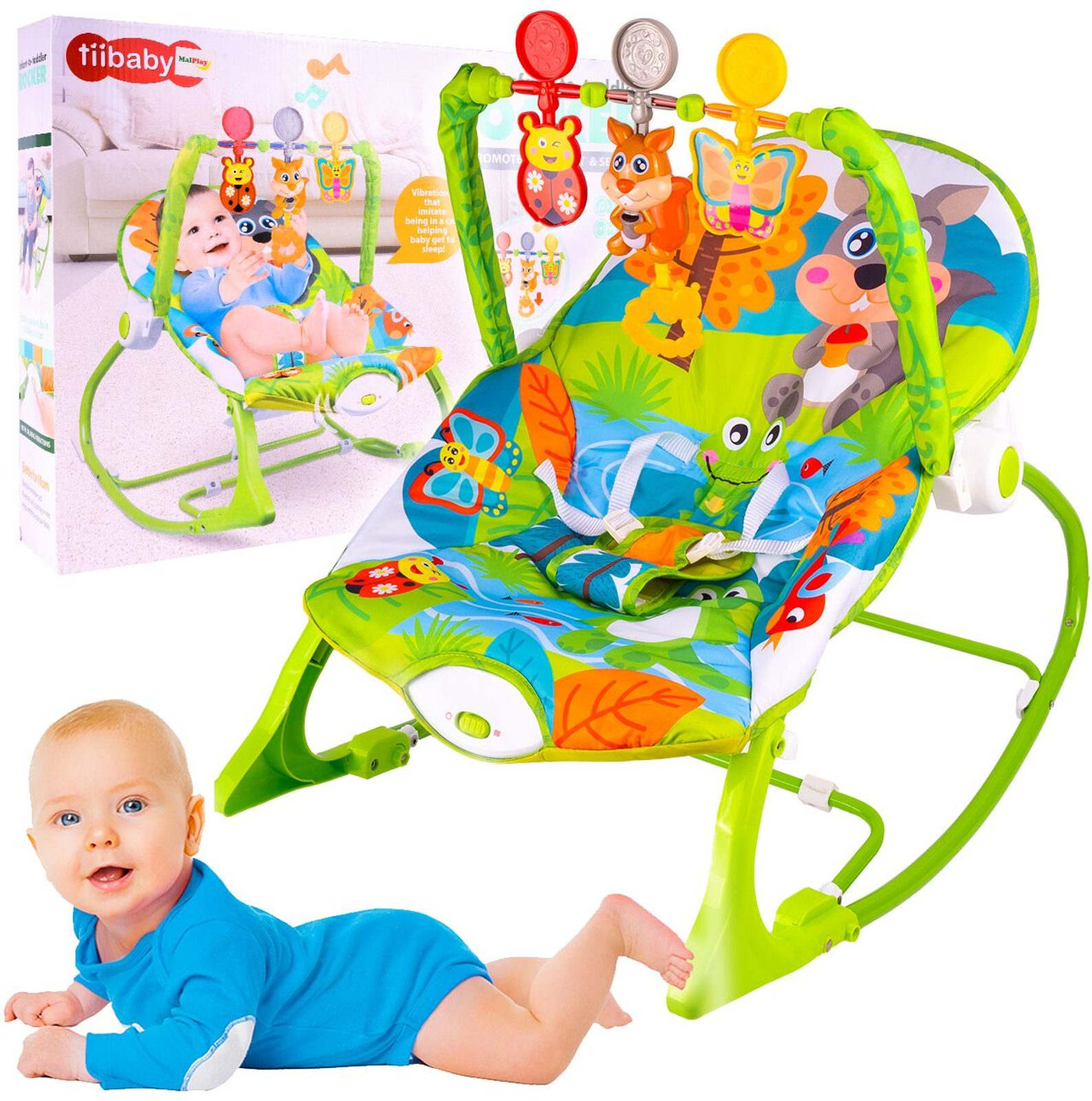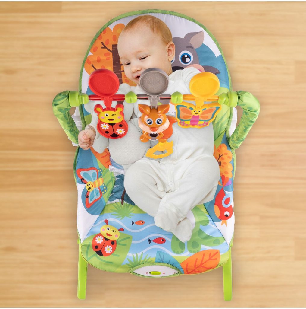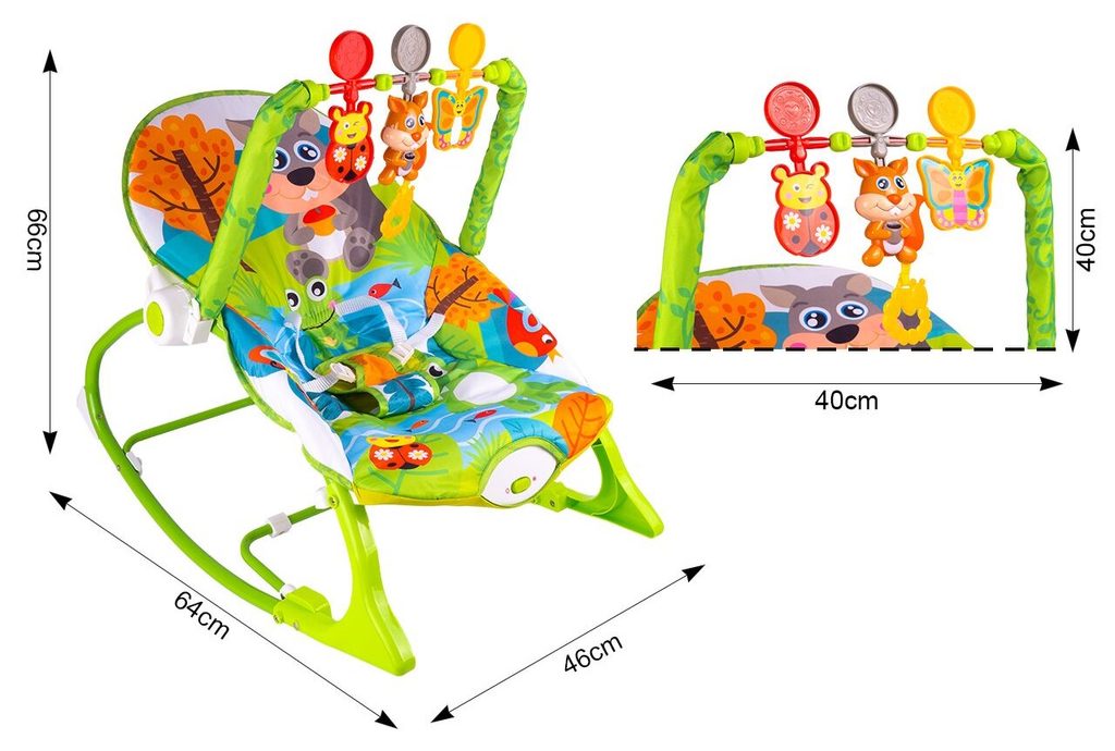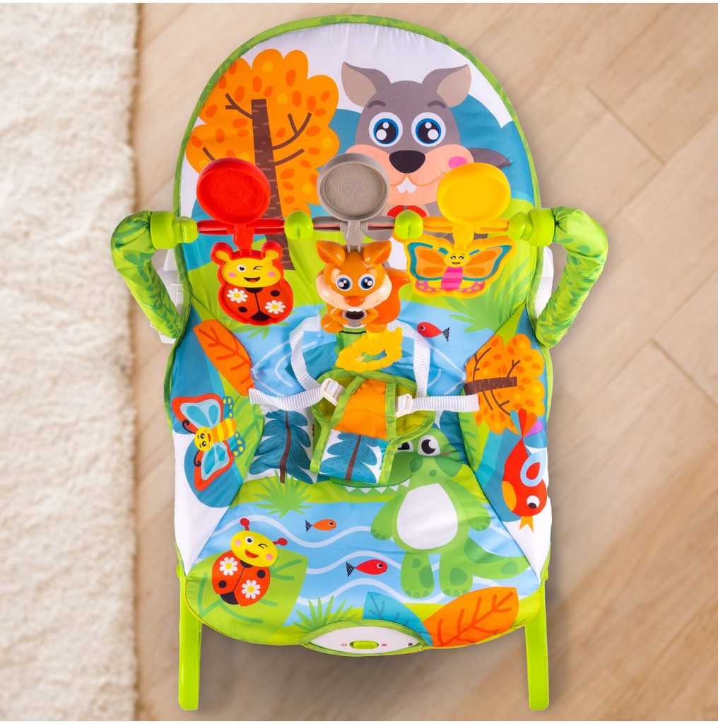 Kojenecké lehátko 3v1 Veverka. Dítě v něm může bezpečně odpočívat, spát a hrát si od prvních měsíců života. Potah je z měkkého a na dotek příjemného materiálu který lze prát v pračce. Díky elektronickému modulu lehátko vibruje a zklidňuje Vaše dítě. Nastavitelné bezpečnostní pásy zaručují pohodlí a udržují dítě ve správné poloze. Pohon je velmi tichý proto nebude dítě vyrušovat ve spánku. Hrazdička se zavěšenými hračkami a veverkou, která vydává melodie. Lehátko je vybaveno nastavitelnými bezpečnostními pásy a systémem blokace houpání.