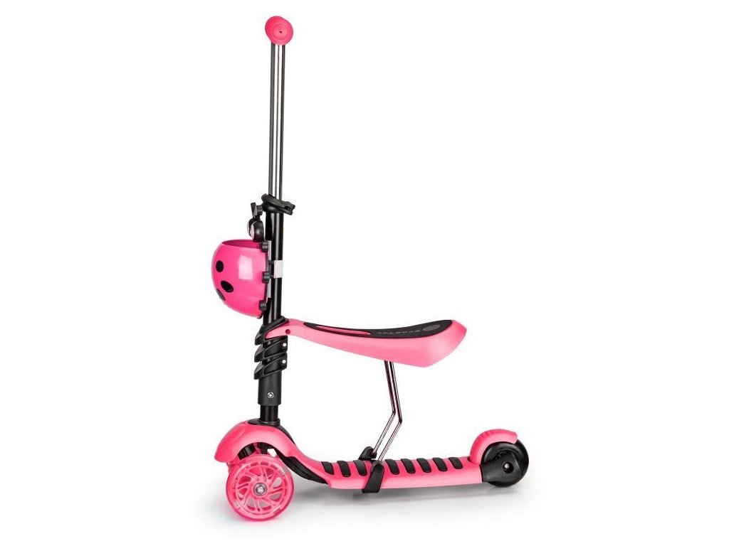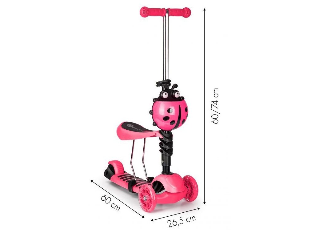 Dětská balanční koloběžka Ecotoys se svítícími koly a demontovatelným sedátkem. Koloběžku lze tak využít i jako odrážedlo. Je osazena tichými protiskluzovými koly s LED světly, které svítí během jízdy. Zatáčení probíhá na principu pohybu těla - nakláněním. Řídítka mají nastavitelnou výšku a protiskluzovou úpravu rukojeťí. V zadní části je umístěn blatník, který slouží jako nožní brzda. Koloběžka je určena pro děti od 3 let věku a 25 kg hmotnosti.