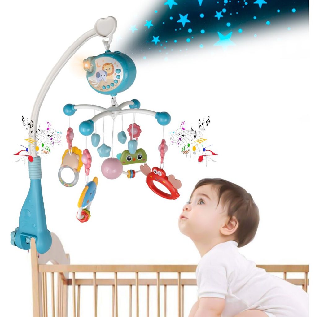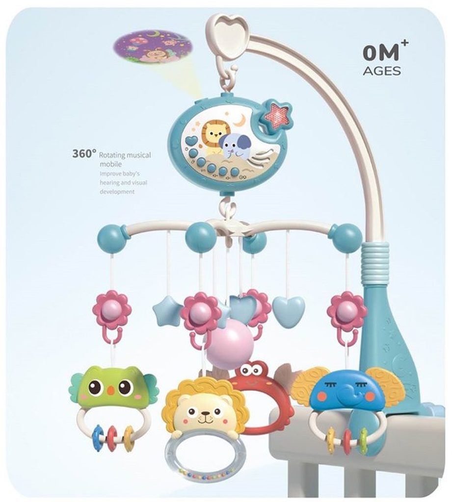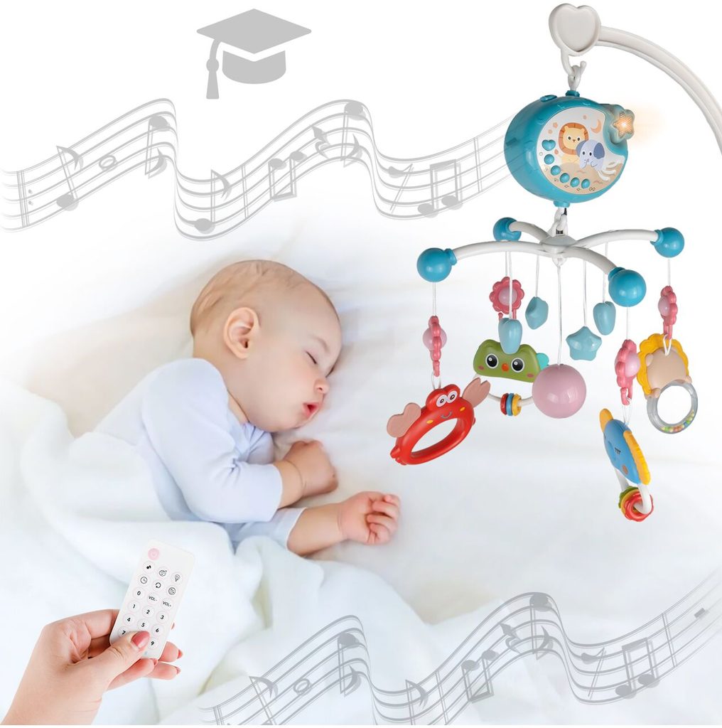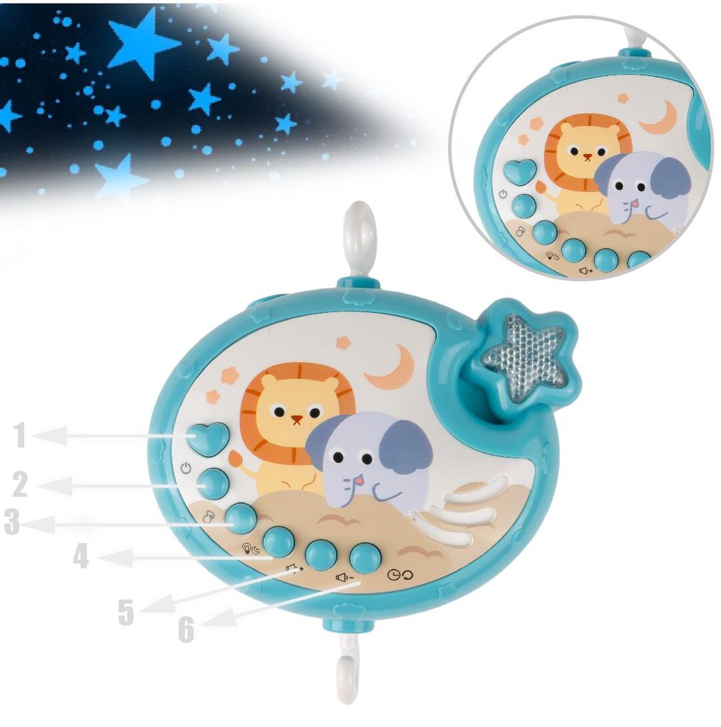 Kolotoč nad postýlku s projektorem a dálkovým ovládáním Music Mobile modrý