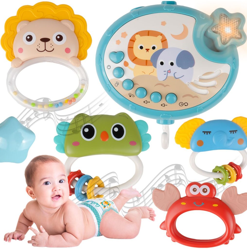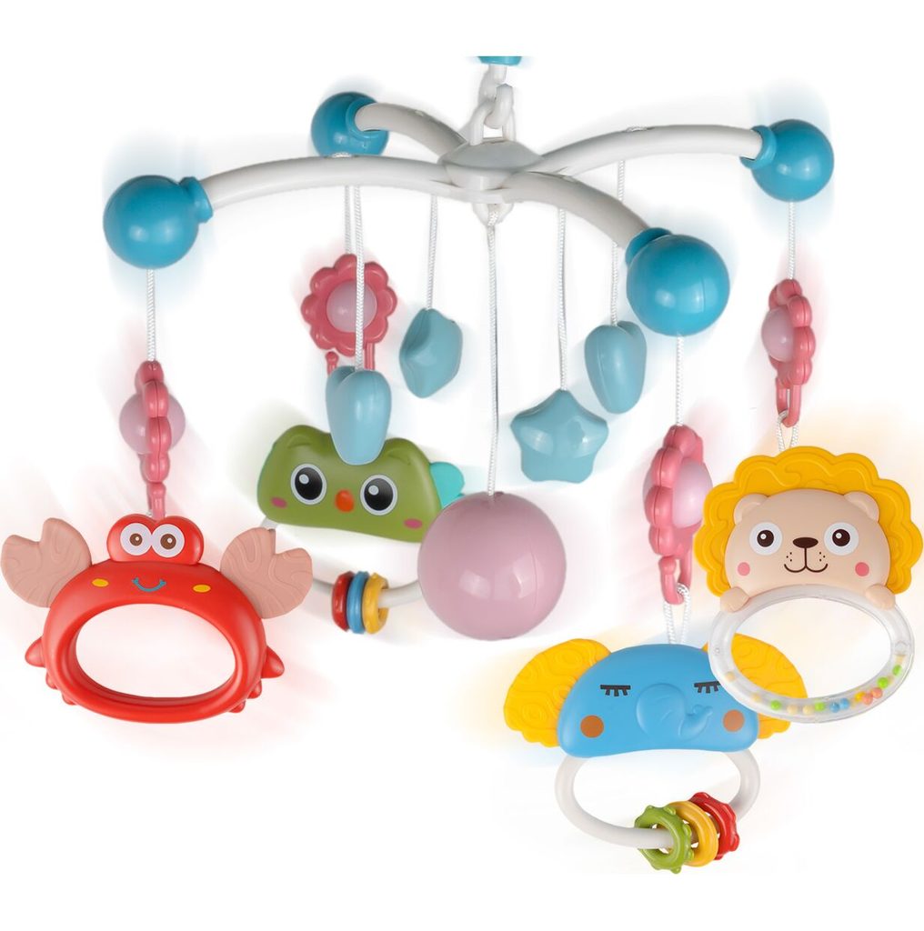 Nádherný dětský kolotoč Music Mobile se zavěšenými hračkami a projektorem pomůže každému dítěti hravě usnout. Hračky v provedení chrastítek lze odejmout a použít samostatně. Kolotoč je vybaven uklidňujícími ukolébavkami, vypínačem zvuku a také regulací hlasitosti. Lze ho snadno demontovat, můžete to ho tak umístit i nad kočárek. Je určen pro děti od narození.