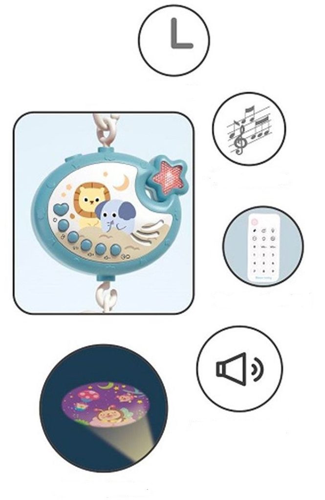 • kolotoč nad postýlku s projektorem a dálkovým ovládačem Music Mobile