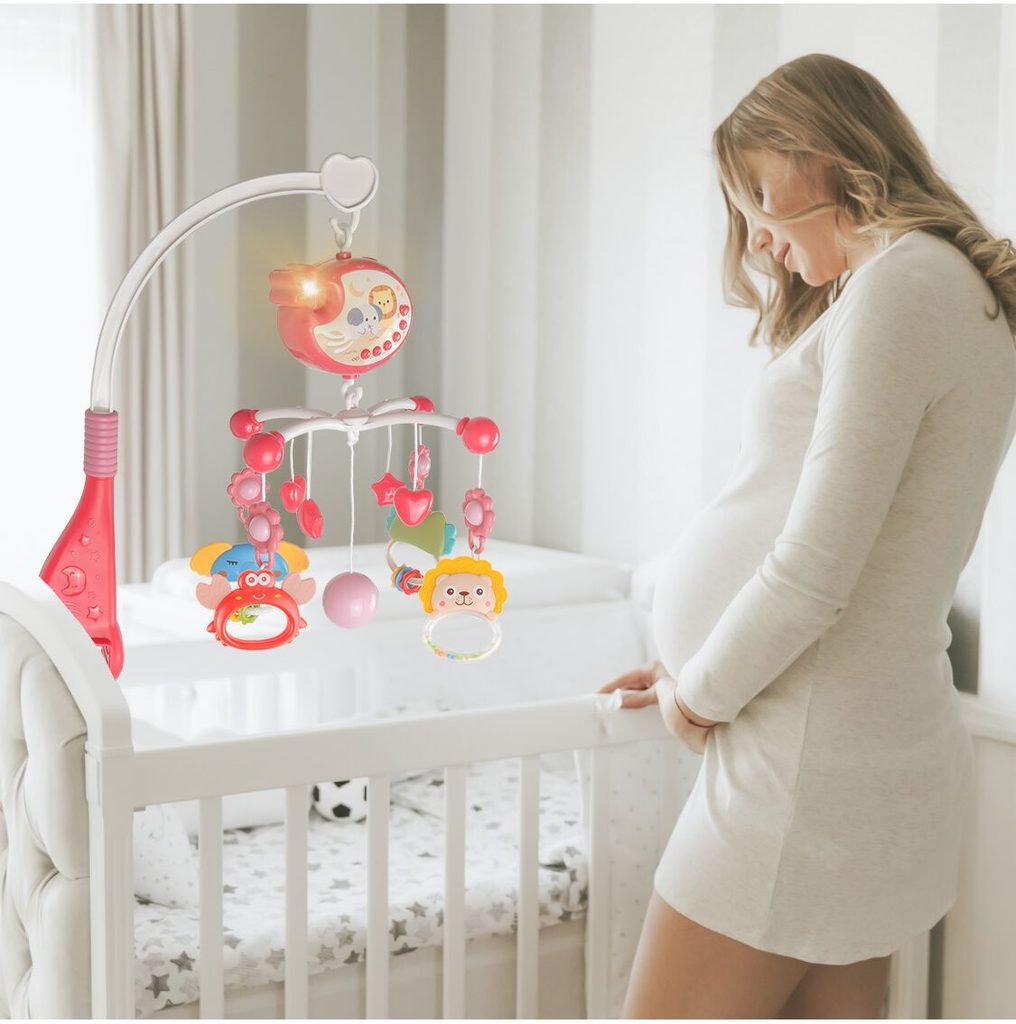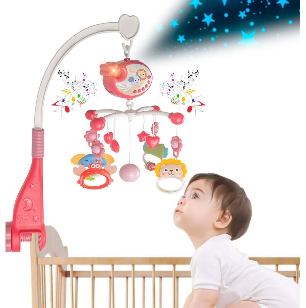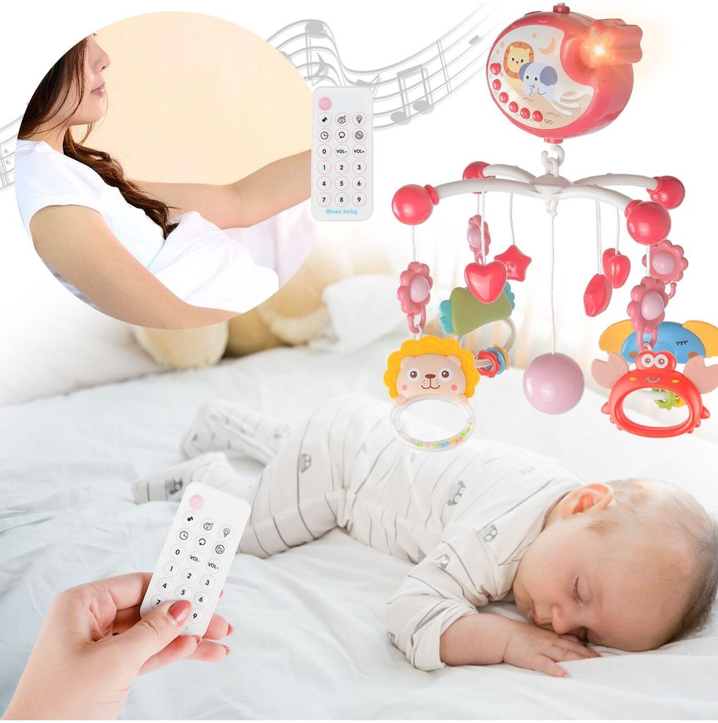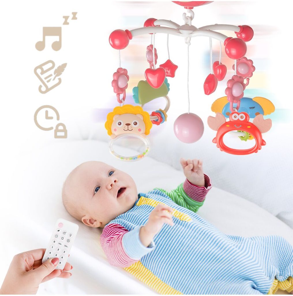 Nádherný dětský kolotoč Music Mobile se zavěšenými hračkami a projektorem pomůže každému dítěti hravě usnout. Hračky v provedení chrastítek lze odejmout a použít samostatně. Kolotoč je vybaven uklidňujícími ukolébavkami, vypínačem zvuku a také regulací hlasitosti. Lze ho snadno demontovat, můžete to ho tak umístit i nad kočárek. Je určen pro děti od narození.