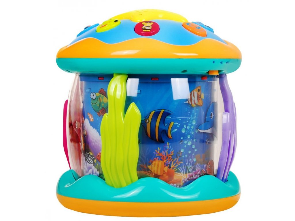 Multifunkční lampička s projektorem, světly a melodiemi je ideální hračkou pro ty nejmenší děti. Umožní dítěti rozvíjet hmat, zrak, sluch a také mu pomůže klidně usnout. Je vybaven rotujícím projektorem s několika barevnými světelnými obrazci a uklidňujícími melodiemi. V horní části je umístěno tlačítko ve tvaru velké hvězdice, kterým se mění světelné režimy projektoru, dále potom tlačítka s obrázky různých mořských živočichů. Po jejich zmáčknutí se ozve charakteristický zvuk vyobrazeného zvířátka. Tlačítko s námořníkem spouští příjemné melodie. Hračka je vybavena dvoustupňovou regulací hlasitosti a tlačítkem zapnuto/vypnuto.