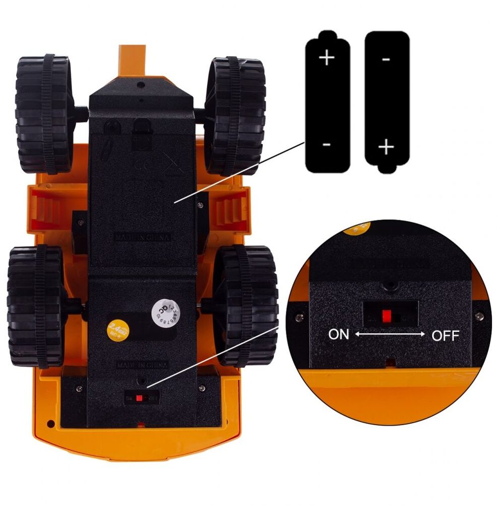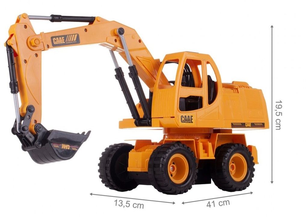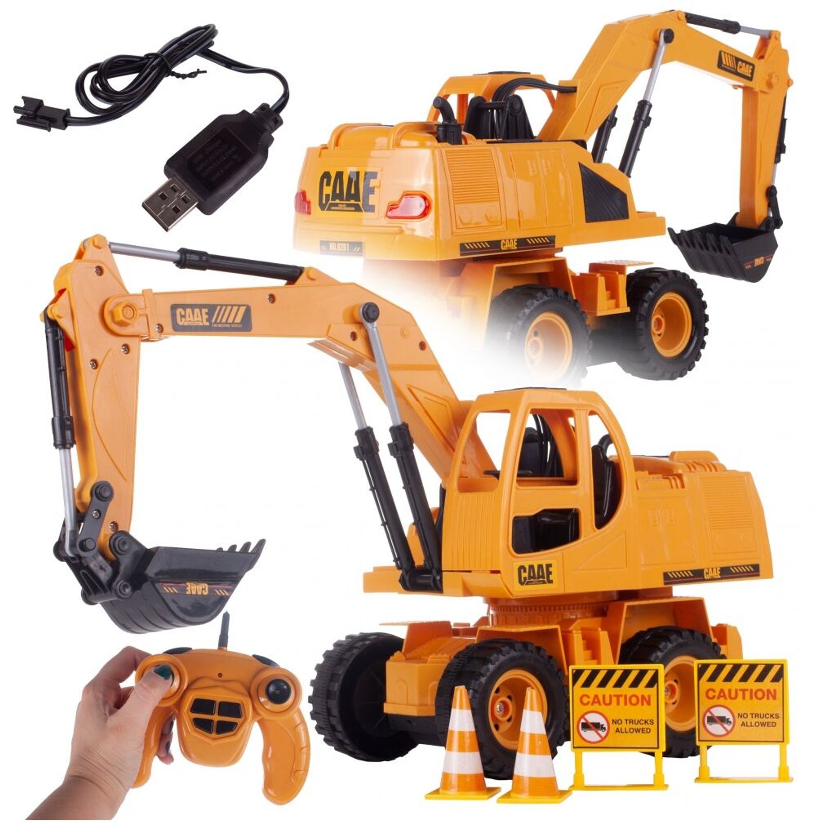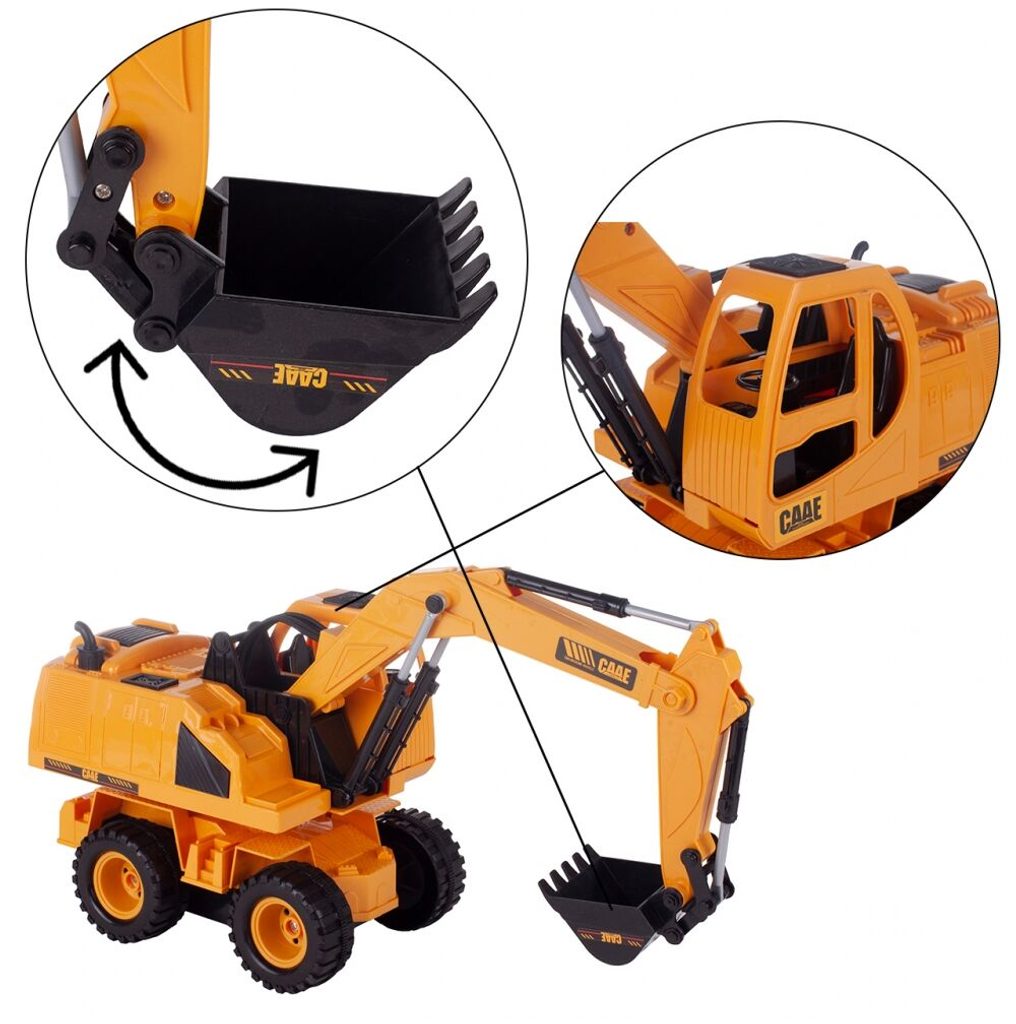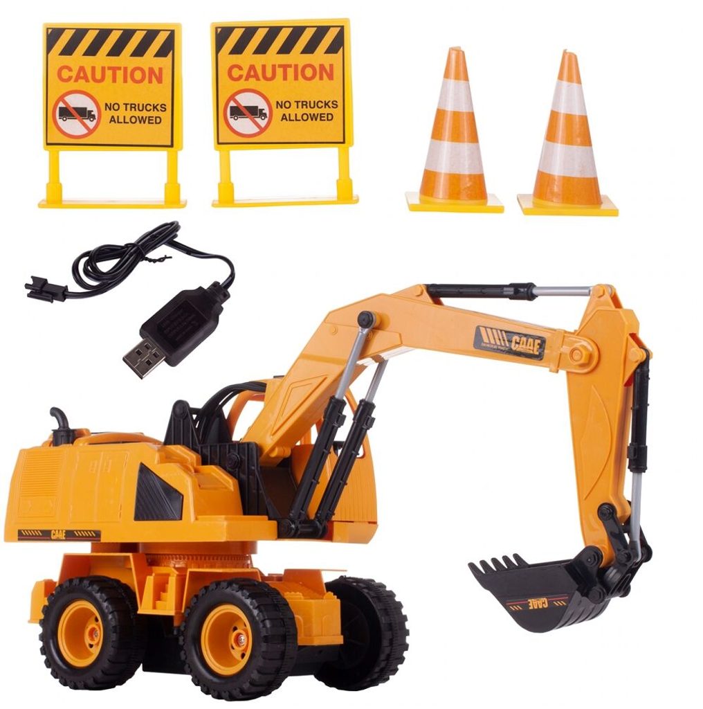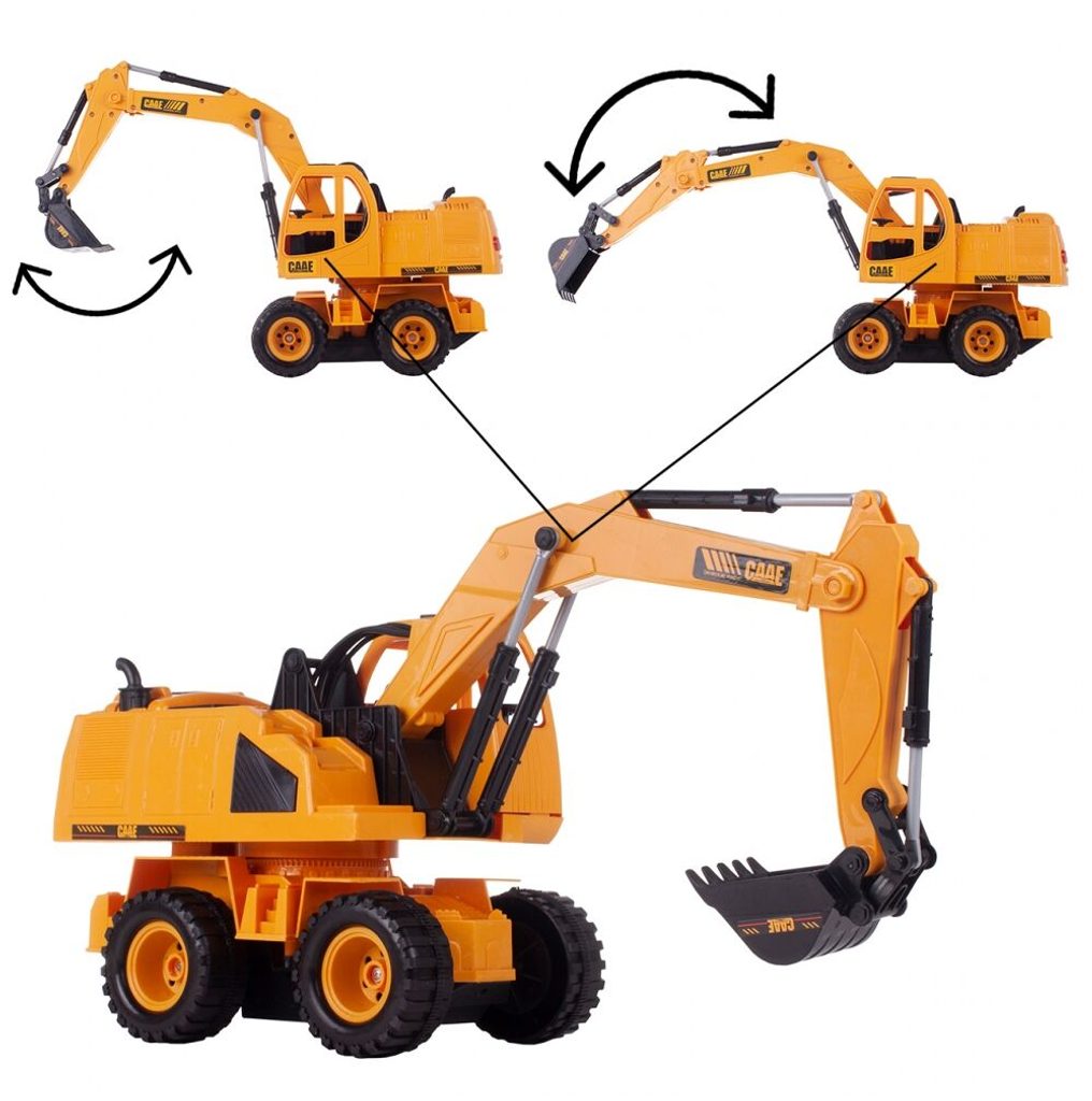 Bagr na dálkové ovládání s dálkovým ovládáním 2,4G umožnuje jízdu dopředu a dozadu, má otáčecí kola doprava a doleva a pohyblivou otáčecí lžíci, kterou lze nakládat materiál. Při jízdě dopředu vydává zvuky stavebního stroje, při jízdě dozadu pípá. Ovládání bagru je velmi jednoduché, pomocí dvou joysticků se ovládá směr a pomocí dvou tlačítek se zvedá nakládací lžíce. Součástí balení je akumulátor a USB nabíječka. Dálkové ovládání je napájeno bateriemi, které nejsou součástí balení. Bagr je vyroben z plastu a má certifikaci CE.