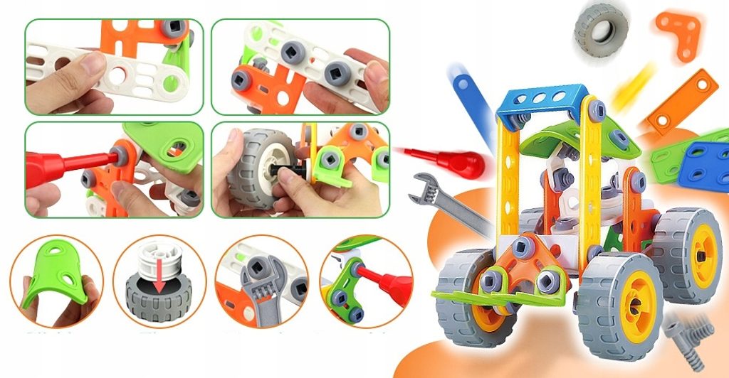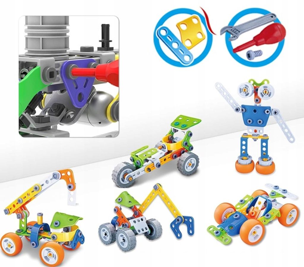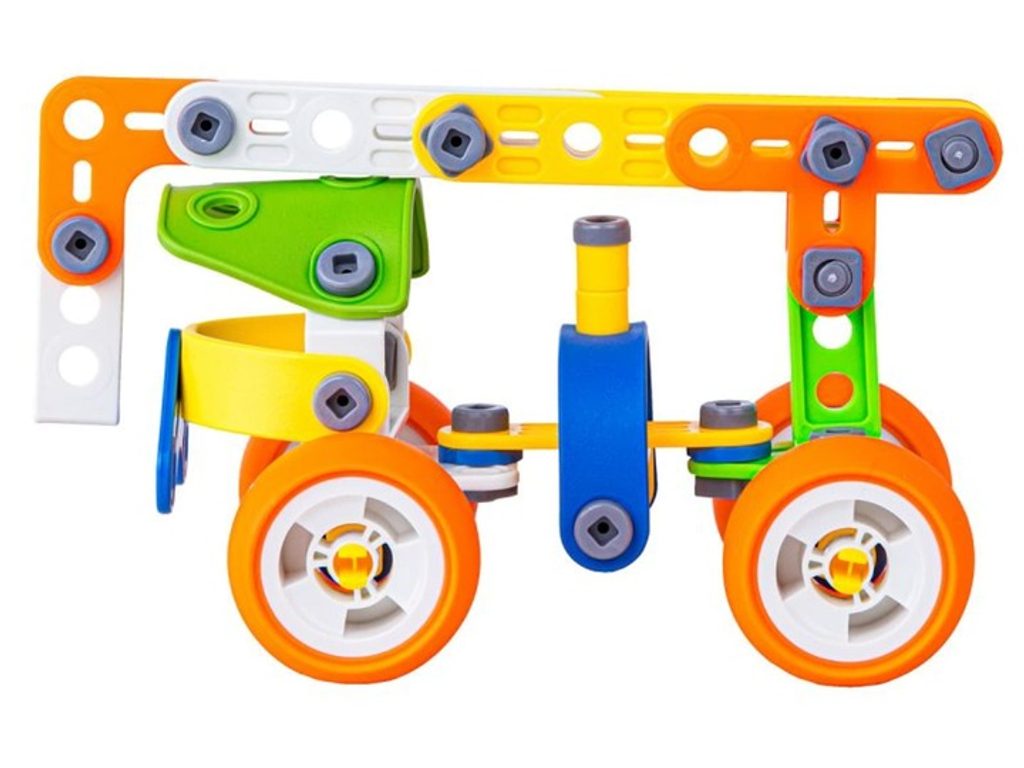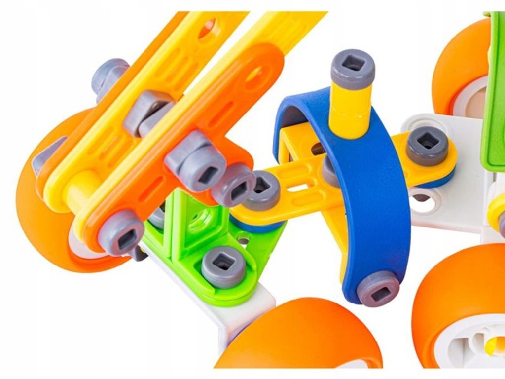 Barevná konstrukční stavebnice Build Play je ideální hračkou pro všechny malé konstruktéry. Skládá se z celkem 167 komponentů -konstrukčních dílů. Součástí sady je ruční šroubovák a francouzský klíč. Pomocí systému spojování konstrukčních prvků pomocí spojovacího materiálu si dítě může vytvořit celkem 10 různých konstrukcí jako jsou vozítka, letadla a postavičky. Hračka je určena pro děti od 5 let věku.