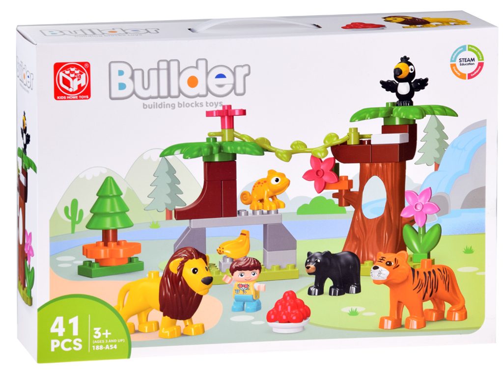 Barevná konstrukční stavebnice Animal Jungle je ideální hračkou pro všechny malé konstruktéry. Je ideální pro rozvoj dětské představivosti, kreativity a logického myšlení. Skládá se z celkem 41 komponentů v různých velikostech a barvách. Lze z nich vytvořit kompletní džungli včetně stromu a zvířátek. Vše je vyrobeno z plastu v několika barvách. Hračka je určena pro děti od 3 let věku.