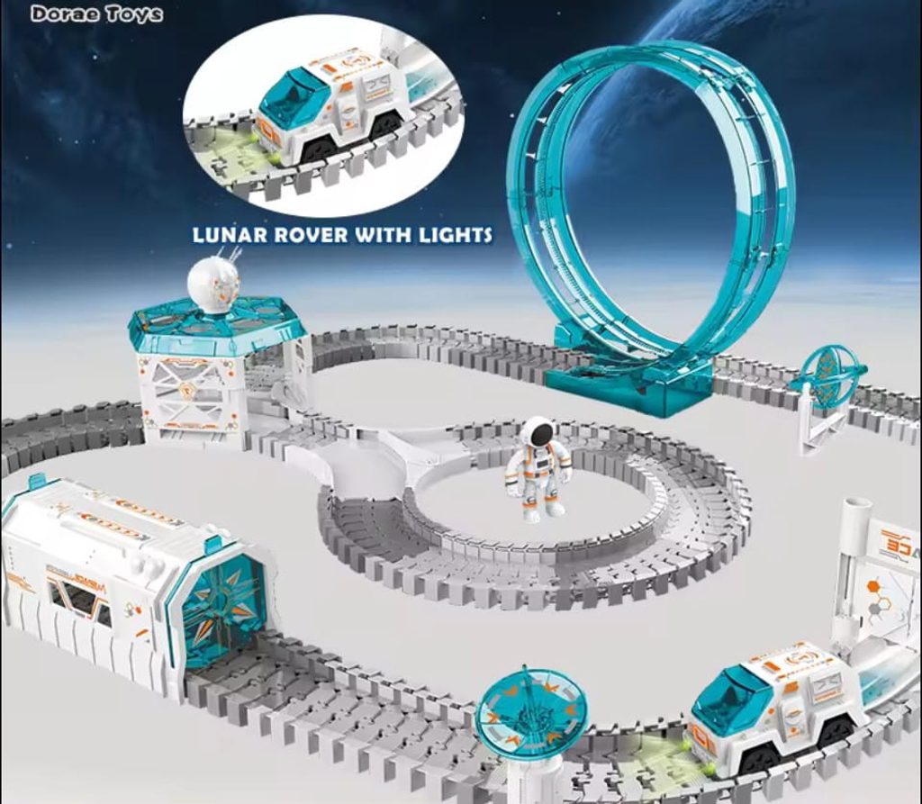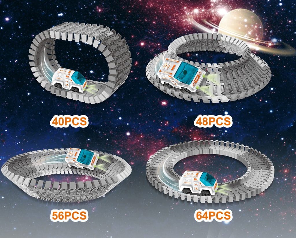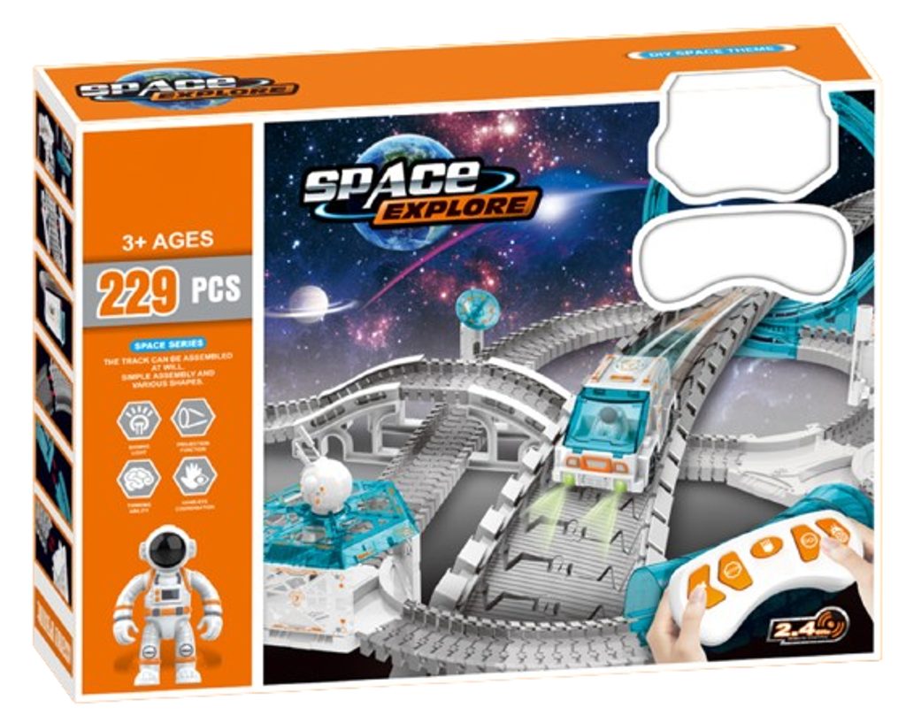 Hlavním prvkem sady jsou vesmírné dráhy, skládající se z až 229 prvků, které lze nekonečně kombinovat a konfigurovat. Součástí setu je i projektor, který dítěti při hře představí atmosféru vesmíru a hvězd. Díky různým možnostem propojení mohou dráhy nabývat různých tvarů a pokaždé vytvářet nové vesmírné trasy. Sada obsahuje také vozítko astronauta, připravené vyrazit na cestu vesmírem. Toto odolné vozidlo je napájeno dvěma bateriemi, což umožňuje astronautovi u řízení vydat se na dlouhé vesmírné cesty, prozkoumávat nové galaxie a zkoumat cizí planety. Dále je součástí sady tunel, vesmírná věž, přijímač signálu a vesmírná stanice, které lze umístit podél trati a přidat tak další výzvy a dobrodružství.