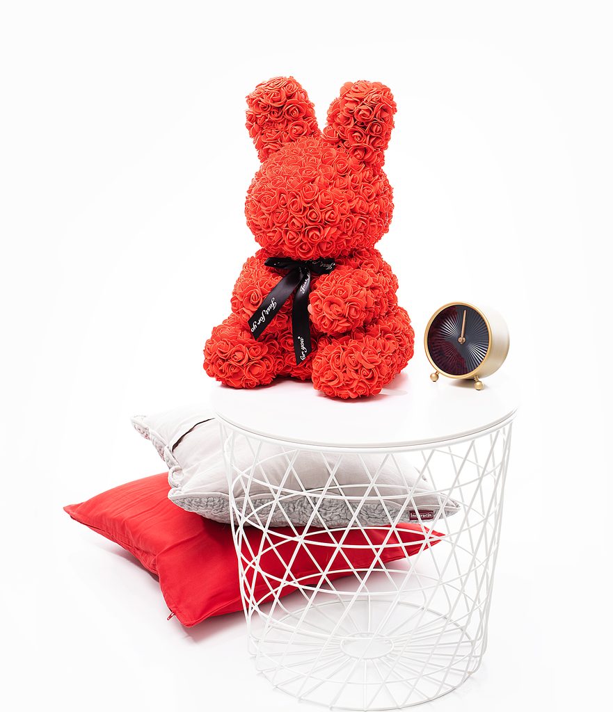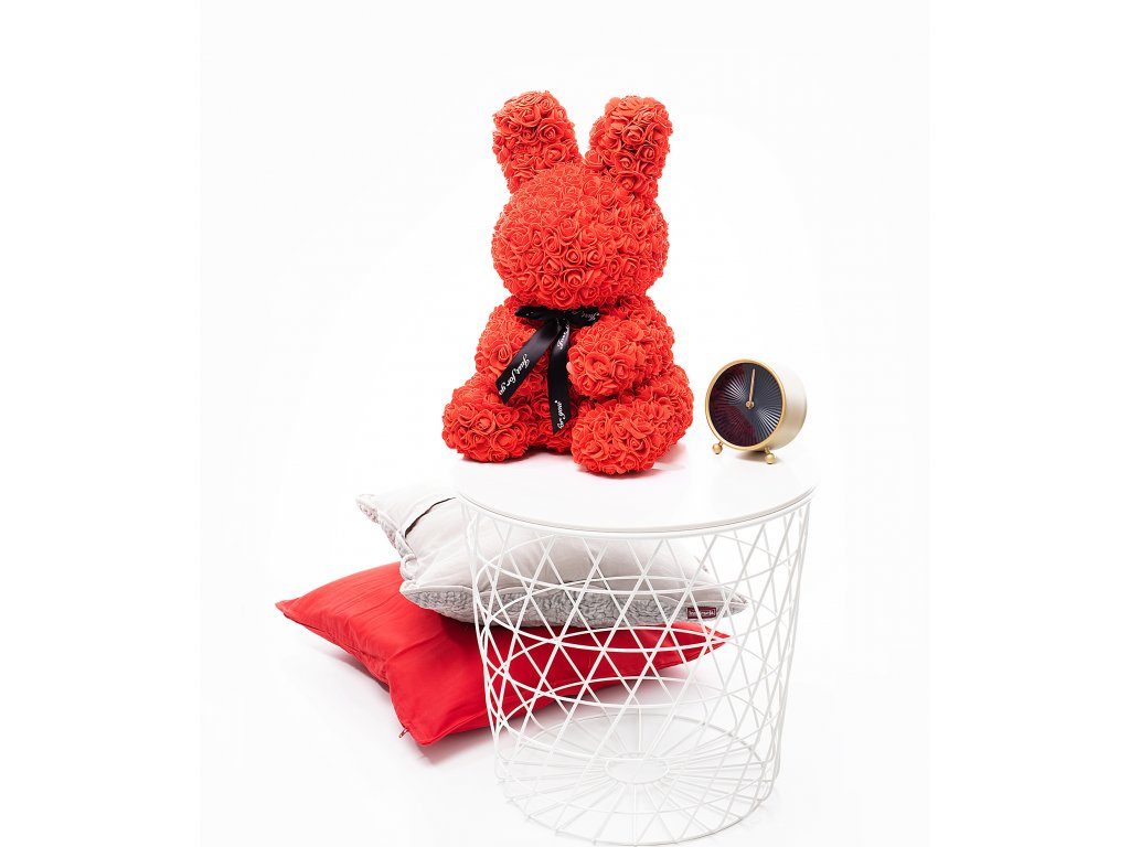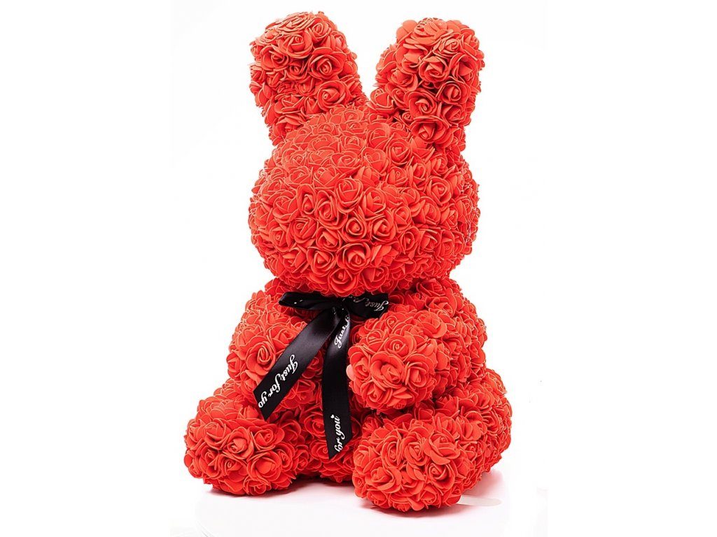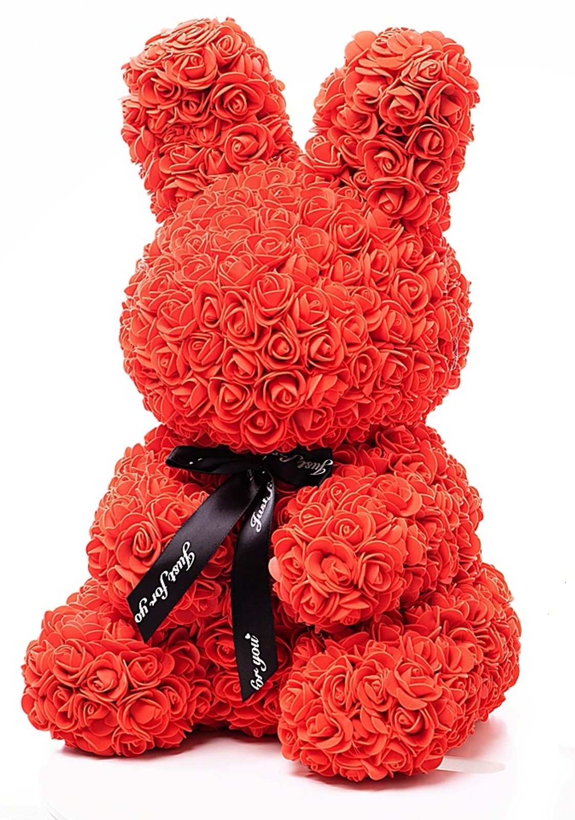 Nádherný zajíček z růží Rose Bunny s výškou 50 cm. Má jedinečný design s propracovanými detaily, je vyrobený z 3D umělých růží a nepotřebuje žádnou údržbu. Je ideálním dárkem pro každou příležitost. Medvídek se vyznačuje velmi malou hmotností.