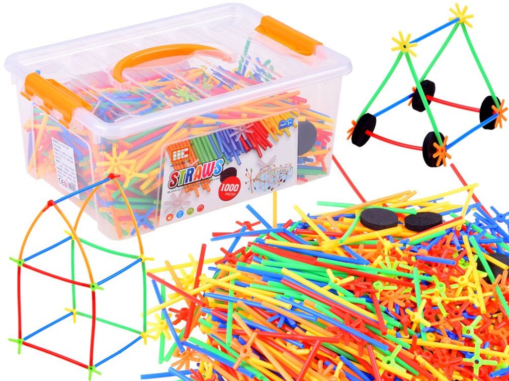 Barevná kreativní stavebnice Straws Blocks je ideální hračkou pro všechny malé konstruktéry. Skládá se z celkem 1000 komponentů. Pomocí kratších a delších slámek a spojovacích dílů lze vytvářet nekonečně mnoho druhů konstrukcí. Vše je vyrobeno z plastu v celkem pěti barvách. Pro snadné přenášení po konci hry je součástí stavebnice plastový box s úchytem. Hračka je určena pro děti od 3 let věku.