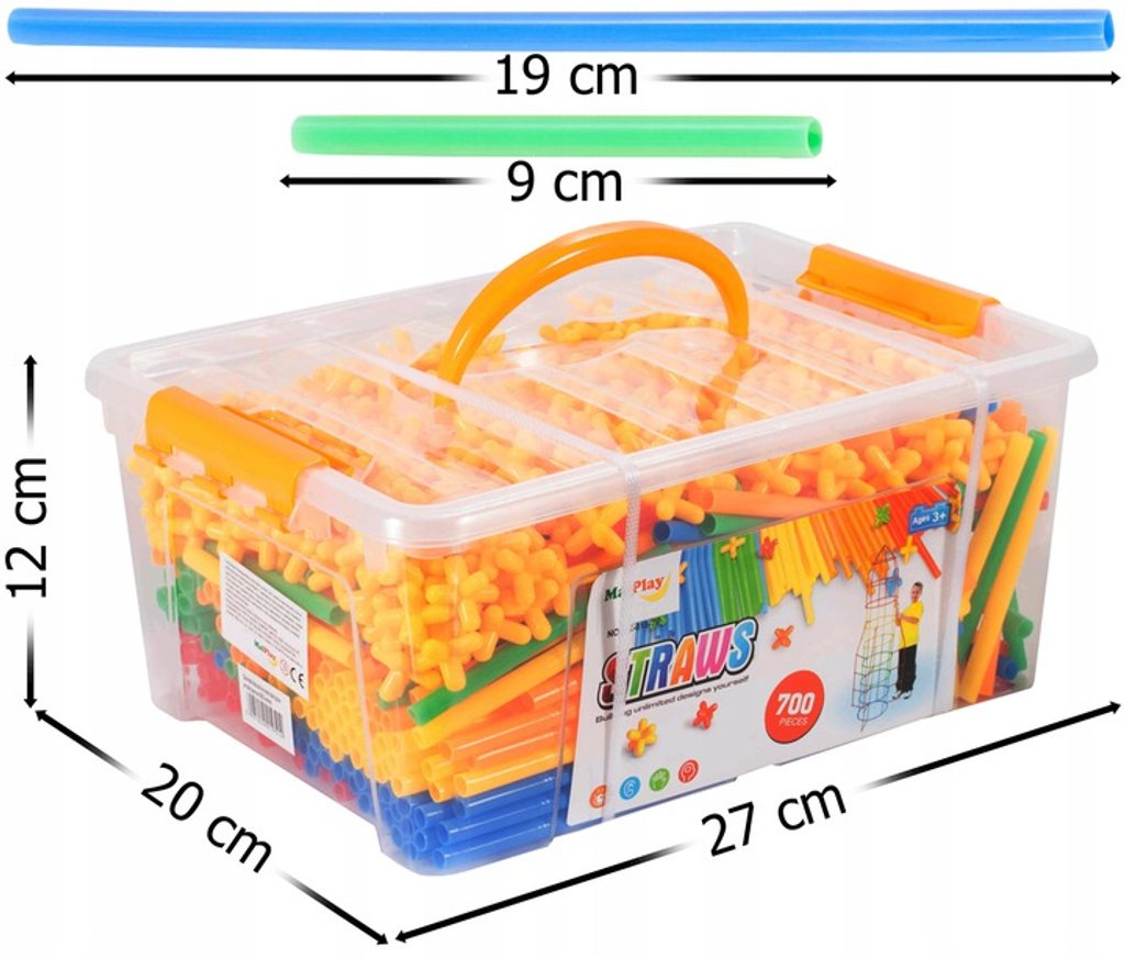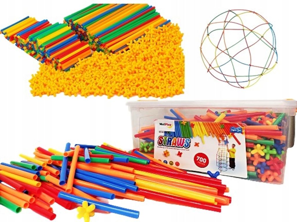 Barevná kreativní stavebnice Straws Blocks je ideální hračkou pro všechny malé konstruktéry. Skládá se z celkem 700 komponentů. Pomocí kratších a delších slámek a spojovacích dílů lze vytvářet nekonečně mnoho druhů konstrukcí jako jsou loďe, letadla, hrady, domy auta a další. Vše je vyrobeno z plastu v celkem pěti barvách. Pro snadné přenášení po konci hry je součástí stavebnice plastový box s úchytem. Hračka je určena pro děti od 3 let věku.