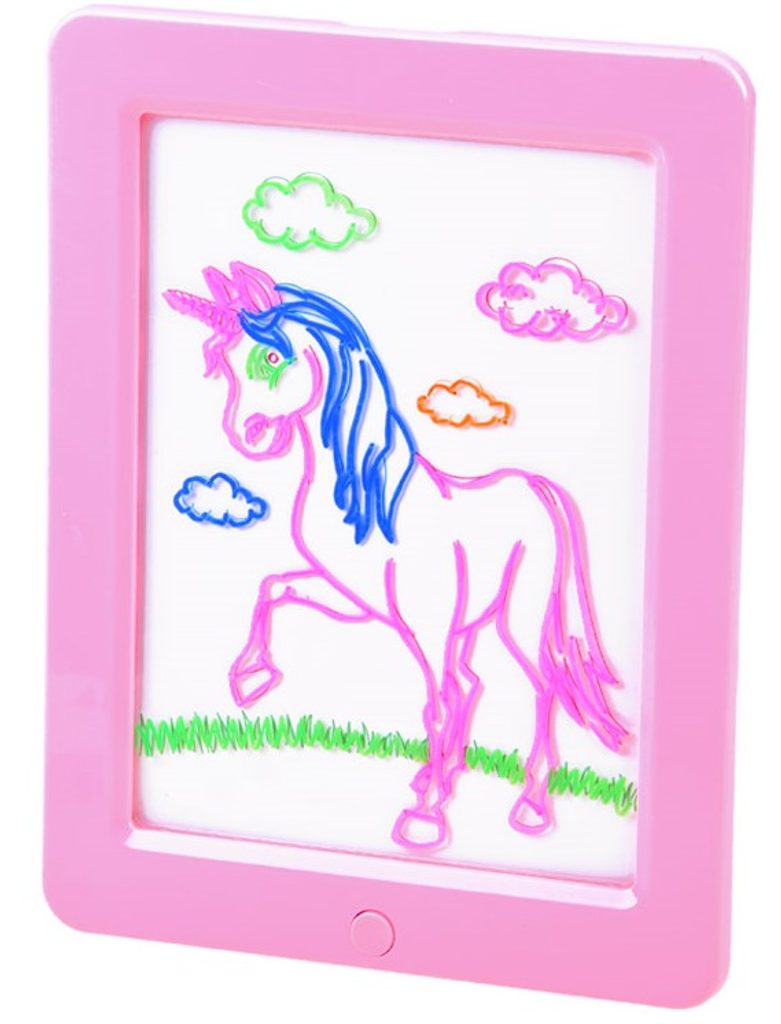 Tuto osvětlenou tabuli Glow Drawing pro tvorbu neonových kreseb si oblíbí každý malý umělec. Kreativní tabulka má možnost osvětlení. Vše, co musí dítě udělat, je zapojit svou fantazii a použít přiložené neonové barevné fixy k vytvoření vlastních kreseb a obrázků. Sada obsahuje pomocné obrázky a nákresy, díky kterým bude snazší kreslit vlastní umělecká díla. Dítě bude moci pomocí přiložených 3D brýlí vidět své obrázky v trojrozměrných rozměrech, což přinese ještě více radosti. Součástí sady je i hadřík, díky kterému vytvoříme neomezené množství kreseb. Tabulku lze využít i jako obraz, který se bude hodit jako dekorace do pokoje nebo i jako lampička. Hračka je určena pro děti od 36 měsíců věku.