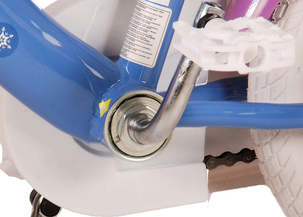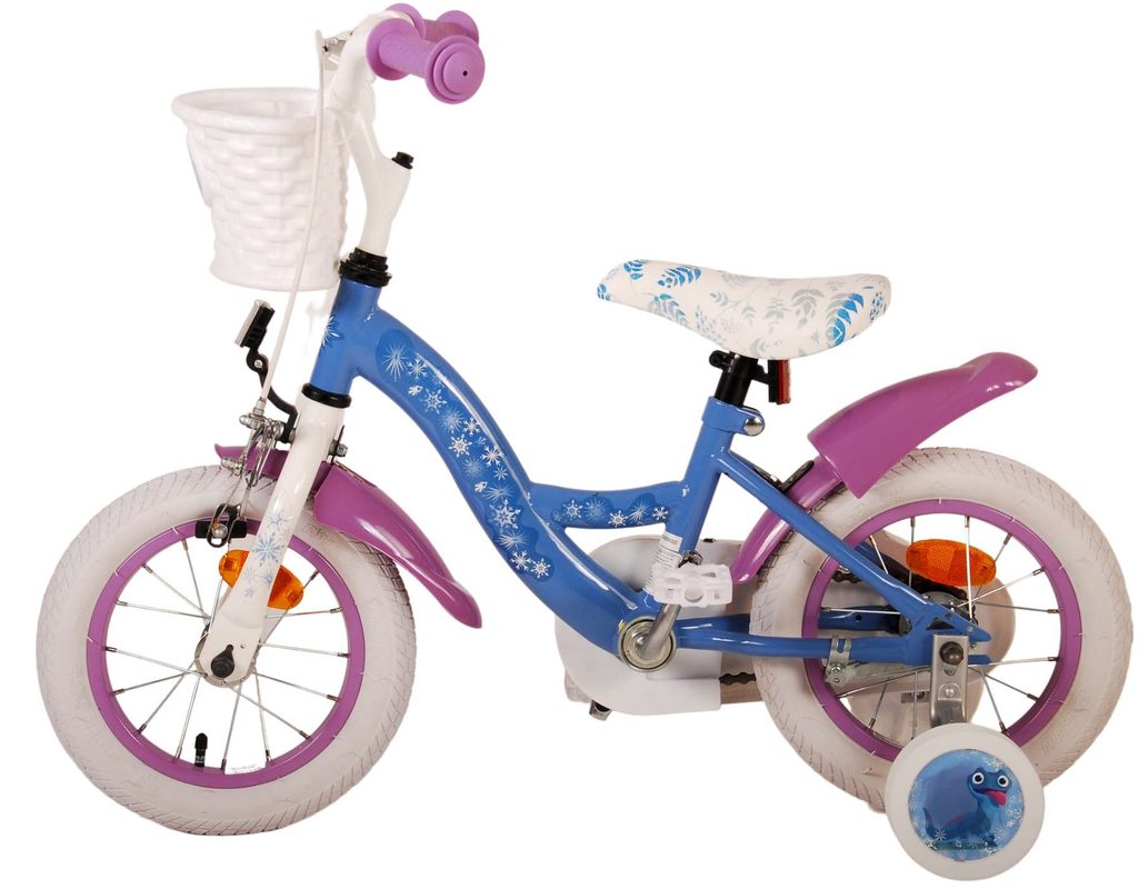 Originální dětské kolo od holandského výrobce Volare Frozen II (licence Disney) s velikostí ráfků 12 palců je určeno pro nejmenší děti ve věku od 3 do 4,5 let s výškou do 95 cm. Kolo je opatřeno demontovatelnými balančními kolečky, dítě se tedy bude cítit hned od první jízdy bezpečně a stabilně. Kolo je vybaveno 2 druhy brzd. Brždění probíhá buď protisměrnou zadní brzdou "torpédem",která možnuje brzdit zpětným záběrem pedálů nebo lze použít přední pákovou brzdu. Proti nechtěnému namotání nohavice nebo tkaničky do řetězu má kolo kryt s obrázky, který zakrývá celý řetěz. Sedadlo i řídítka jsou výškově nastavitelné. V zadní části je umístěný nosič na panenky a v přední části je košík na hračky.
