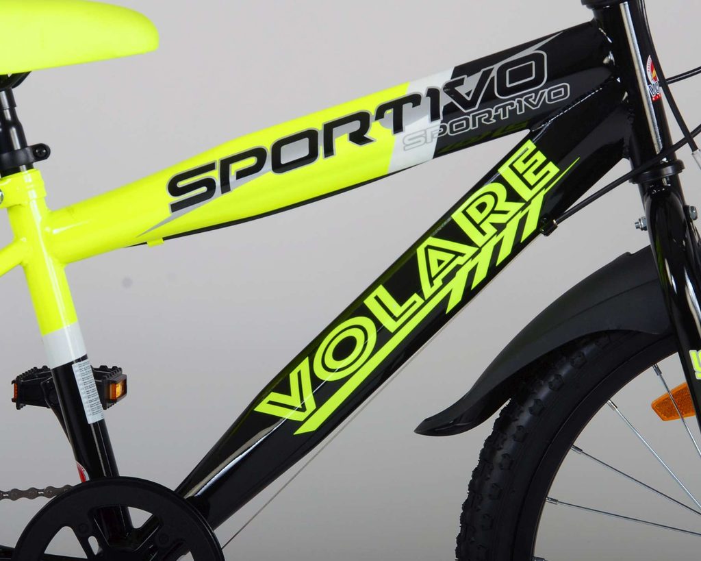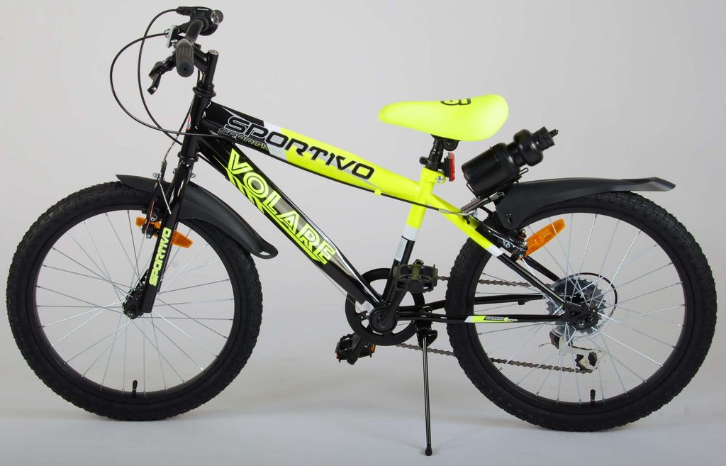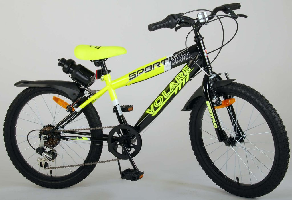Originální dětské kolo od holandského výrobce Volare Sportivo Yellow s širokými pneumatikami a velikostí ráfků 20 palců je určeno pro děti ve věku od 5 do 9 let s výškou od 120 do 155 cm. Kolo je zaměřeno na nejmladší a díky snadné obsluze a barevnému modernímu designu je každý okamžik strávený na kole skvělým zážitkem. Kolo je vybaveno přední i zadní čelisťovou brzdou typu V-Brake Sedadlo i řídítka jsou výškově nastavitelné. Za sedadlem je umístěný nosič s lahví na pití.