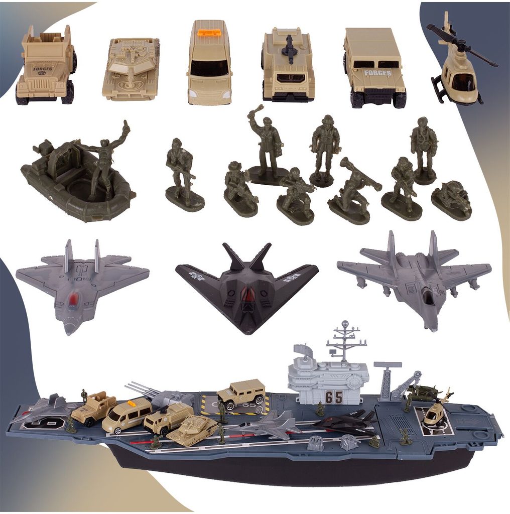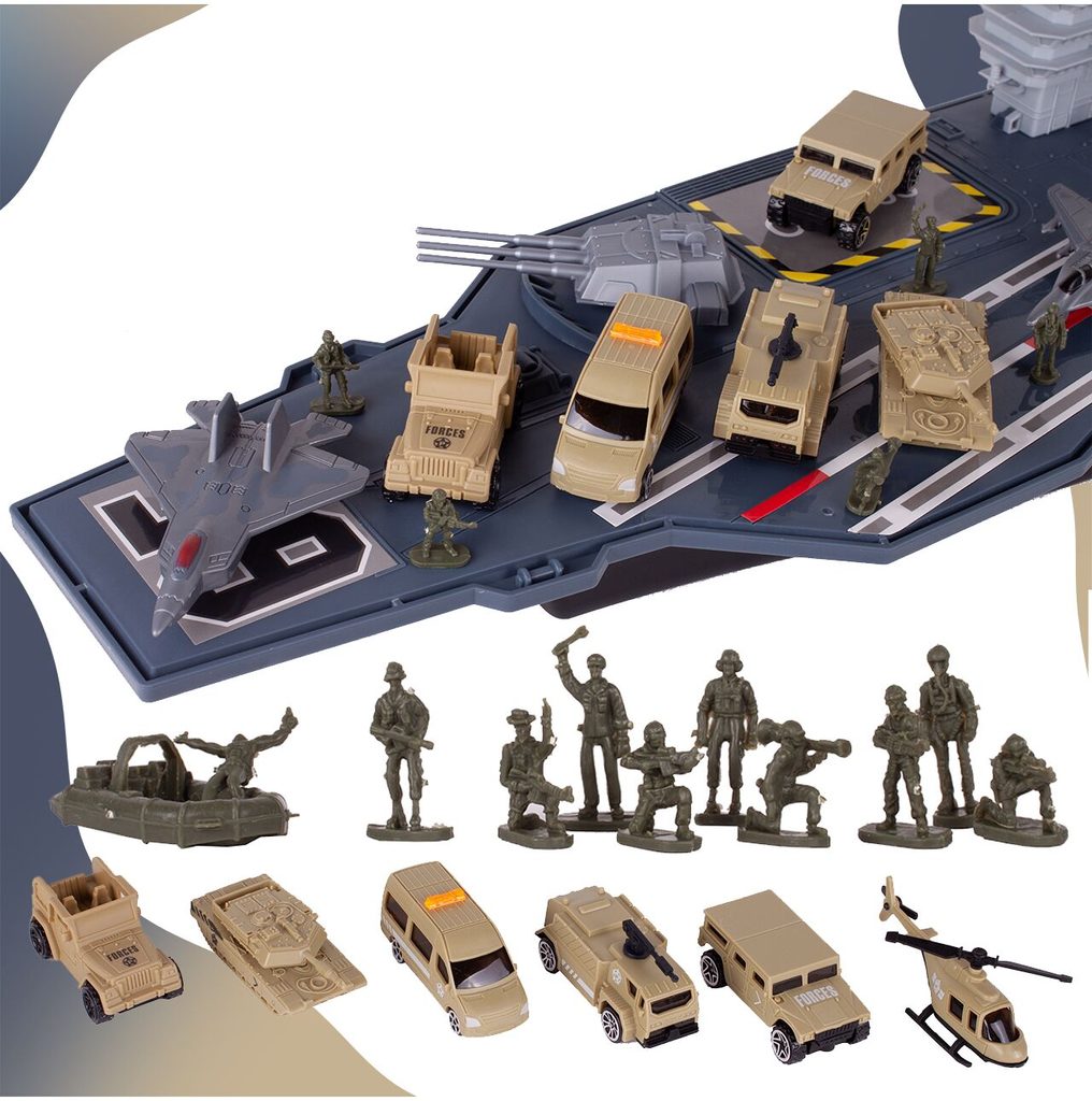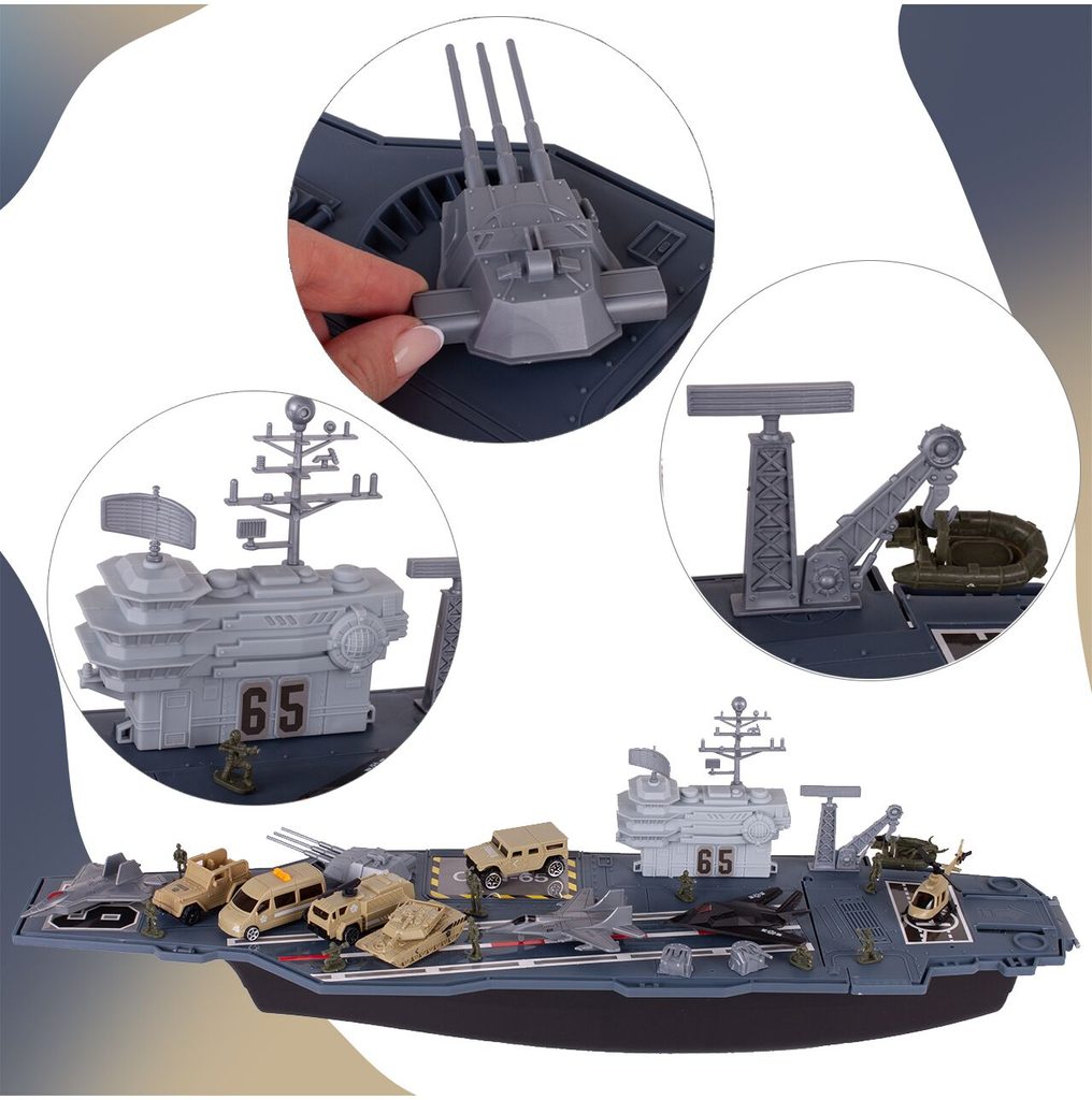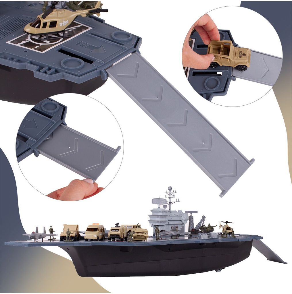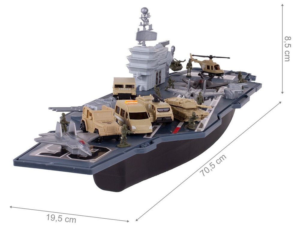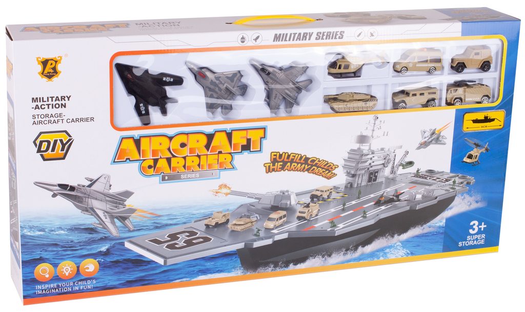Velká sada Kids Carrier je určena pro každého malého fanouška vojáků, letadel a letectví. Sada obsahuje velké množství příslušenství. Kromě velké letadlové lodě s úložným prostorem a pohyblivými elementy zde najdete různé druhy vojenských autíček, letadla, vojáčka, helikoptéru a tank. Hračka je určena pro děti od 3 let věku.