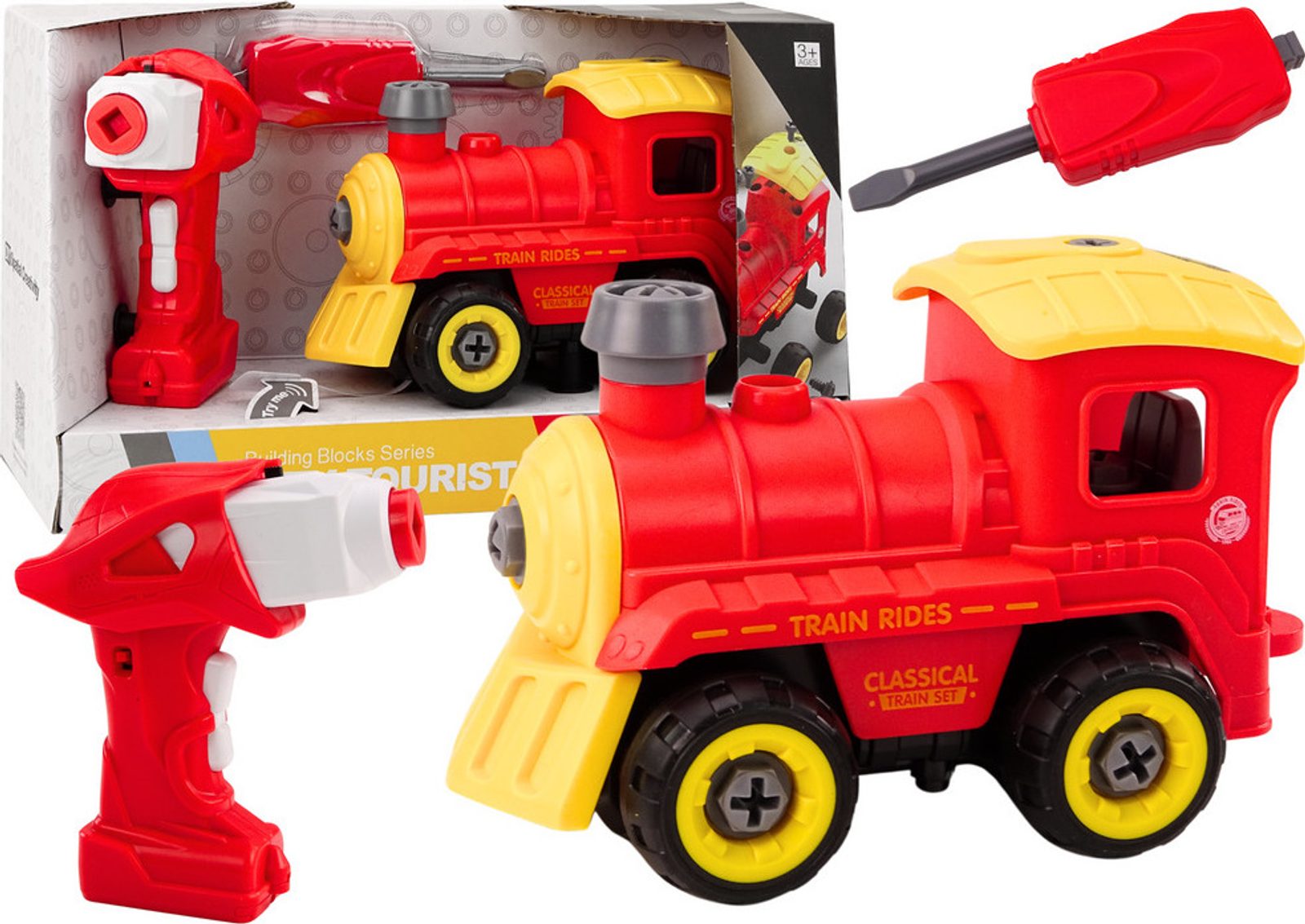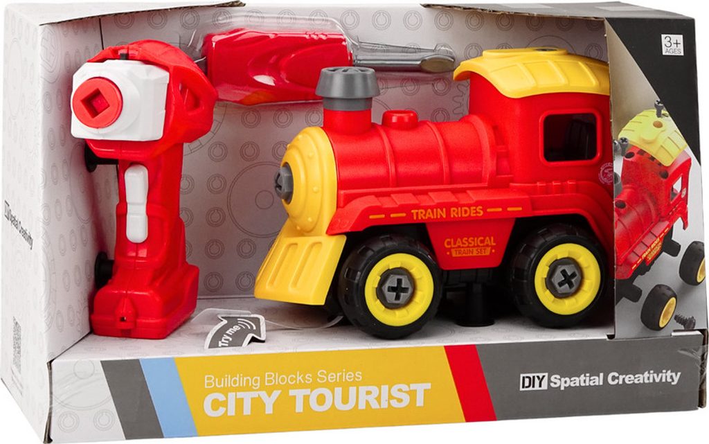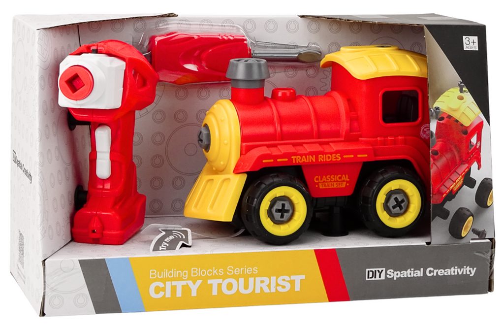 Šroubovací lokomotiva na baterie City Tourist je ideální hračkou pro rozvoj manuální zručnosti a logického myšlení. Lze ji kompletně rozebrat na jednotlivé díly a šrouby a poté zase složit pomocí přiloženého aku šroubováku se dvěma nástavci nebo ručního šroubováku. Po vložení modulu do spodní části lokomotiva jezdí dopředu a dozadu a tělo aku šroubováku slouží jako dálkový ovladač. Je vybavena zvuky motoru a klaksonem. Zvuk vydává také aku šroubovák. Zábava je tak nekonečná. Hračka je určena pro děti od 36 měsíců věku.