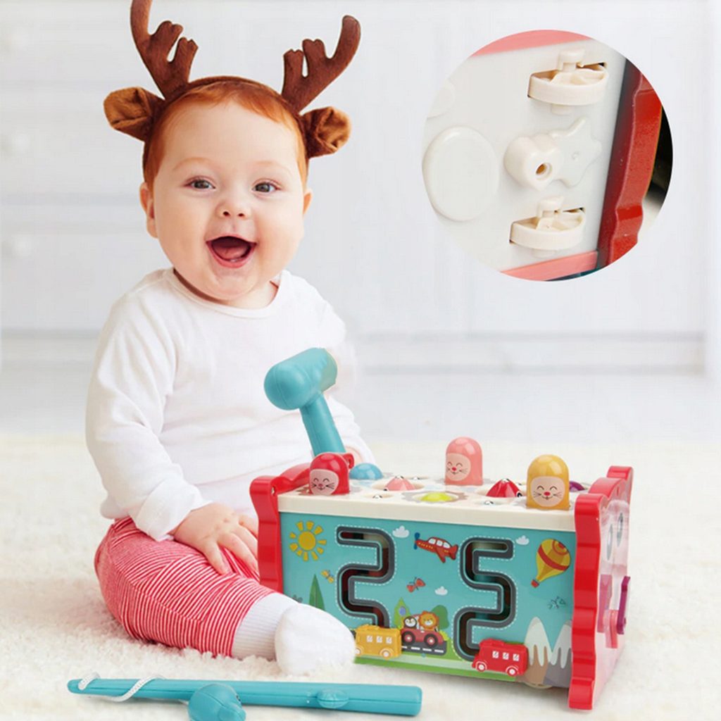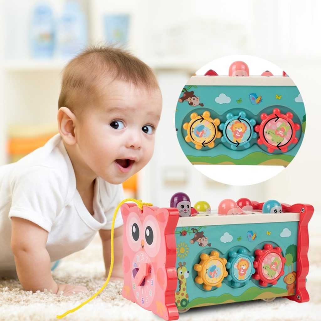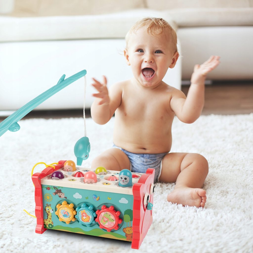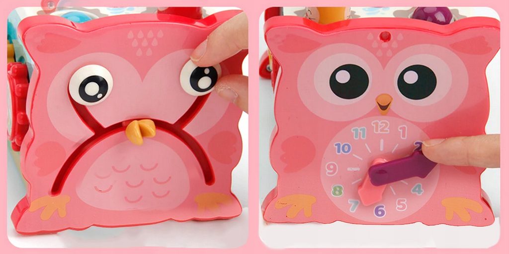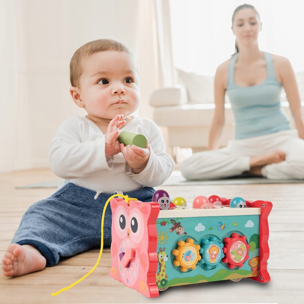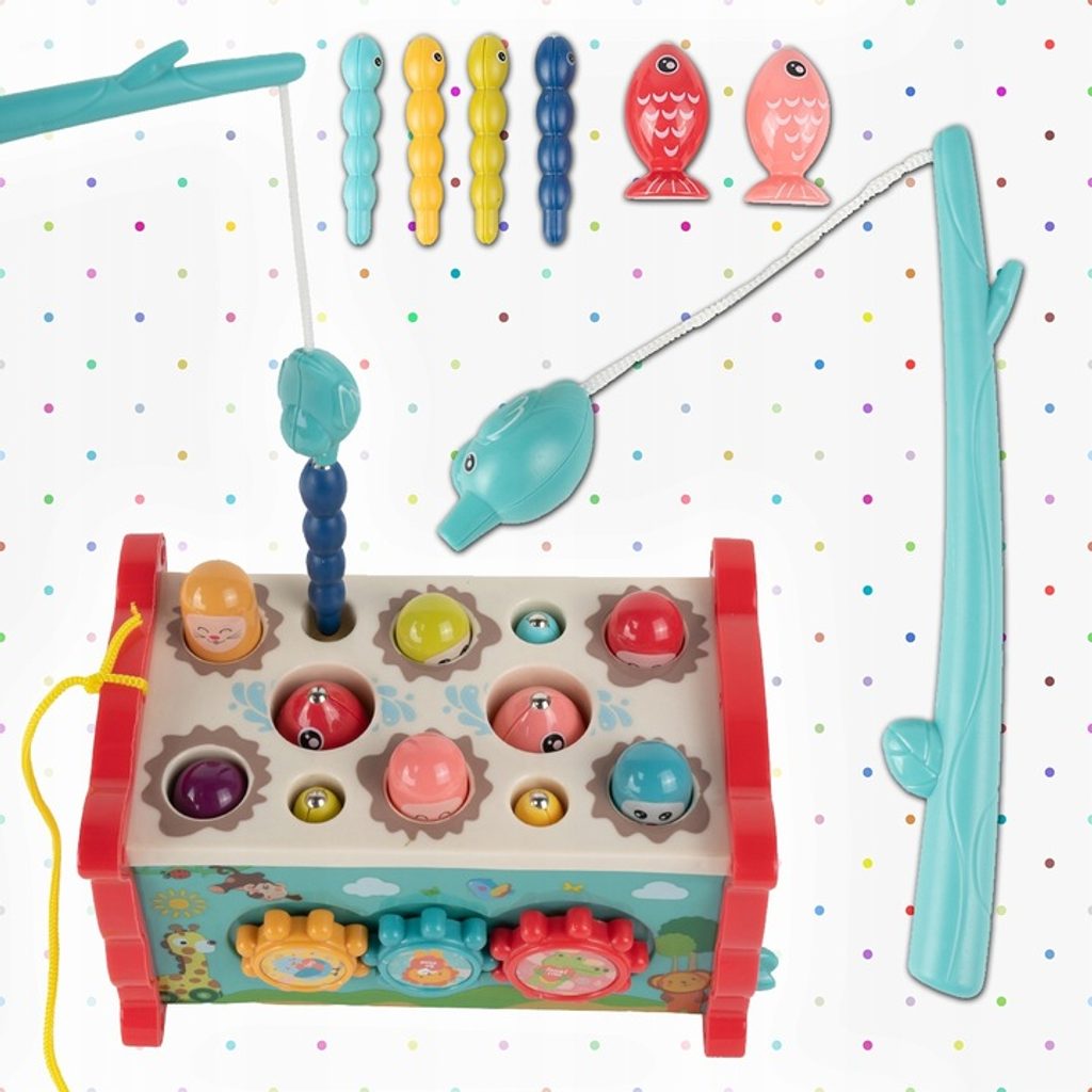 Magická edukační kostka 8v1 je ideální hračkou pro rozvoj koordinace oko-ruka, manuální zručnosti, motoriky a rozpoznávání barev. V horní části je umístěno zatloukání krtků, kdy zatlučením jednoho se další vysune, lovení rybiček a červíků. Na dalších stranách je bludiště, ozubená kolečka, hodiny a sovička s pohyblivými elementy. V předu je šňůrka pro tažení hračky. Hračka je určena pro děti od 18 měsíců věku.
