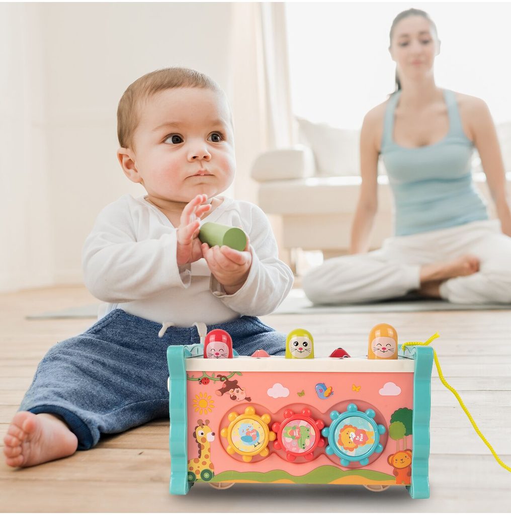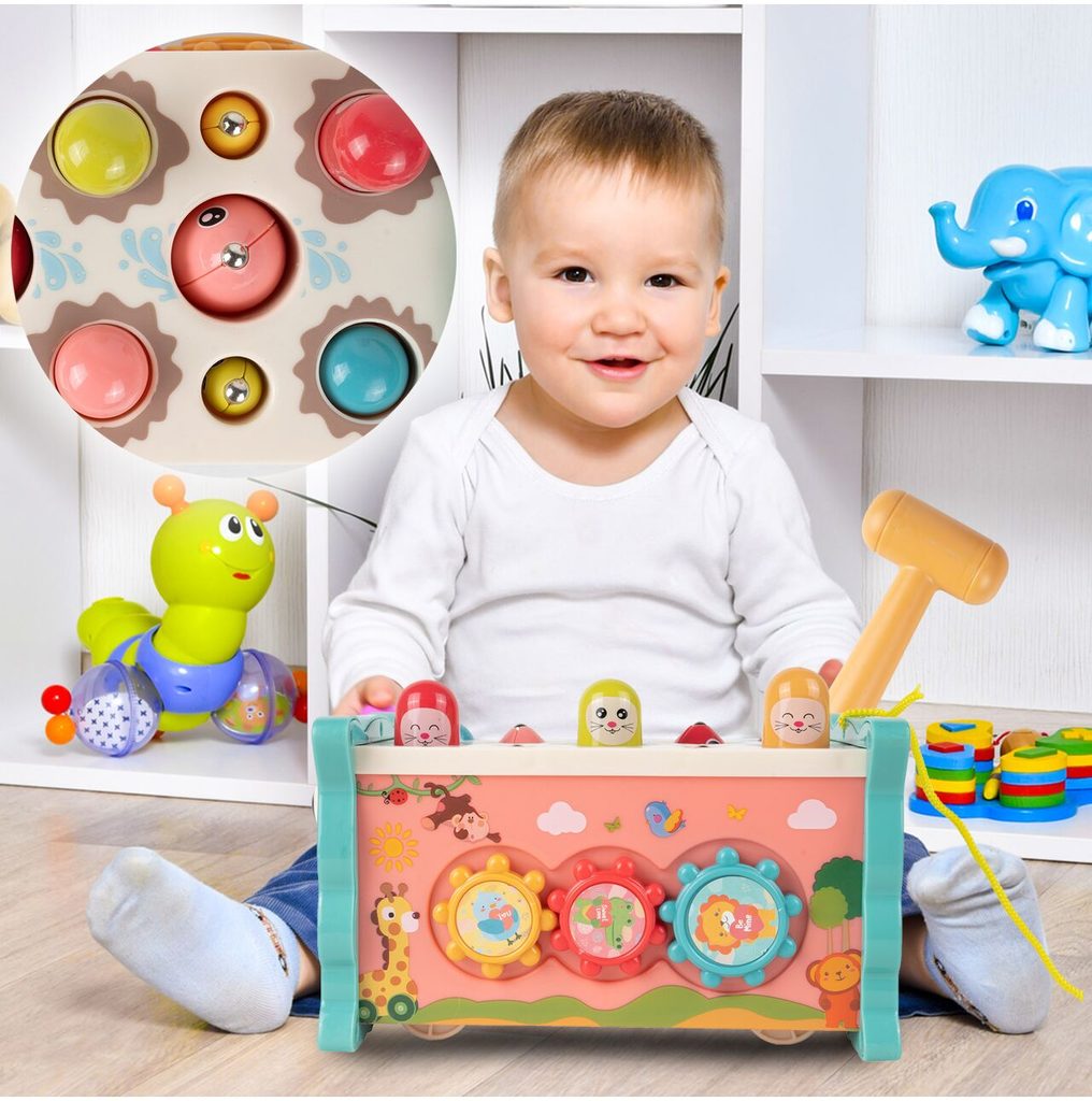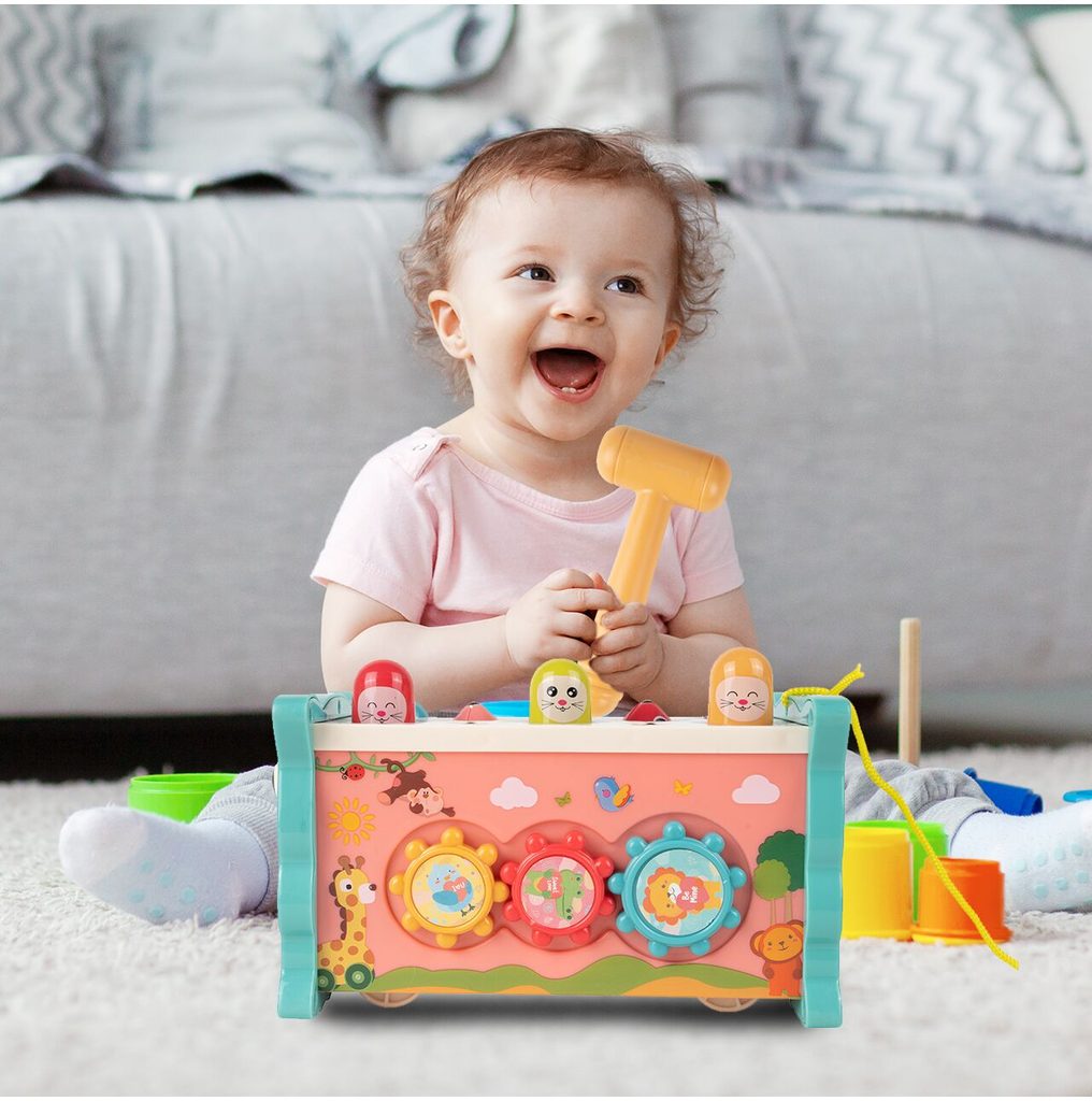 Magická edukační kostka 8v1 je ideální hračkou pro rozvoj koordinace oko-ruka, manuální zručnosti, motoriky a rozpoznávání barev. V horní části je umístěno zatloukání krtků, kdy zatlučením jednoho se další vysune, lovení rybiček a červíků. Na dalších stranách je bludiště, ozubená kolečka, hodiny a sovička s pohyblivými elementy. V předu je šňůrka pro tažení hračky. Hračka je určena pro děti od 18 měsíců věku.