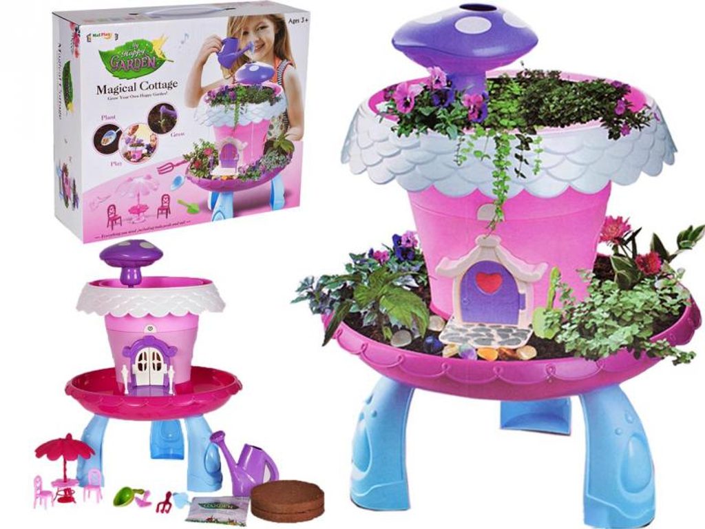 Magická zahrádka Magical Cottage se světlem a zvukem je snem každého malého zahradníka a umožní mu mít celoroční zahradu ve svém pokoji. Tato hračka podněcuje představivost, ale také učí zodpovědnost, péči a empatii. Dítě se naučí sadit, zalévat, pěstovat a zároveň sledovat jak rostlinky postupně rostou. Díky dodatečným prvkům v sadě si zde můžou hrát zvířátka a panenky a navíc krásný domeček hraje a svítí. Zahrádka bude perfektní hračka jak pro chlapce, tak pro dívku.