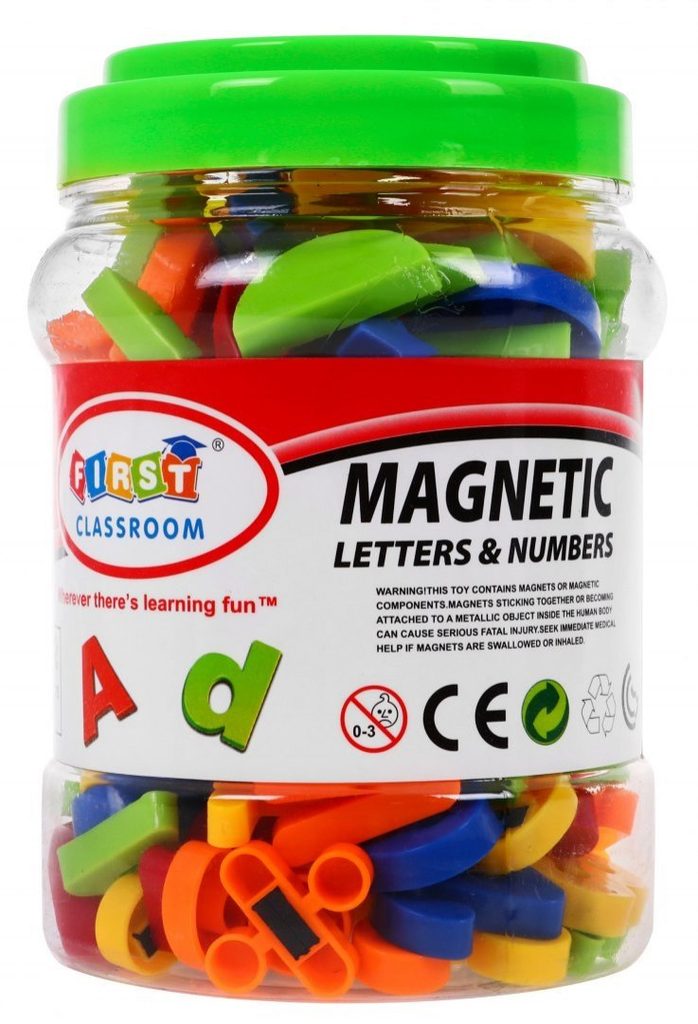 Sada magnetických písmenek, číslic a matematických symbolů First Classroom 128 kusů je určena pro děti od 36 měsíců věku. Slouží pro první vzdělávání, rozvíjí dětskou kreativitu, logické myšlení a rozpoznávání barev a tvarů. Pomocí magnetu je lze umístit na jakoukoli magnetickou tabuli, lednici nebo položit na vodorovnou plochu.