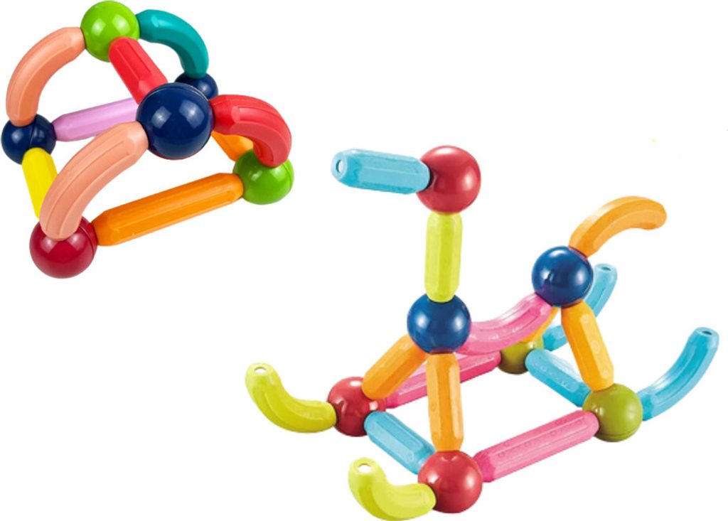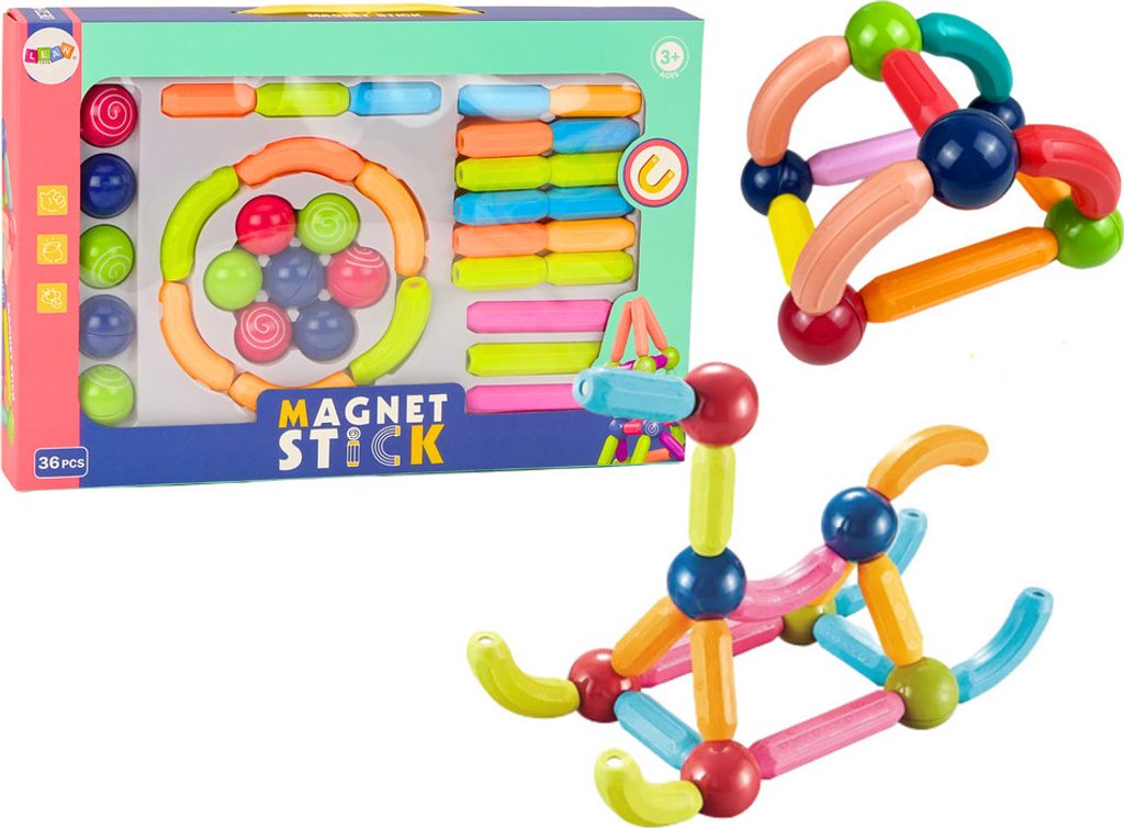 Stavebnice Magnet Sticks je ideální hračkou pro všechny malé konstruktéry. Skládá se z celkem 36 součástí. Obsahuje kuličky, rovné a zakřivené součásti. Všechny součásti se velmi snadno propojují a lze z nich vytvořit velké množství obrazců a prostorových tvarů. Hračka je určena pro děti od 3 let věku