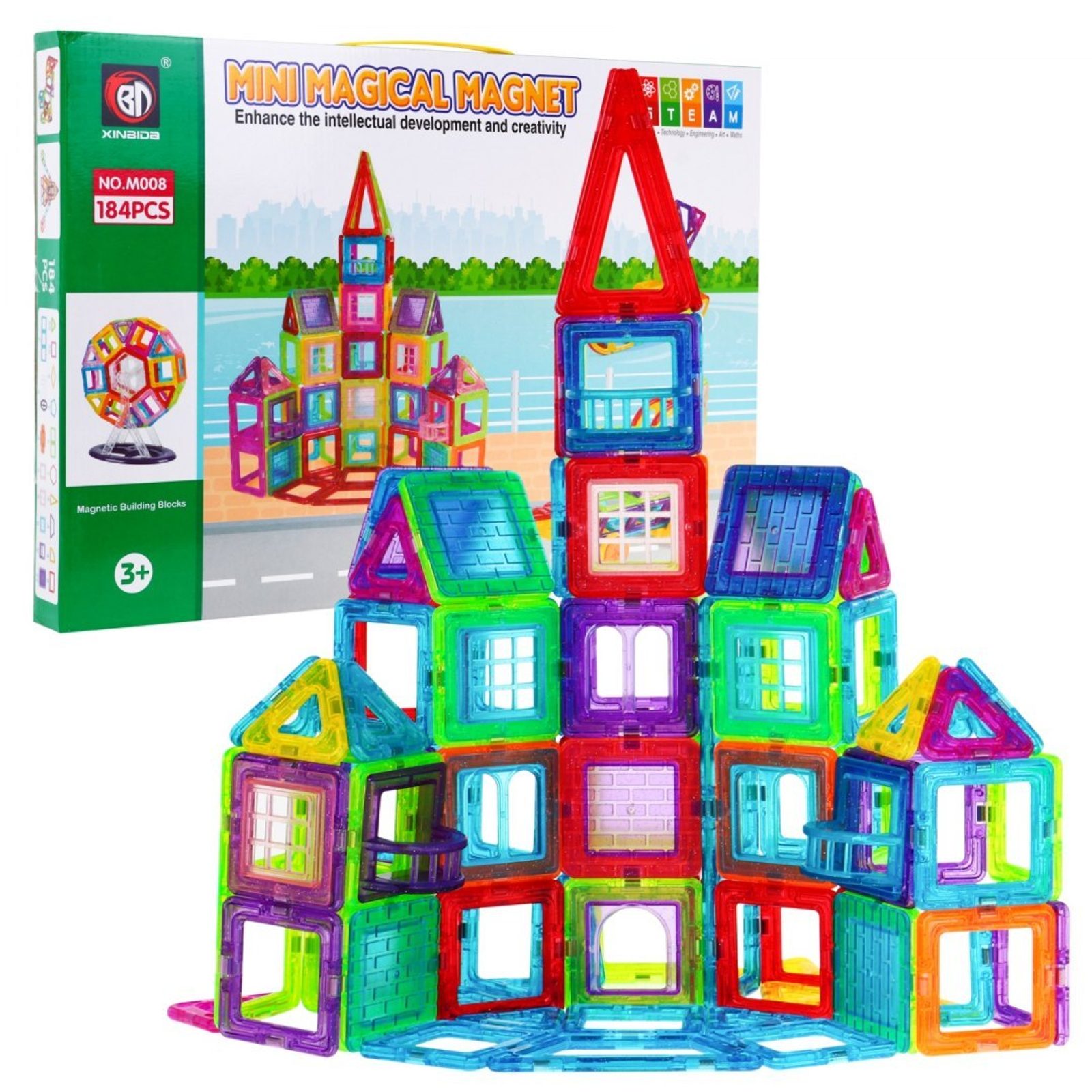 Barevná magnetická stavebnice Mini Magical Magnet je ideální hračkou pro všechny malé konstruktéry. Skládá se z celkem 128 součástí jako jsou čtverce, trojúhelníky, kosočtverce, obdélníky, šestiúhelníky, podvozky s kolečky, lichoběžníky a mnoho dalších komponentů. Všechny součásti se velmi snadno propojují a vytváří z nich různé konstrukce jako jsou stavby, domečky, vozítka, kolotoče a mnoho dalších. Hračka je určena pro děti od 3 let věku.