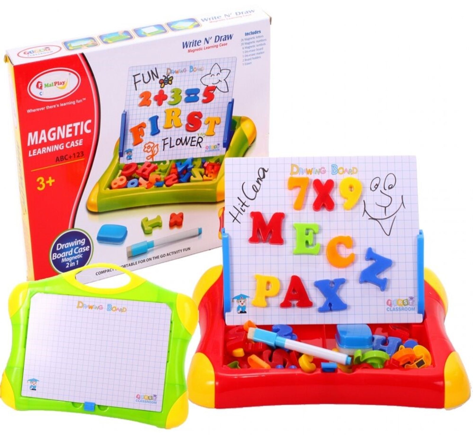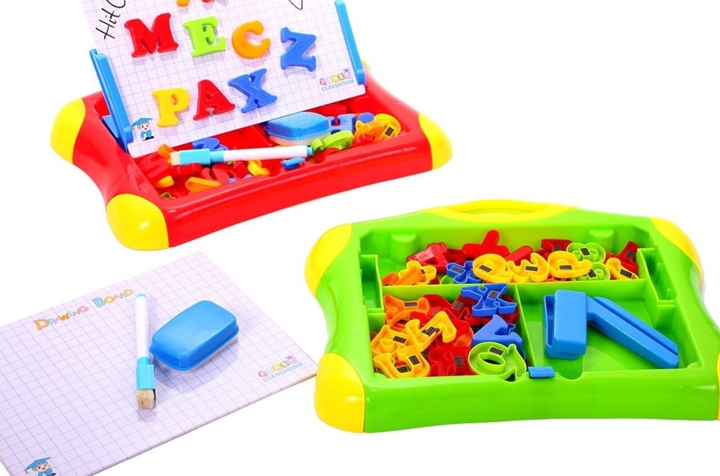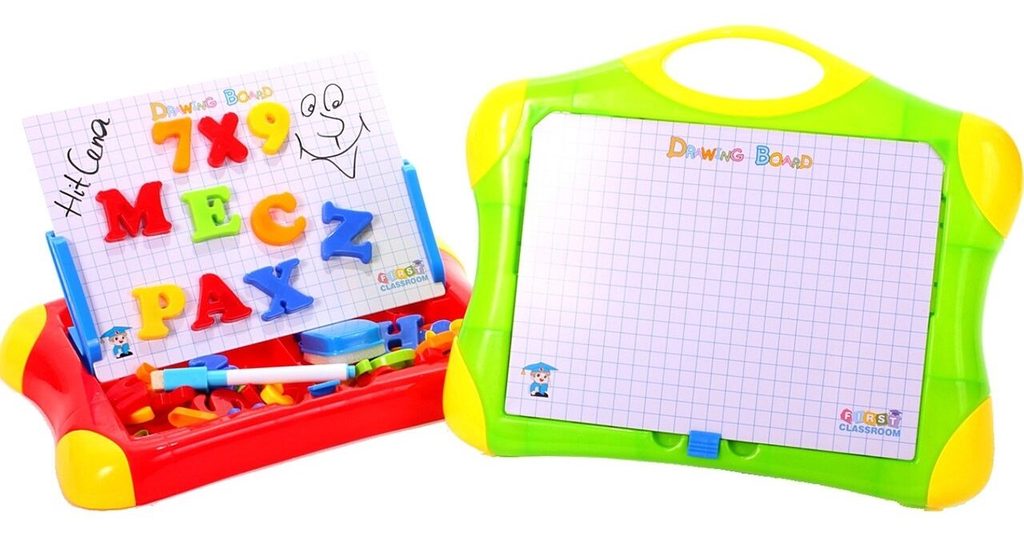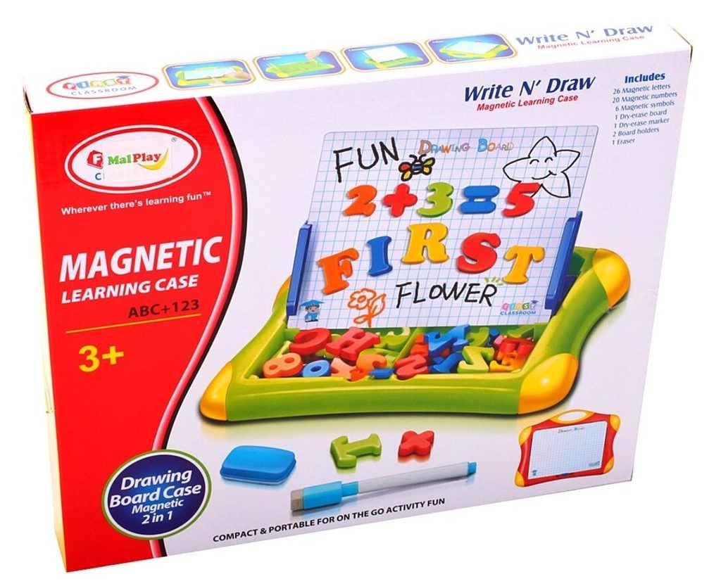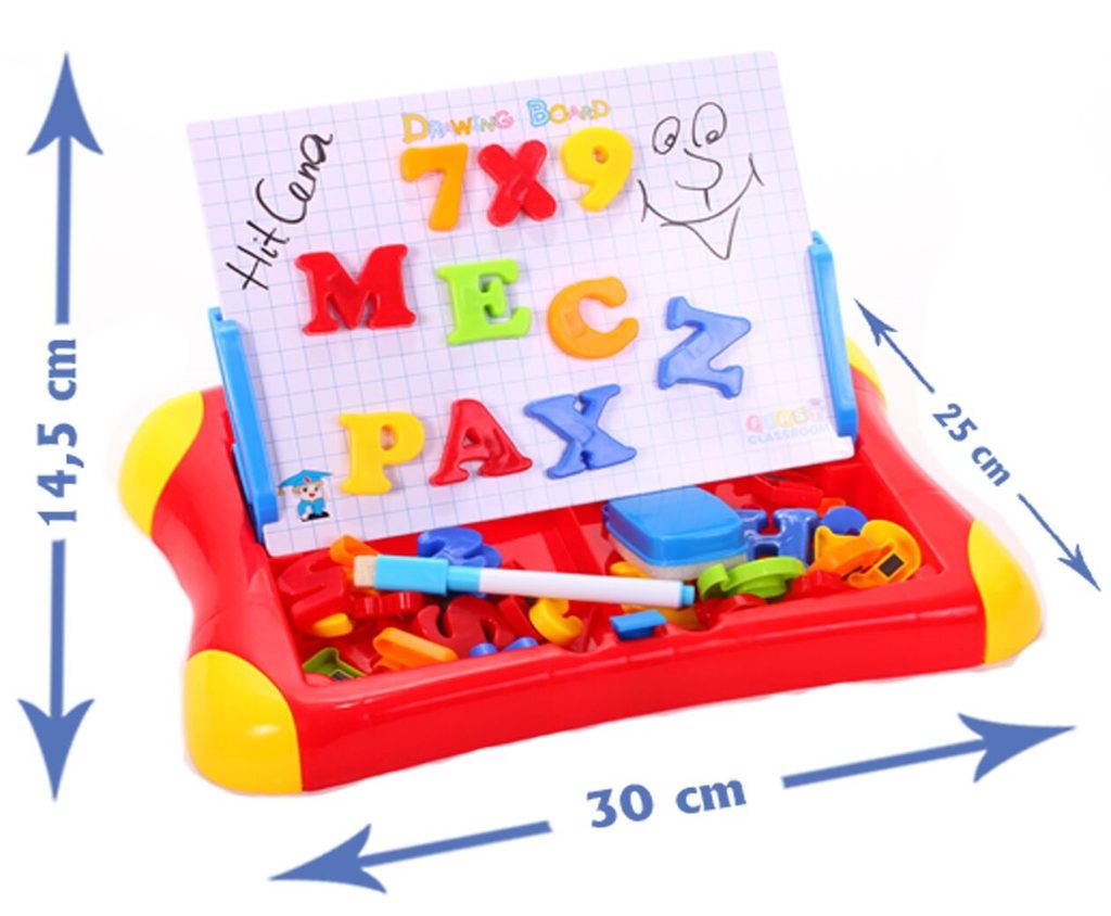 Multifunkční magnetická tabulka First Classroom učí dítě porozumět číslům a písmenům. Má dvě možnosti využití a to jako klasickou kreslící tabuli, kdy součástí balení je mazatelný fix a malinká houbička nebo ho lze využít jako magnetickou tabuli. V balení jsou různobarevné magnetky s vyobrazením čísel a písmenek. Hračka je určena pro děti od 3 let věku.