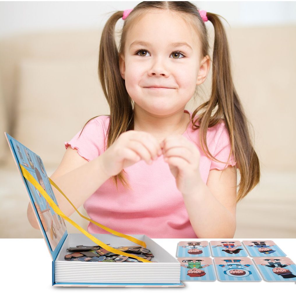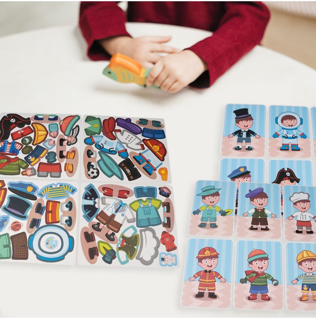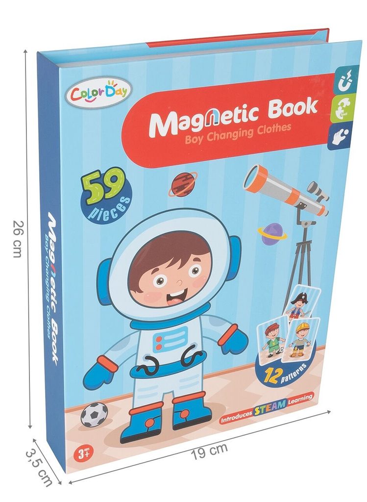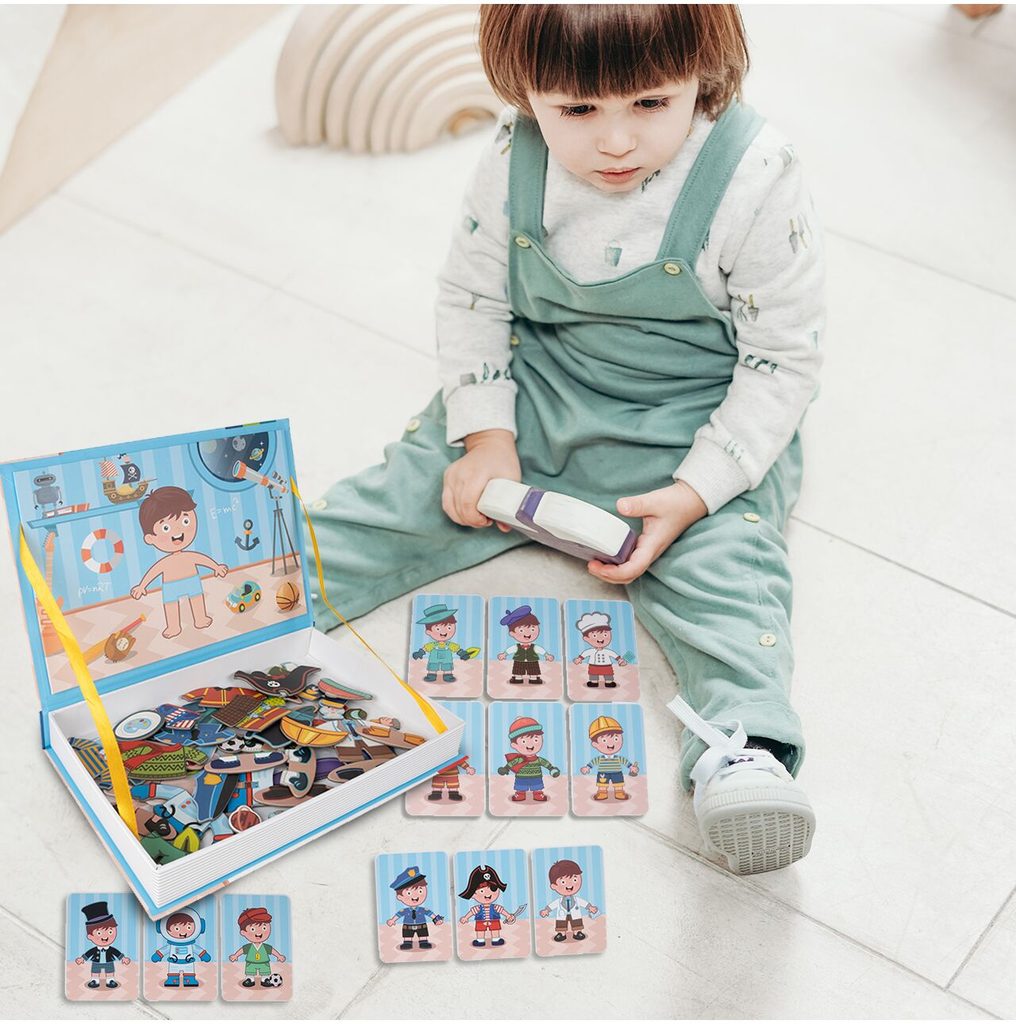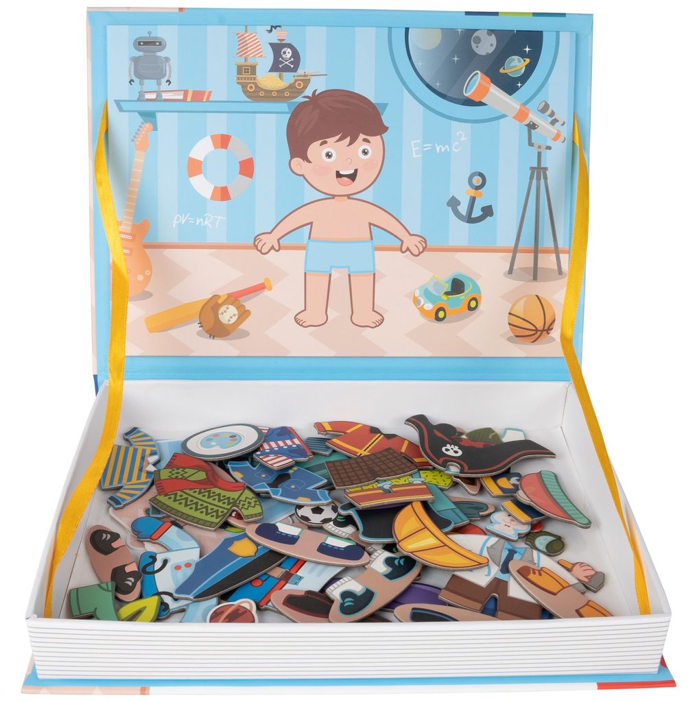 Tato sestava je plná zábavy a kreativity. Obsahuje různé prvky, které poskytnou hodiny zábavy a interakce. Hlavním prvkem je magnetická tabulka. Na ní můžete umístit a přesouvat magnetky podle svého uvážení. Pro vaši kreativitu jsou zde 6 oboustranných karet s 12 vyobrazenými stylizacemi oblečení. Tyto karty vám umožní vytvářet různé kombinace oblečení pro magnetky a přidat jim osobitý styl.Celkem je k dispozici 59 kusů magnetek, které obsahují různé prvky, jako jsou postavičky, předměty a doplňky. Tyto magnetky můžete umístit na tabulku a vytvořit vlastní příběhy a scény podle své fantazie.Tato sestava je skvělým způsobem, jak si užít zábavu a zároveň rozvíjet svou kreativitu. S magnetickou tabulkou, knížkou, kartami s oblečením a dostatkem magnetek budete mít nekonečné možnosti pro tvorbu a hru.