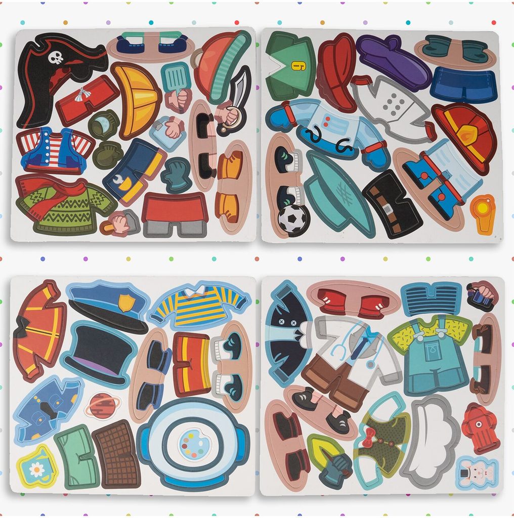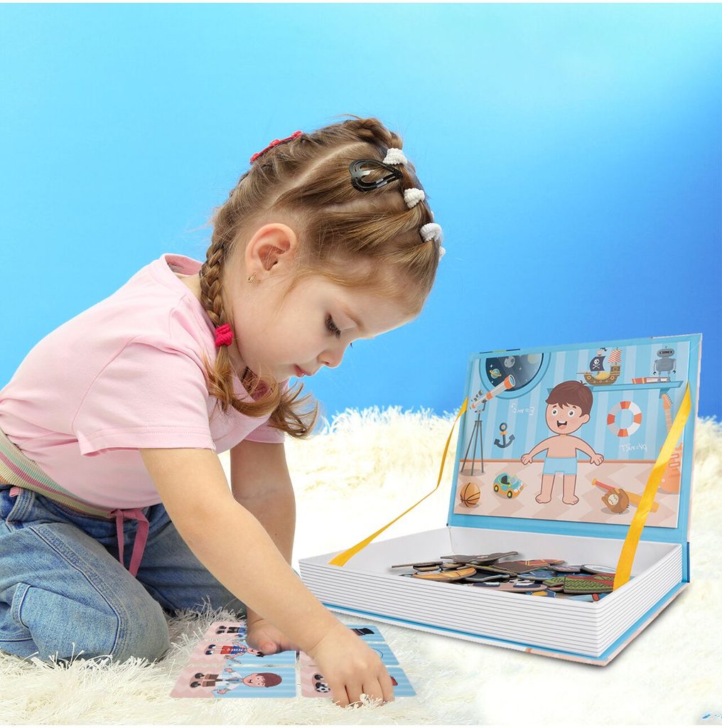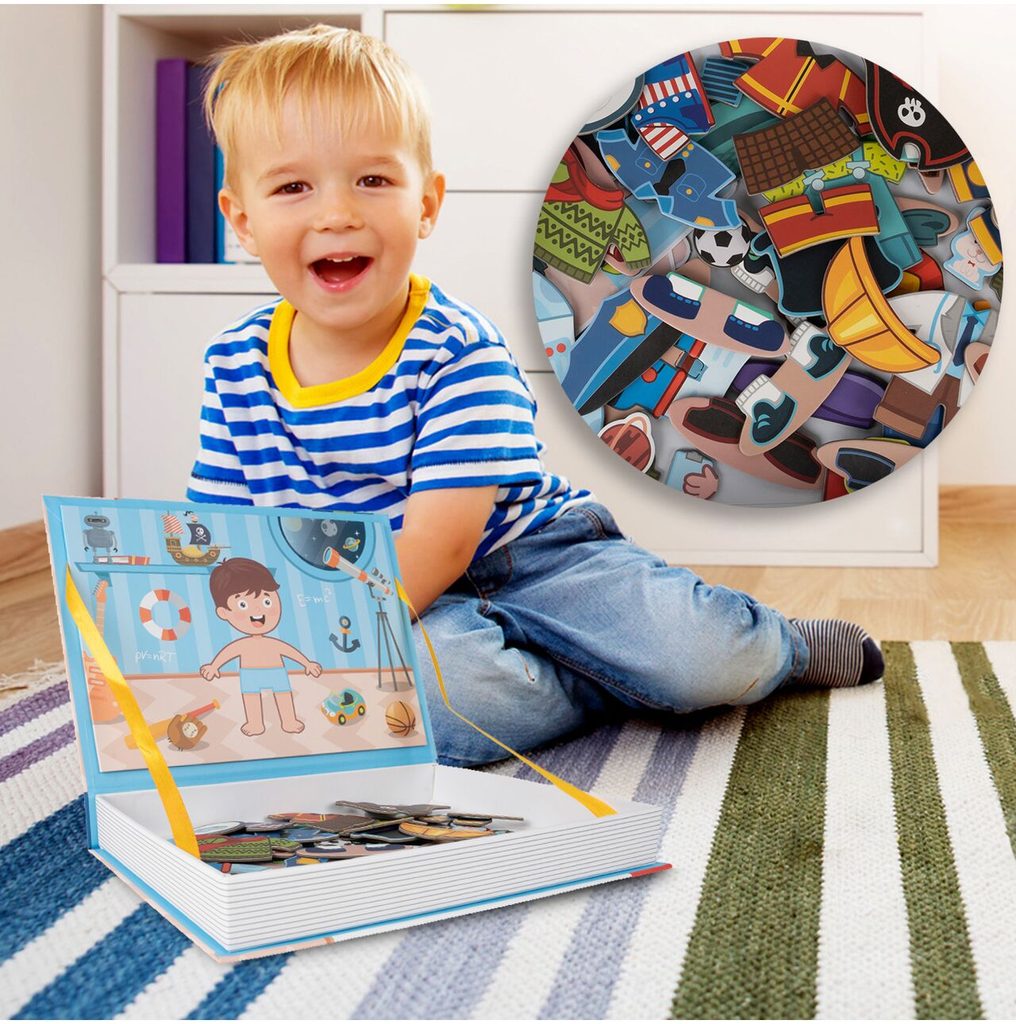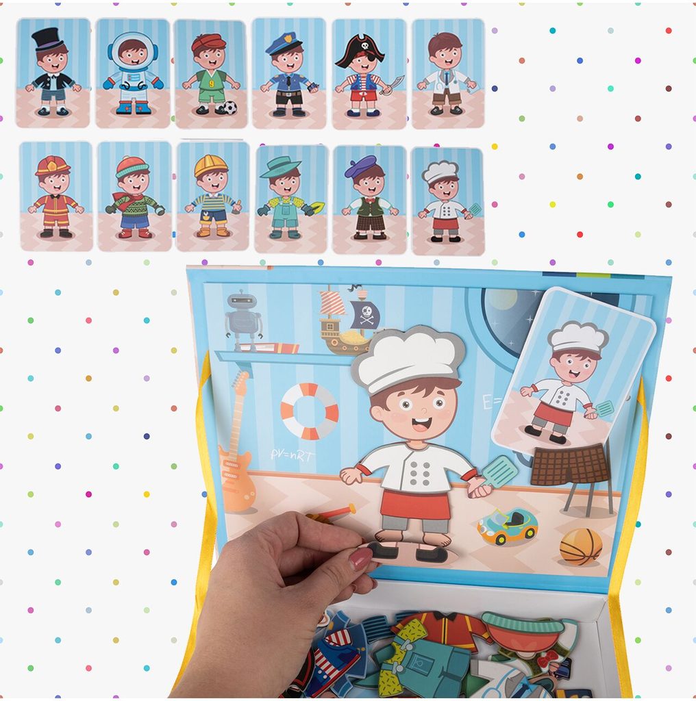 Tato sestava je plná zábavy a kreativity. Obsahuje různé prvky, které poskytnou hodiny zábavy a interakce. Hlavním prvkem je magnetická tabulka. Na ní můžete umístit a přesouvat magnetky podle svého uvážení. Pro vaši kreativitu jsou zde 6 oboustranných karet s 12 vyobrazenými stylizacemi oblečení. Tyto karty vám umožní vytvářet různé kombinace oblečení pro magnetky a přidat jim osobitý styl.Celkem je k dispozici 59 kusů magnetek, které obsahují různé prvky, jako jsou postavičky, předměty a doplňky. Tyto magnetky můžete umístit na tabulku a vytvořit vlastní příběhy a scény podle své fantazie.Tato sestava je skvělým způsobem, jak si užít zábavu a zároveň rozvíjet svou kreativitu. S magnetickou tabulkou, knížkou, kartami s oblečením a dostatkem magnetek budete mít nekonečné možnosti pro tvorbu a hru.