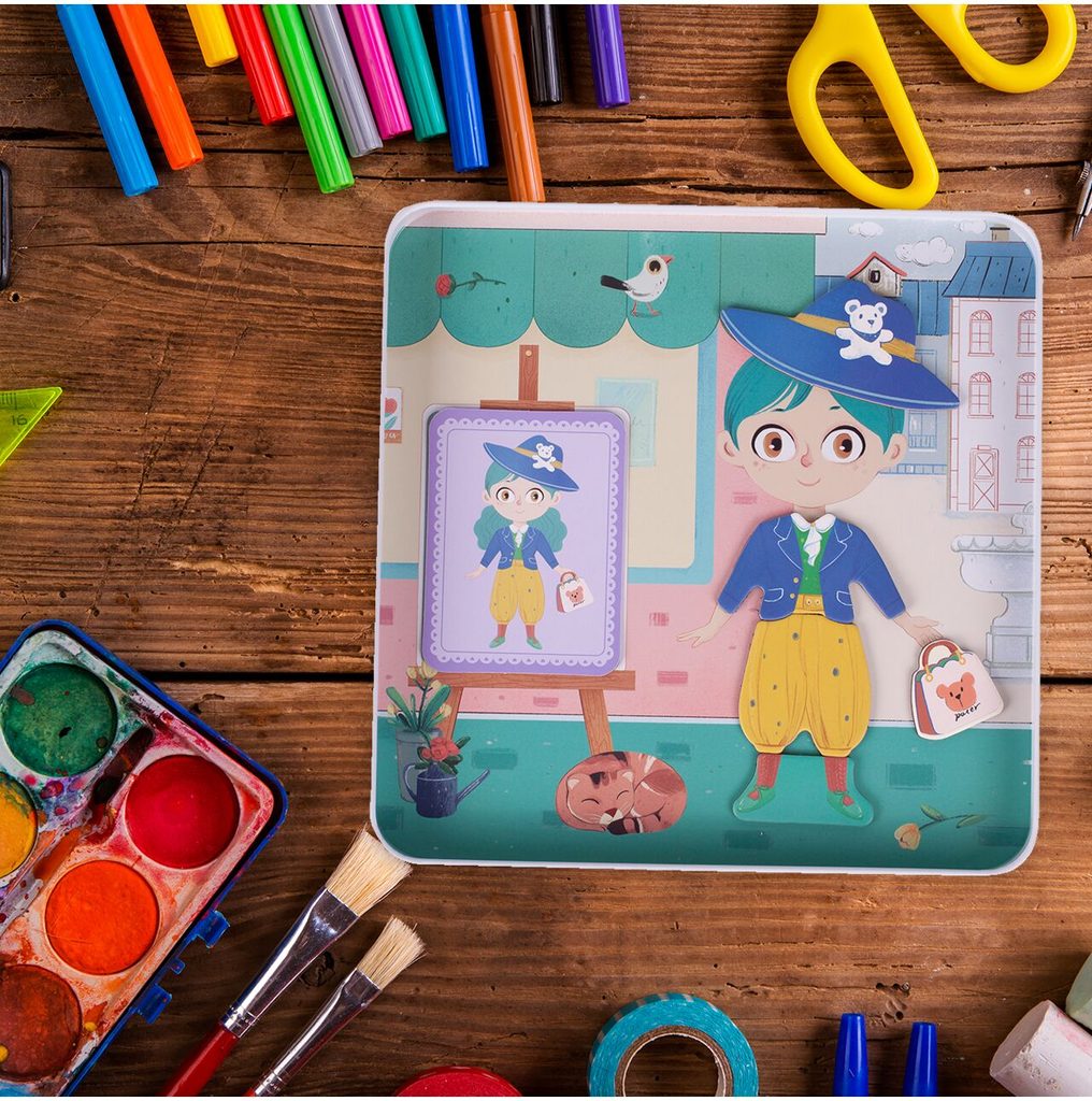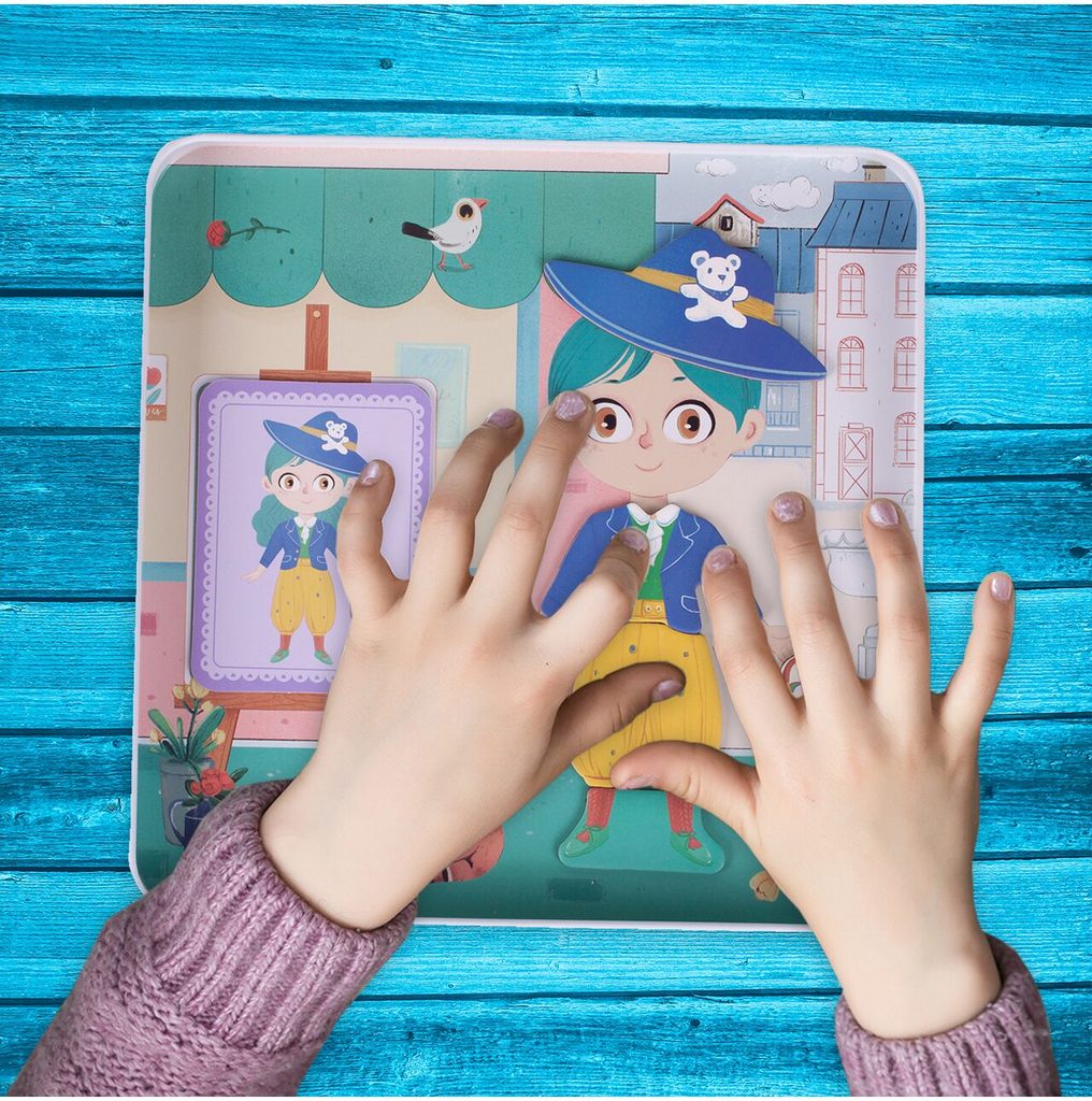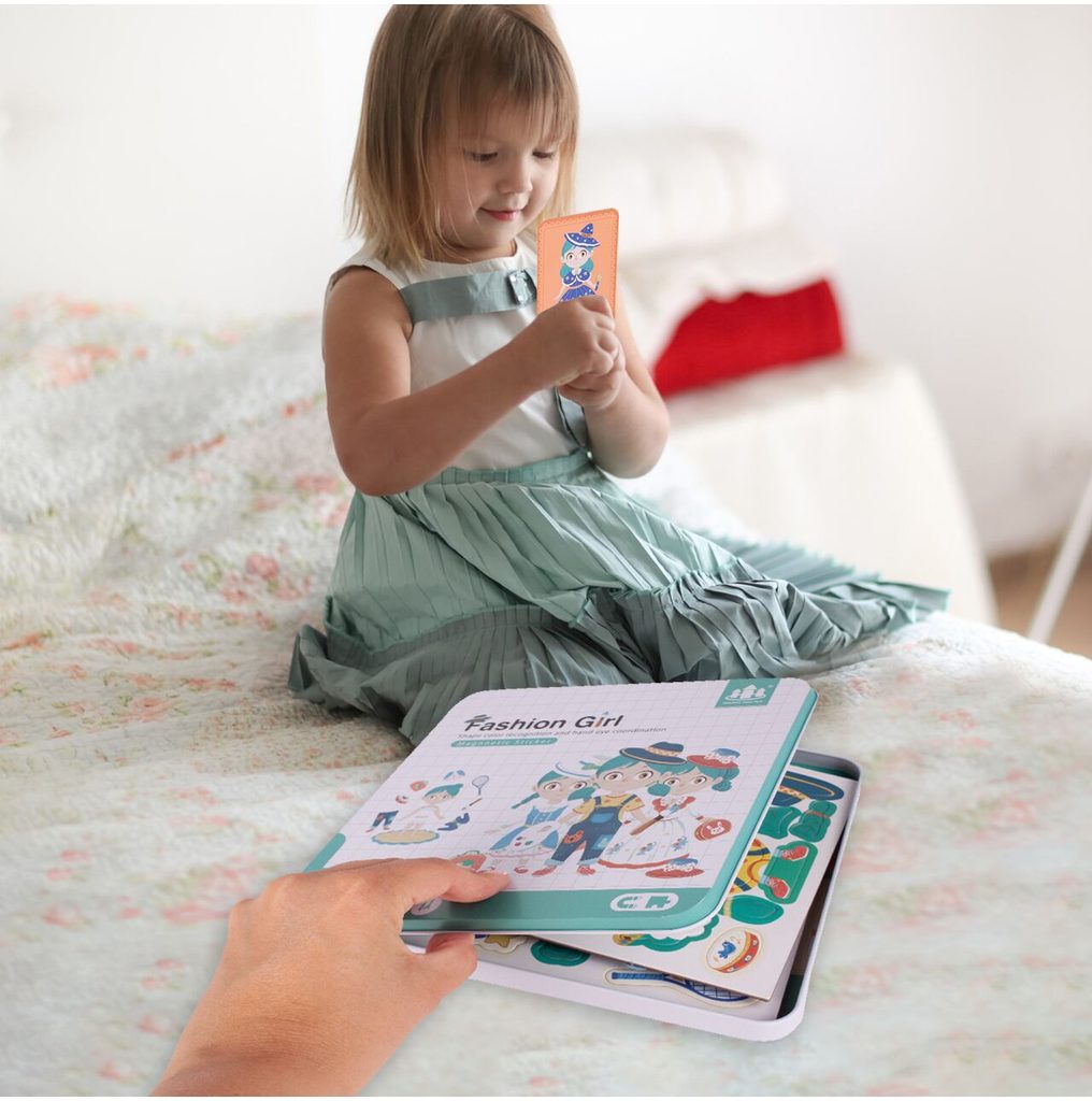 Tato sestava obsahuje různé prvky, které přinášejí zábavu a možnosti pro kreativní projev. Hlavním prvkem je kovová krabička, která slouží jako praktický a stylový obal pro všechny součásti sestavy. Krabička je dostatečně pevná a odolná, aby uchovávala veškeré prvky v bezpečí. Jedním z klíčových prvků této sestavy je suchem mazatelný popisovač. K dispozici je také 5 oboustranných karet, které slouží jako inspirace pro vaši kreativitu. Na každé kartě najdete ukázkový styling, který můžete použít při tvorbě scén a příběhů na magnetické tabulce. Tyto karty vám poskytnou nápady a podněty, které můžete dále rozvíjet a přizpůsobit podle svých představ. Celkem je k dispozici 62 kusů magnetek.