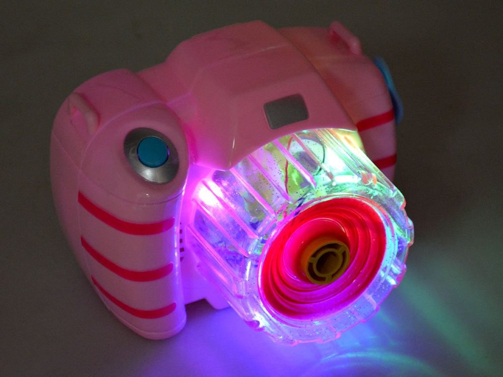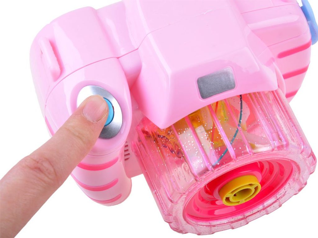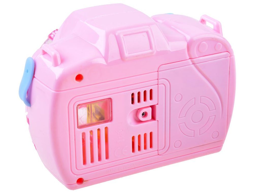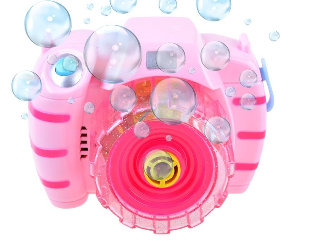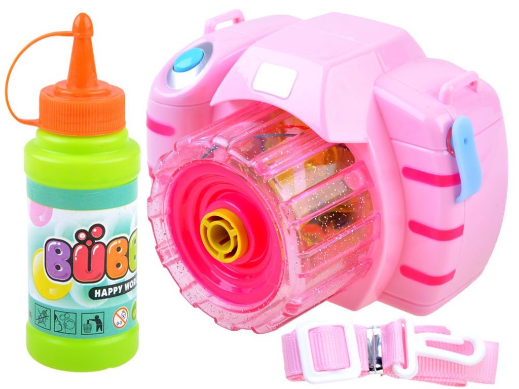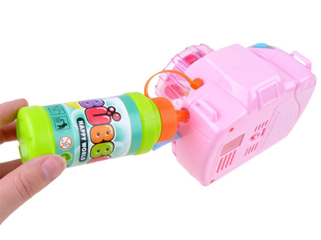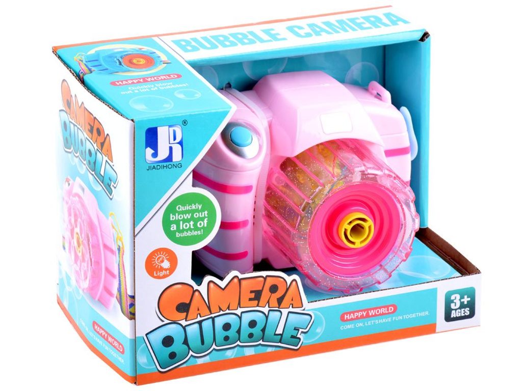 Dětský bublifuk ve tvaru růžového fotoaparátu dokáže vytvořit nekonečné množství bublin. Nejdříve je třeba nasadit lahvičku s mýdlovým roztokem přímo do boční části bublifuku. Zmáčknutím spouště fotoaparátu se začnou z přední části generovat bubliny za současného zvuku melodie a osvětlení. Součástí balení je i popruh o délce 85 cm k zavěšení fotoaparátu kolem krku. Hračka je vyrobena z plastu a je určena pro děti od 36 měsíců věku.