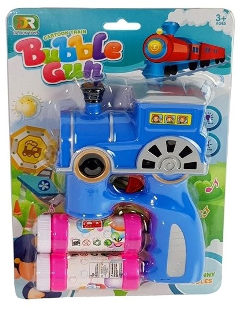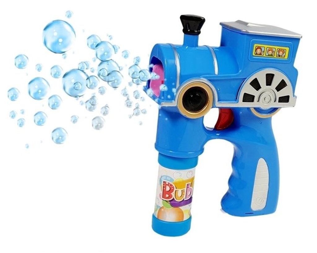 Dětský bublifuk ve tvaru modré lokomotivy dokáže vytvořit nekonečné množství bublin. Nejdříve je třeba nasadit lahvičku s mýdlovým roztokem přímo do bublifuku. Zmáčknutím spouště se spouští generátor bublin za současného zvuku. Po ukončení hry je třeba lahvičku z bublifuku demontovat a otřít ho suchým hadříkem. Hračka je vyrobena z plastu a je určena pro děti od 36 měsíců věku.