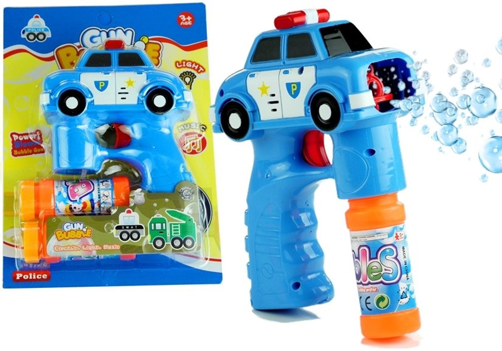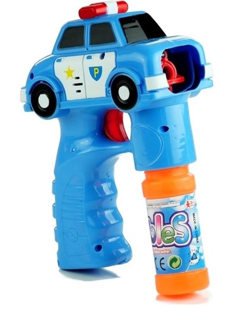 Dětský bublifuk ve tvaru policejního autíčka dokáže vytvořit nekonečné množství bublin. Nejdříve je třeba nasadit lahvičku s mýdlovým roztokem přímo do bublifuku. Zmáčknutím spouště se spouští generátor bublin za současného zvuku policejní sirény. Po ukončení hry je třeba lahvičku z bublifuku demontovat a otřít ho suchým hadříkem. Hračka je vyrobena z plastu a je určena pro děti od 36 měsíců věku.