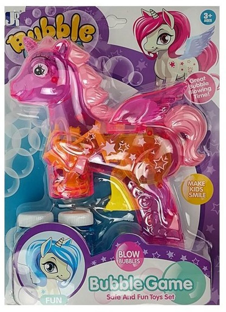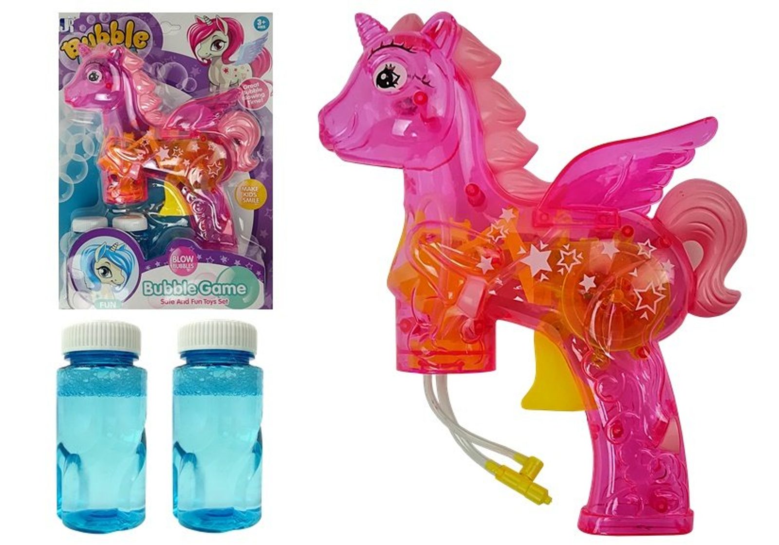 Dětský bublifuk ve tvaru jednorožce dokáže vytvořit nekonečné množství bublin. Nejdříve je třeba nasadit lahvičku s mýdlovým roztokem přímo do bublifuku. Zmáčknutím spouště se spouští generátor bublin a zároveň se spustí světýlko. Po ukončení hry je třeba lahvičku z bublifuku demontovat a otřít ho suchým hadříkem. Hračka je vyrobena z plastu a je určena pro děti od 36 měsíců věku.