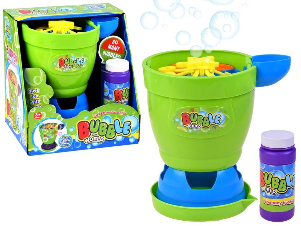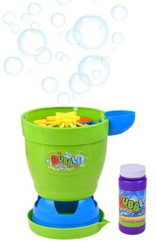 Dětský bublinkovač ve tvaru válce Bubble World dokáže vytvořit nekonečné množství bublin. Mýdlový roztok je třeba nalít do horního otvoru. Zmáčknutím tlačítka se začnou se vytvářet bubliny. Hračka je vyrobena z plastu a je určena pro děti od 36 měsíců věku.